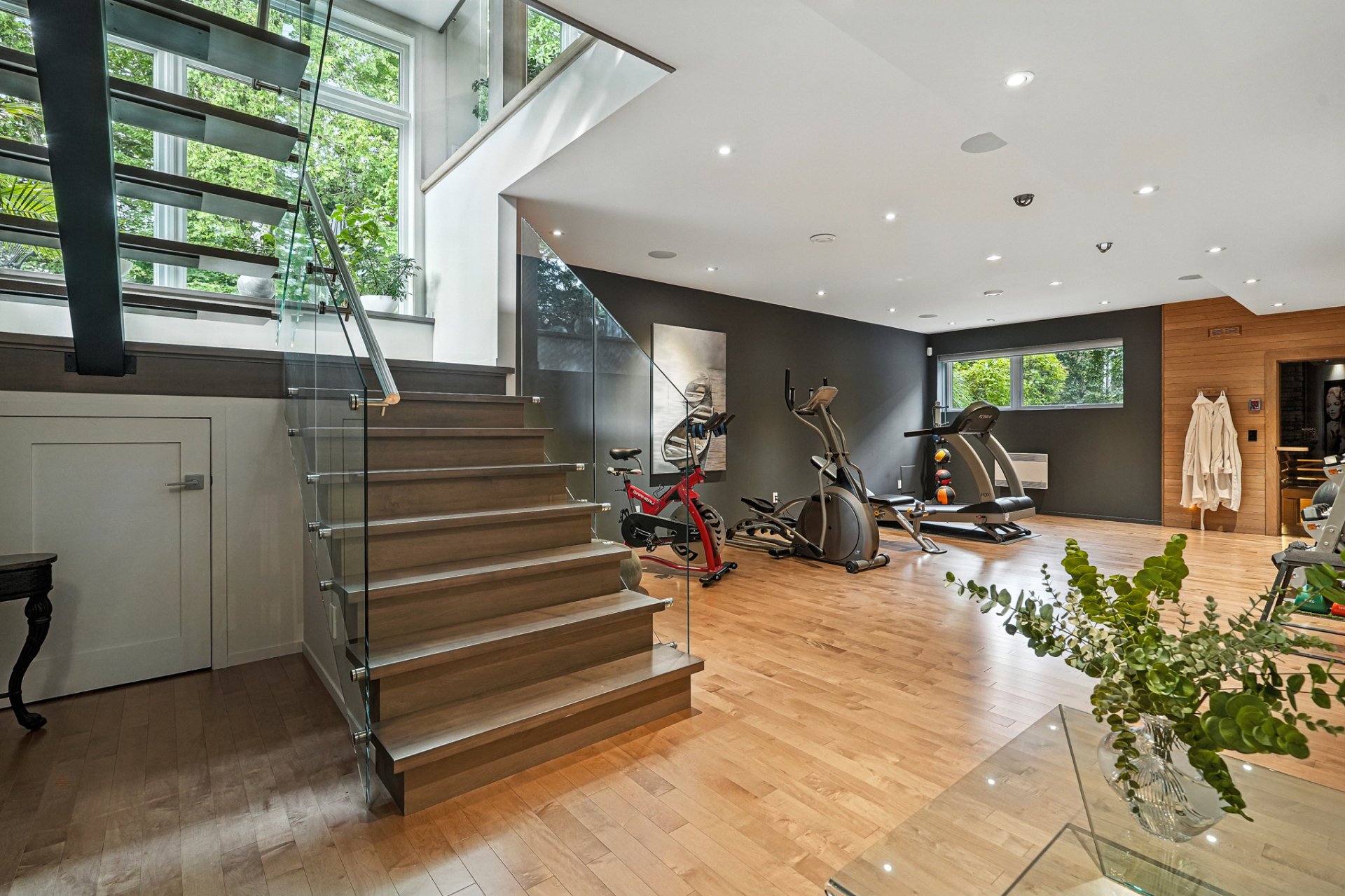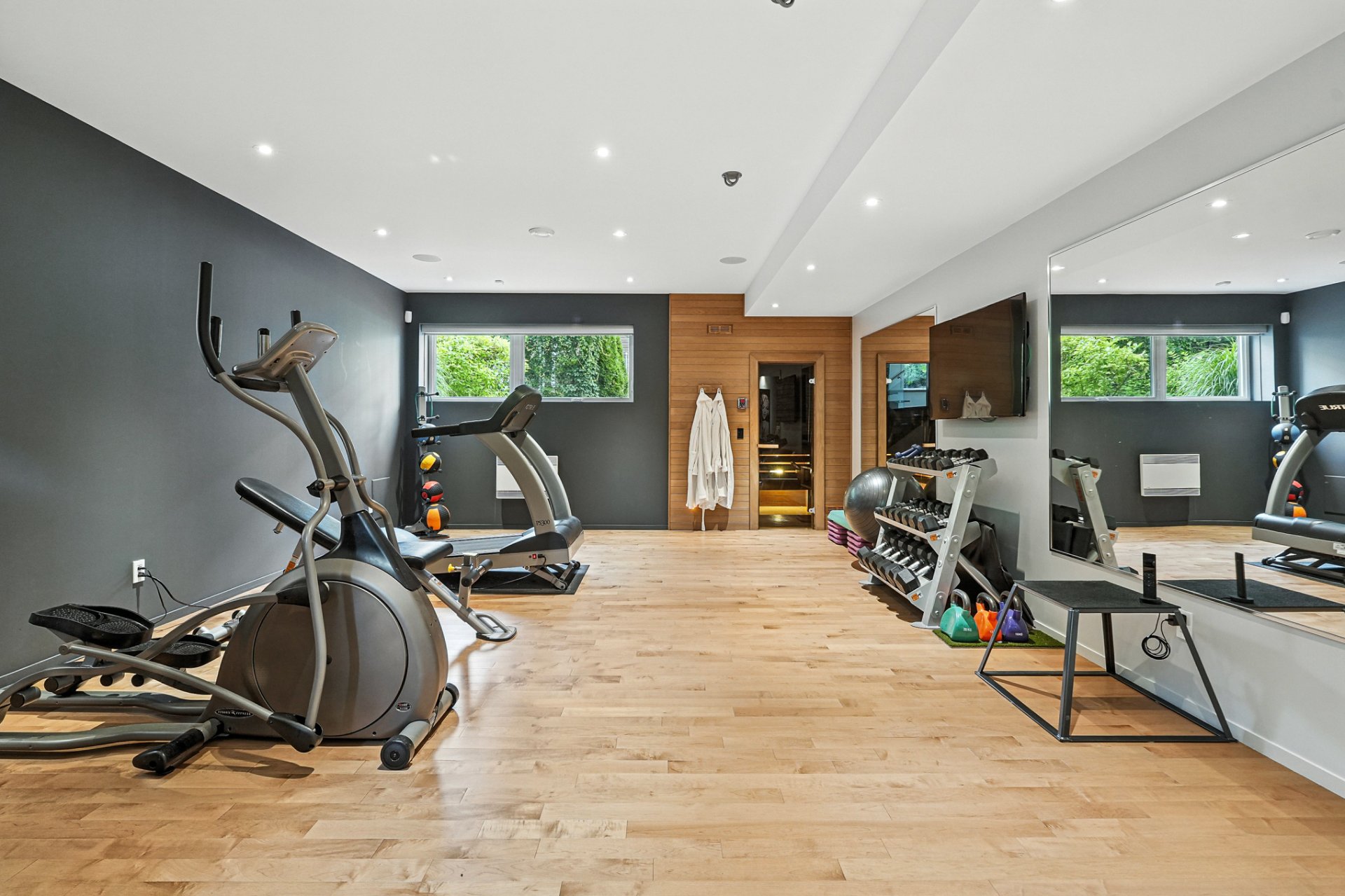 Family room with integrated gym area.
