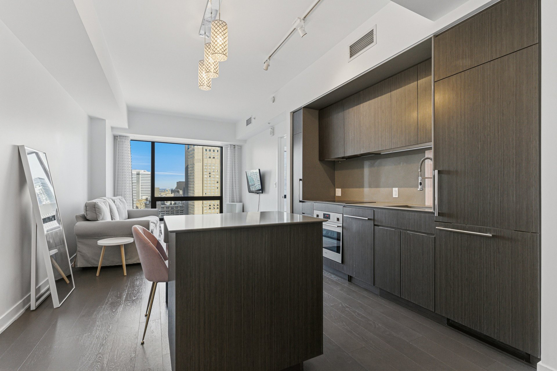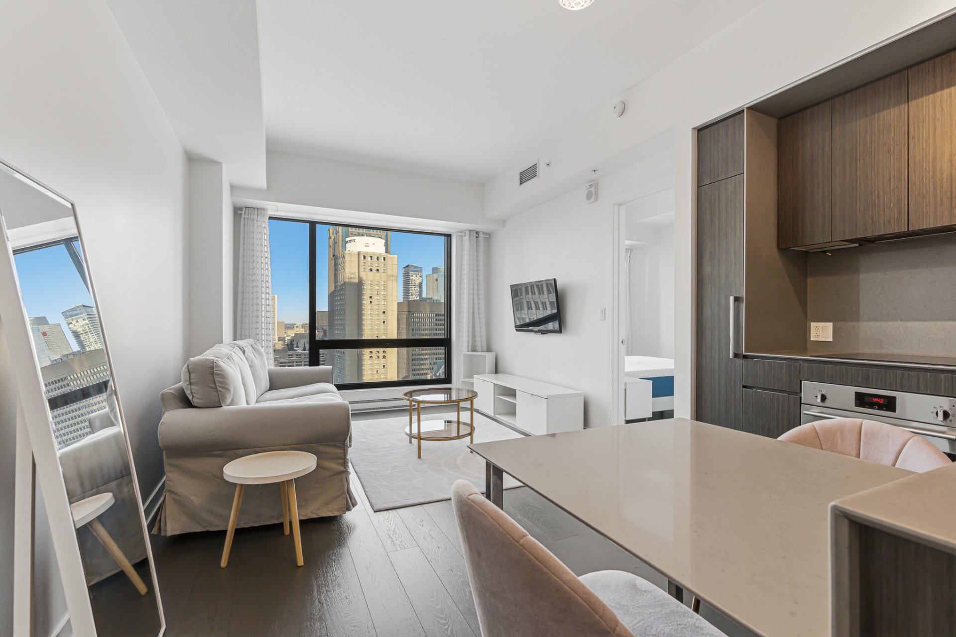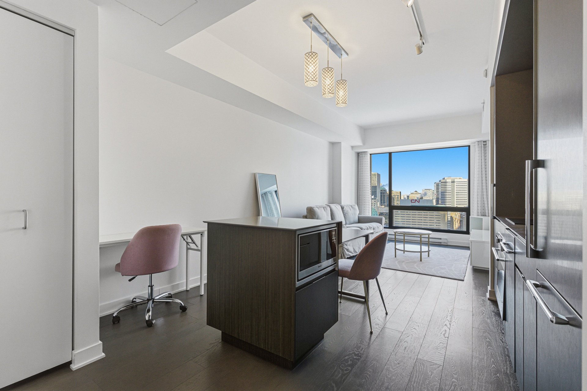 [Available for immediate occupancy] Magnificent condo located on the 25th floor of the iconic Tour des Canadiens in the heart of Downtown Montreal offering 1 Bed + 1 Bath, an illuminated modern living space and breathtaking unobstructed views. You'll enjoy direct access to the metro, train, underground city, and the Bell Centre, along with top-tier amenities including 24/7 concierge service, a pool, sauna, gym, terrace, and BBQ area. A storage space is also included.