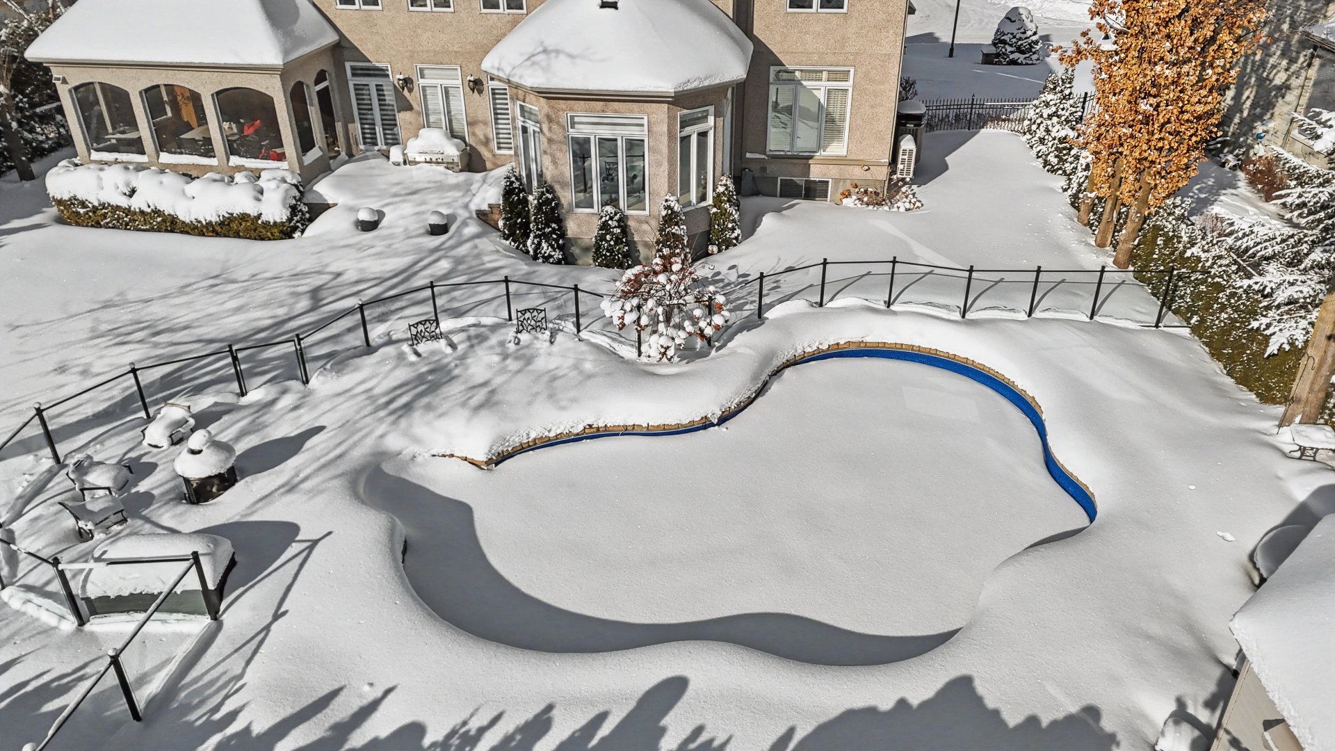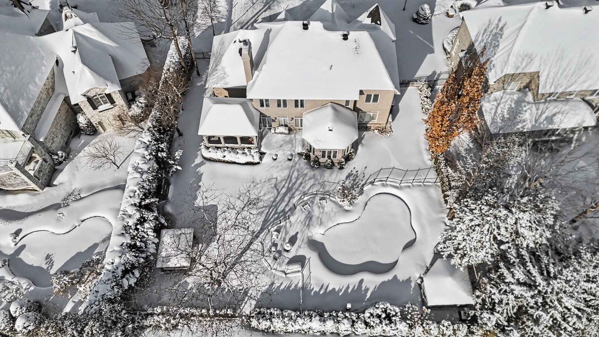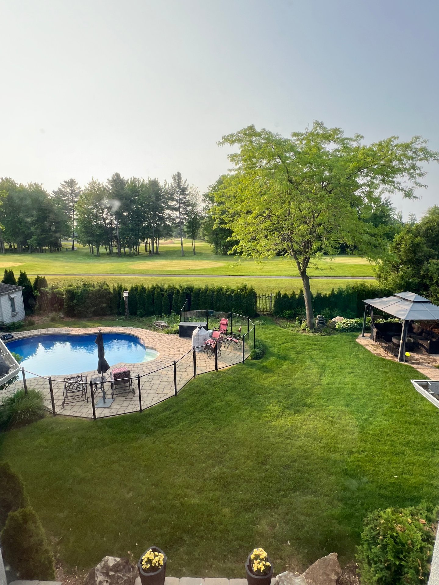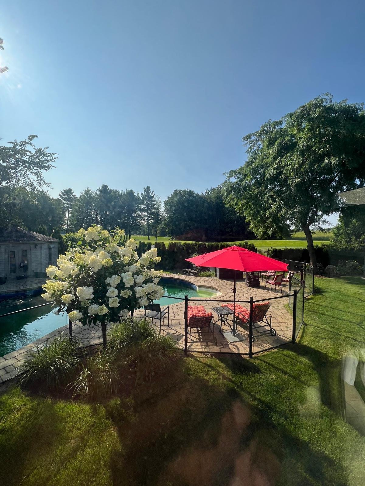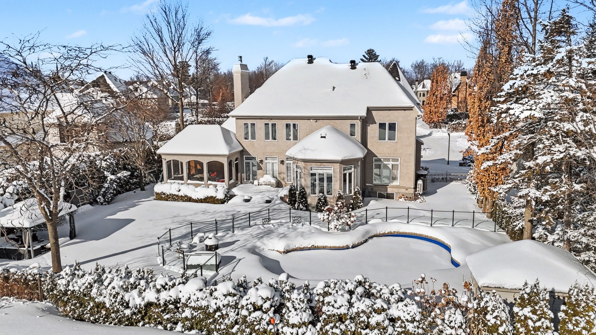 At the rear, a beautiful three-season veranda allows you to fully enjoy the spectacular golf course views while being protected from mosquitoes, all within a peaceful and lush environment. The backyard also features a heated in-ground pool, perfect for summer days and outdoor gatherings.