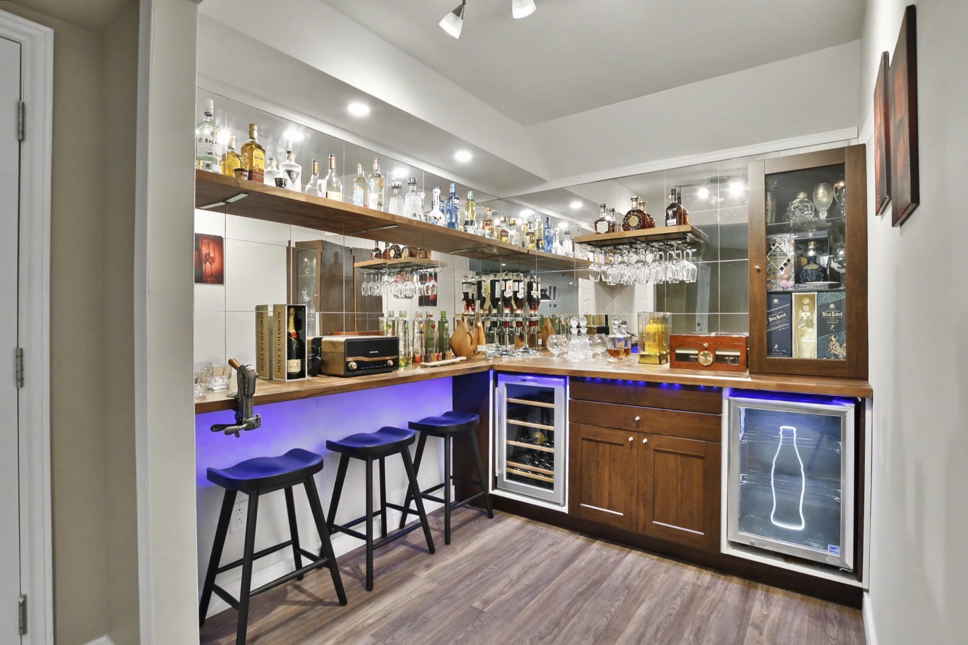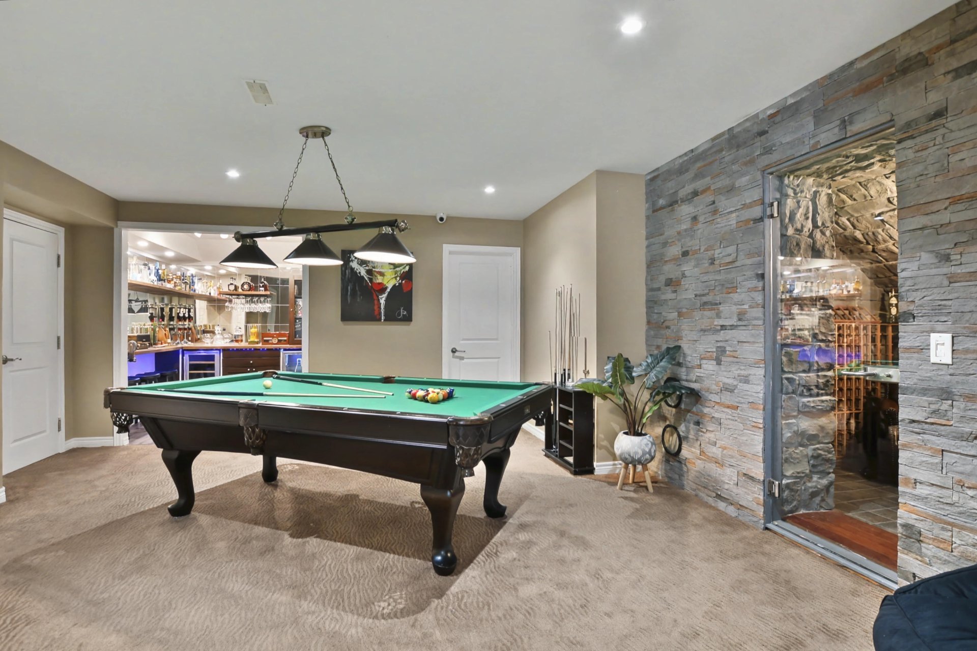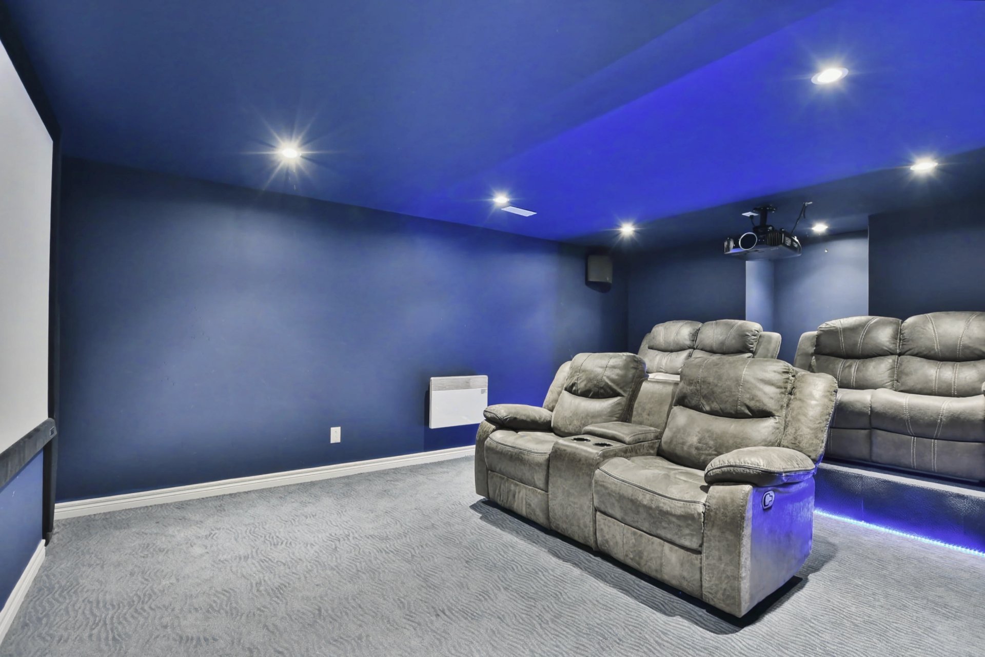 The fully finished basement offers a spacious family room, an elegant wine cellar, a welcoming bar area, a full bathroom, and an additional bedroom. You will also find a professional-grade home theater, fully soundproofed and designed to deliver an immersive cinematic experience comparable to private luxury theaters.