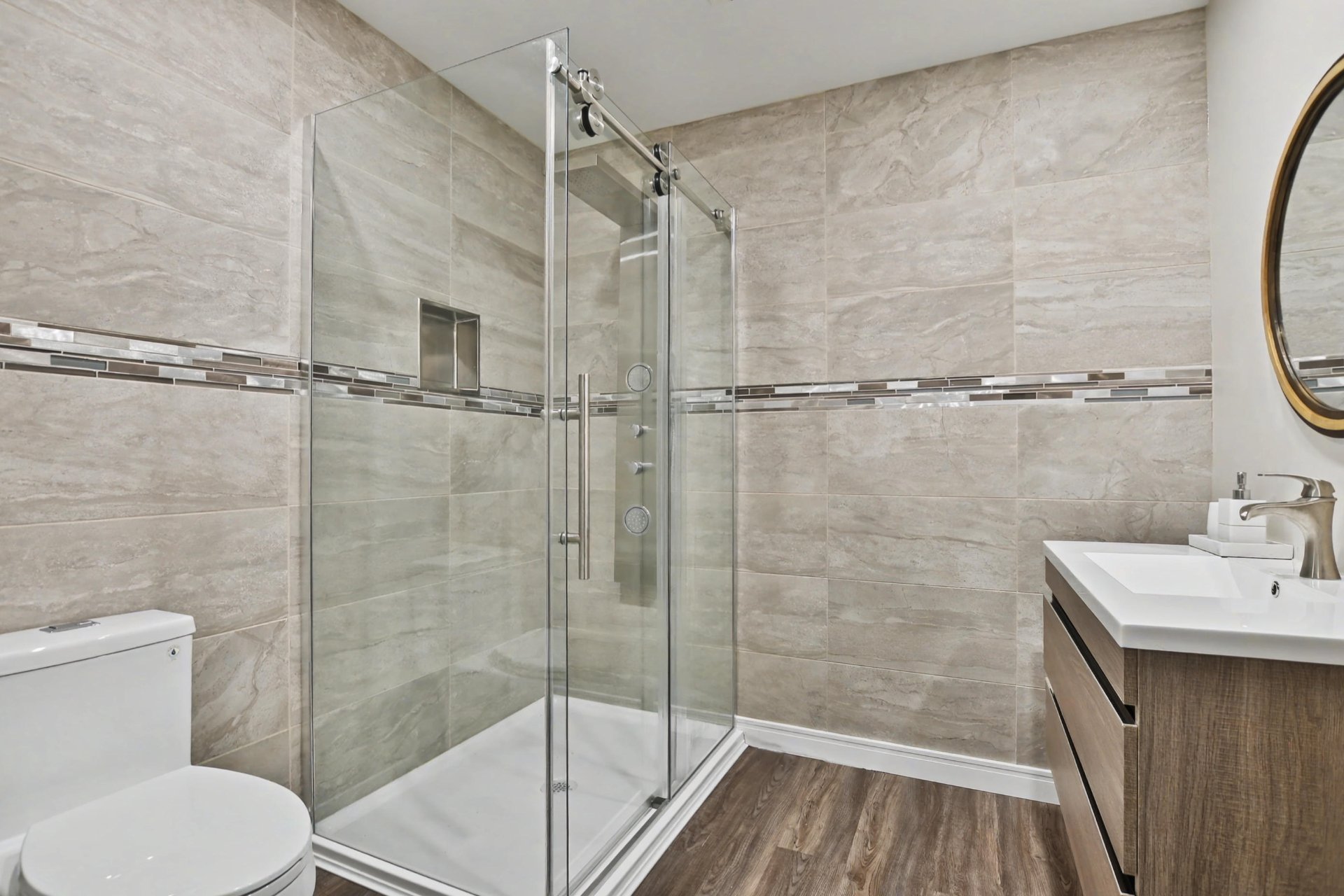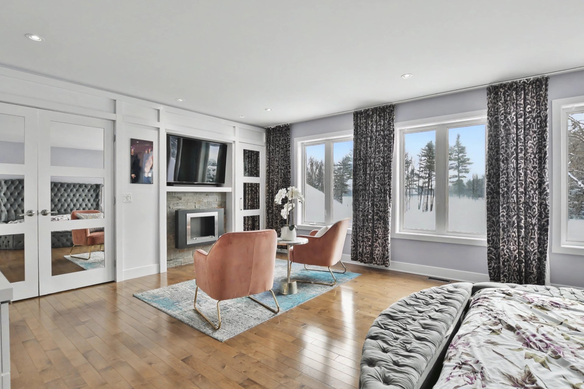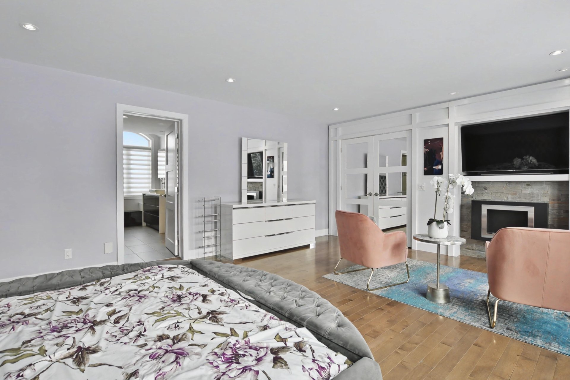 The fully finished basement offers a spacious family room, an elegant wine cellar, a welcoming bar area, a full bathroom, and an additional bedroom. You will also find a professional-grade home theater, fully soundproofed and designed to deliver an immersive cinematic experience comparable to private luxury theaters.