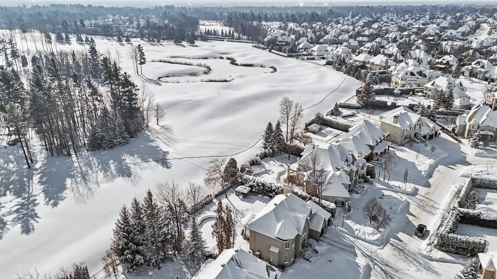 A rare and highly sought-after feature: rue de Braine is completely free of overhead power lines. All utilities are underground, providing unobstructed views, a refined streetscape, and spectacular sightlines over the golf course. The meticulously landscaped grounds further enhance the prestigious character of the property.