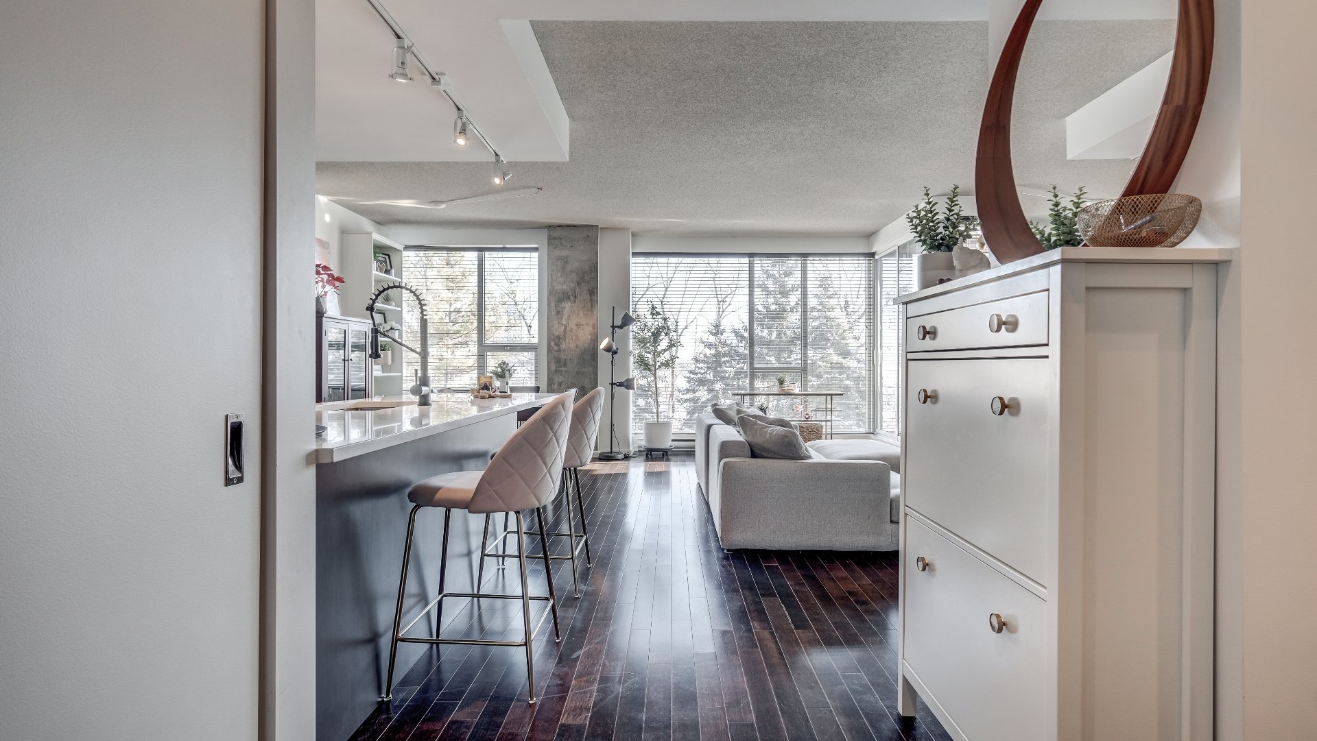 Ideally located at the entrance to L'Île-des-Soeurs, discover this superb Norah Jones model condo, the largest one-bedroom model available at Sax. Located on the 2nd floor, it offers peaceful views of nature and L'Île-des-Soeurs, combining modern design, comfort and prime location in a refined setting.