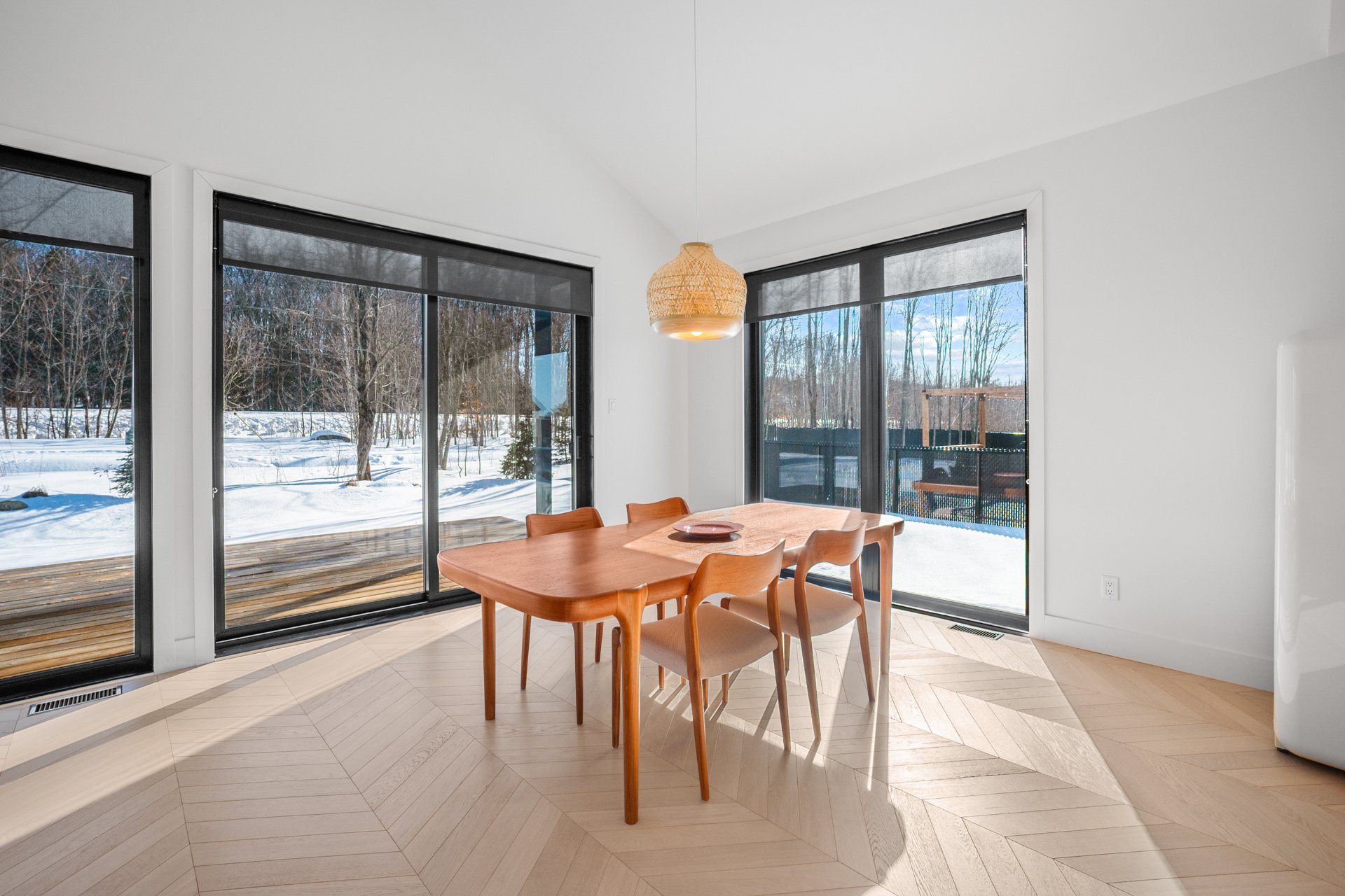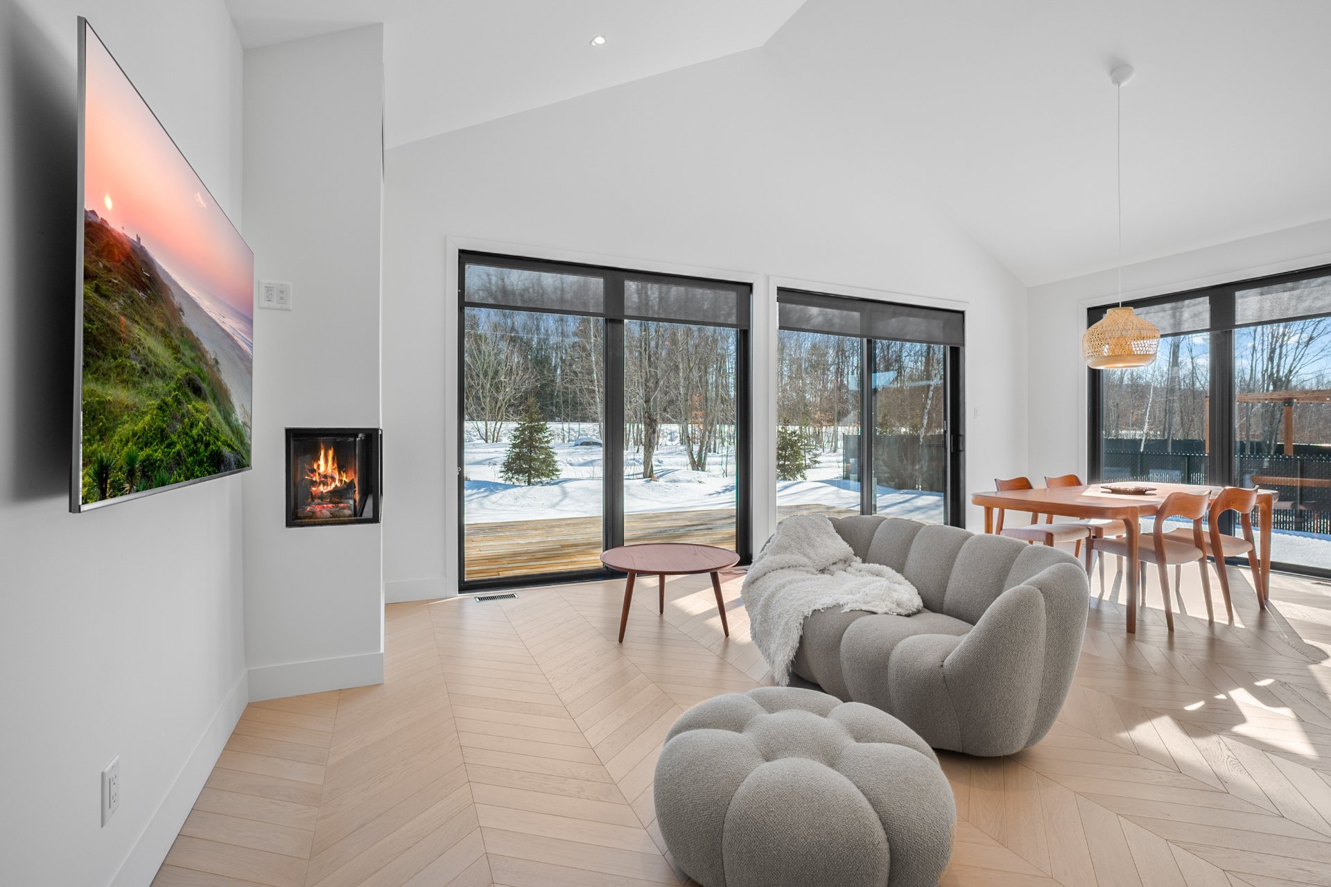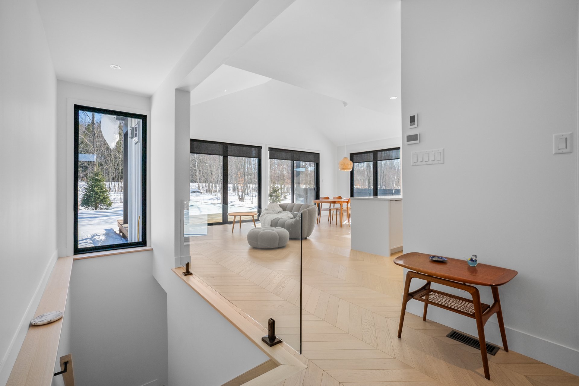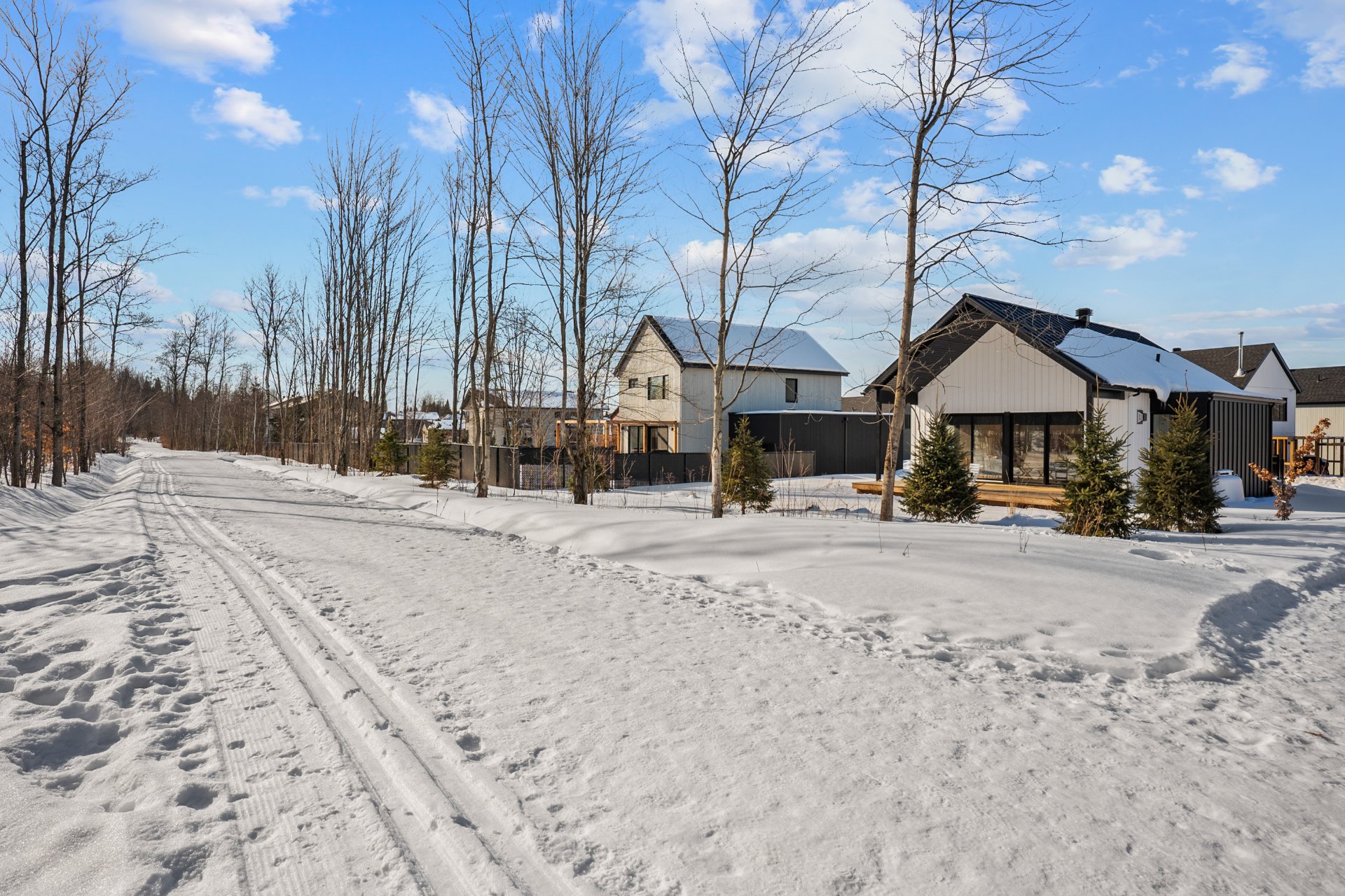 Backing onto La Villageoise, a 17-km bike path and walking or cross-country ski trail connecting the Estriade to the Bromont village network, the property allows for safe travel all year round. With no rear neighbors, surrounded by mature trees and facing south, it enjoys optimal sunshine from morning to night. Located on a cul-de-sac, it ensures absolute tranquility, while being within walking distance of La Chantignole elementary school, golf courses, restaurants, and village shops.