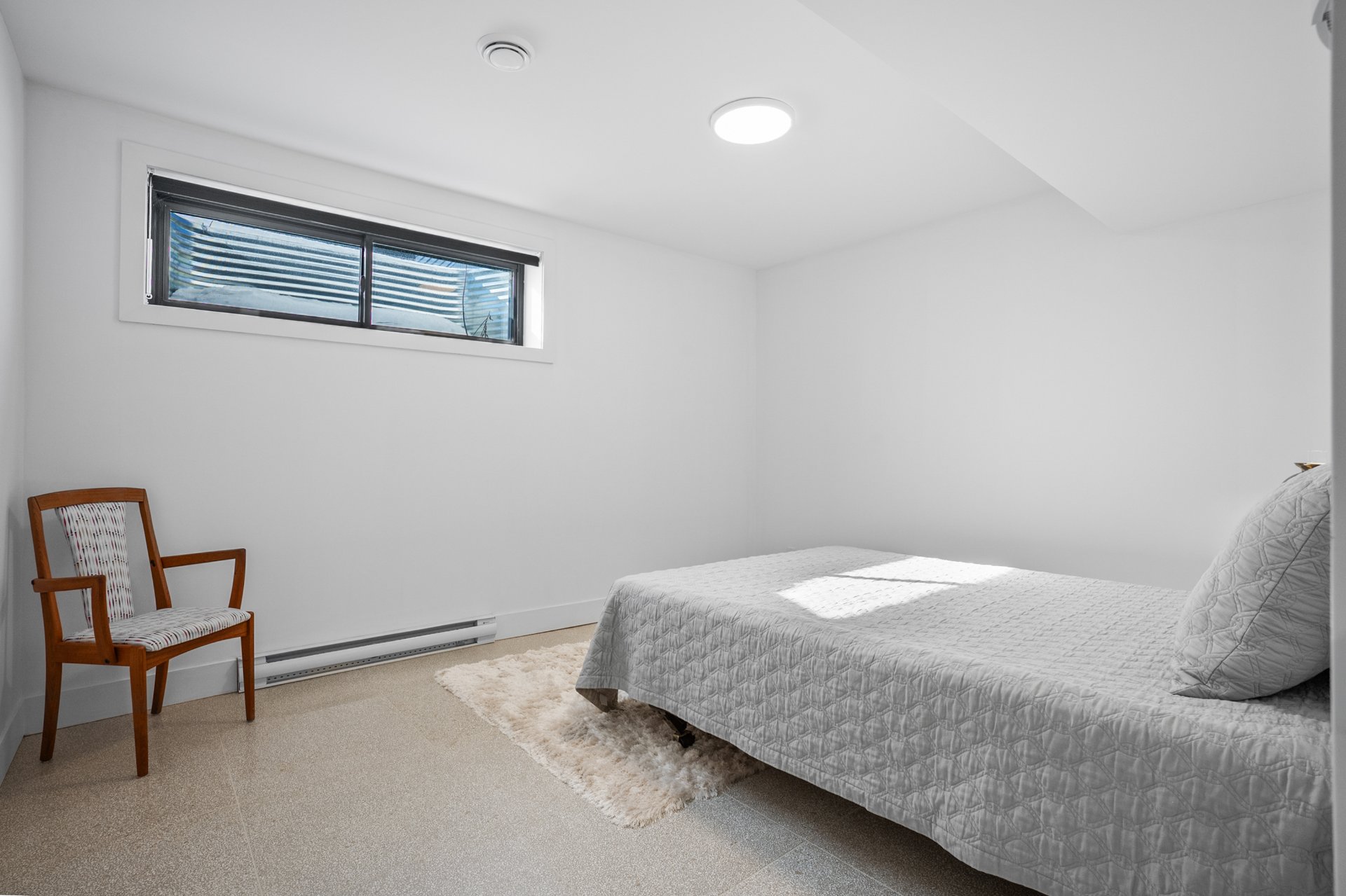 The basement features a bedroom with the possibility of adding a second one, a laundry room with a sink and storage space, and a superb bathroom with a ceramic shower. A magnificent terrazzo tile floor, both durable and attractive, completes the ensemble with distinction.