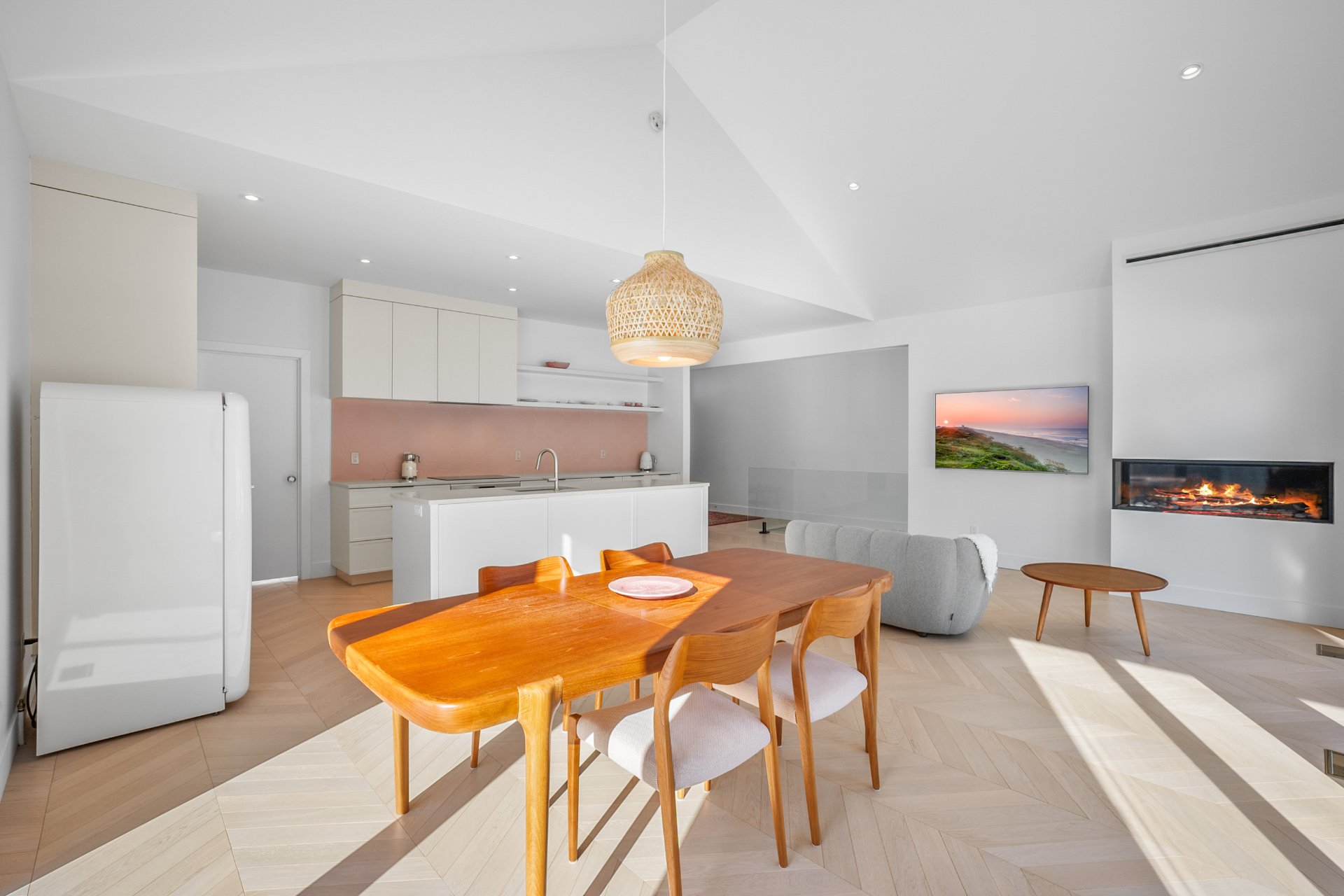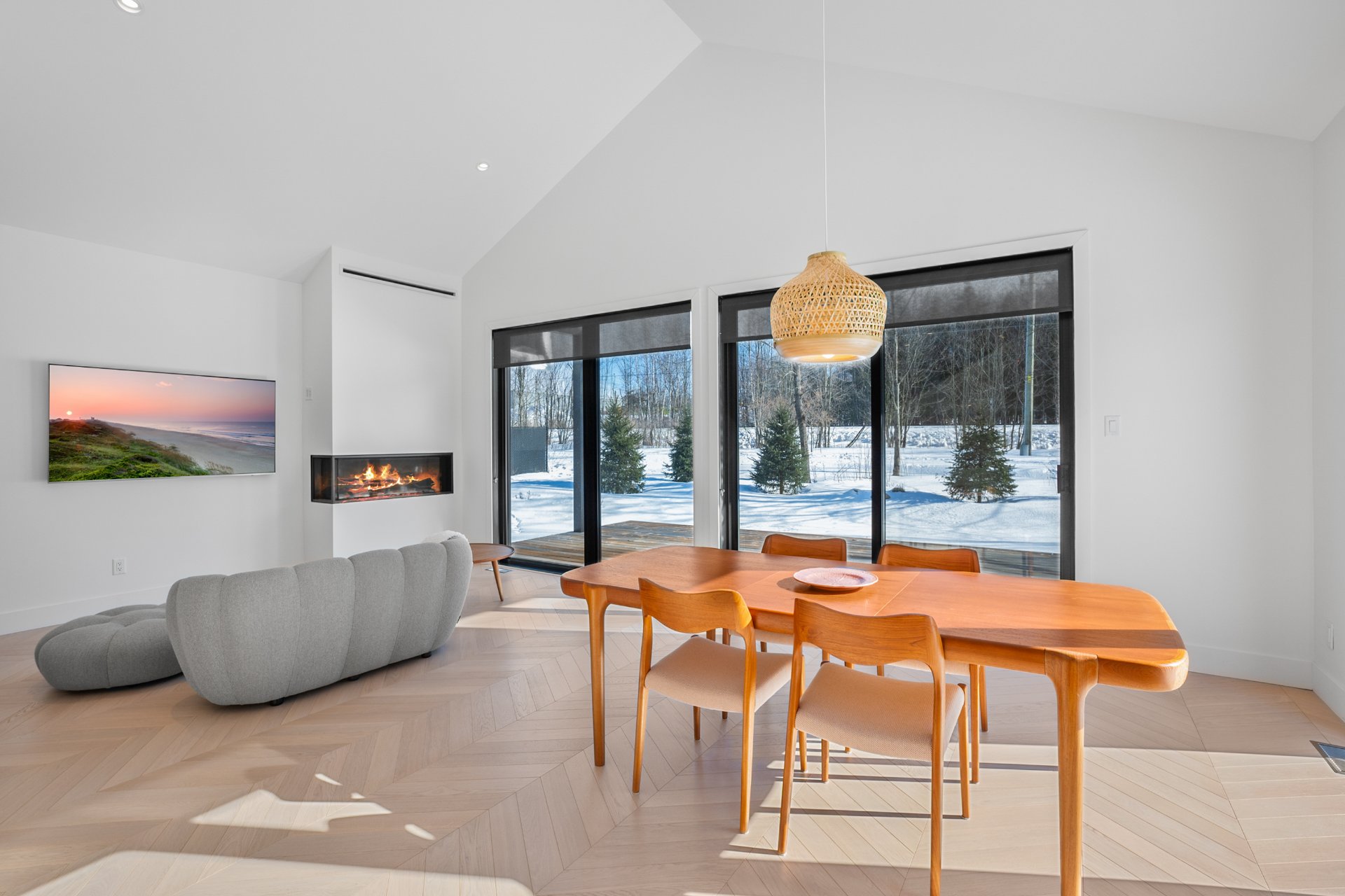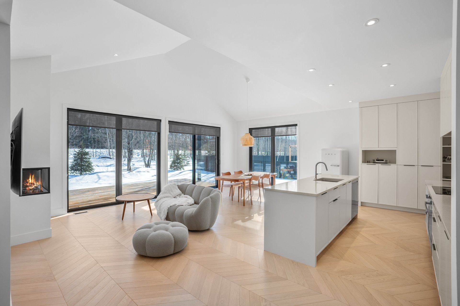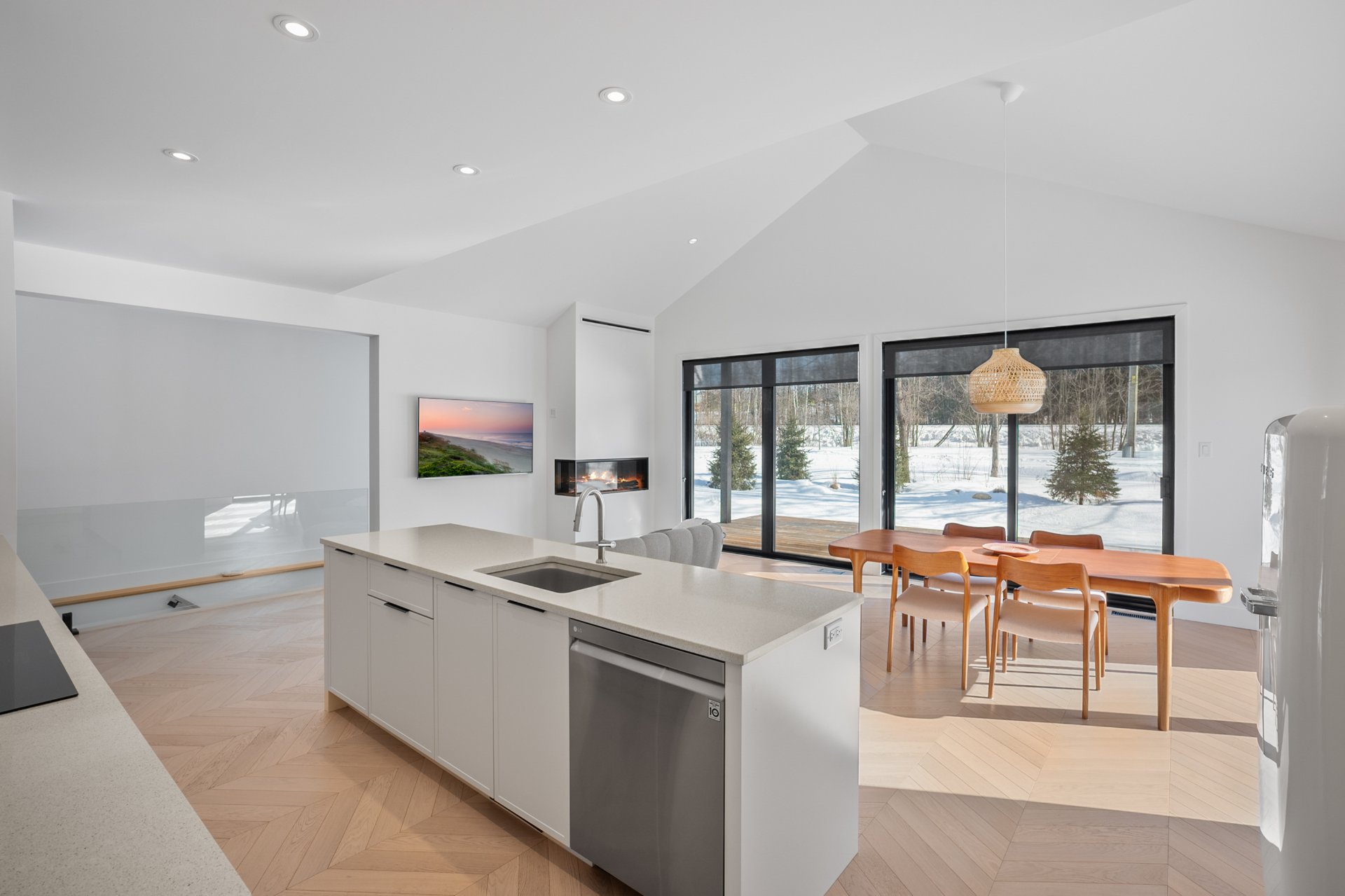 Spacious open-concept bungalow, bathed in light thanks to superb windows, it features a cathedral ceiling in the living area and a gas fireplace creating a warm and elegant atmosphere. The kitchen, with custom wood cabinets and a practical island with quartz countertop, will appeal to lovers of design and functionality.