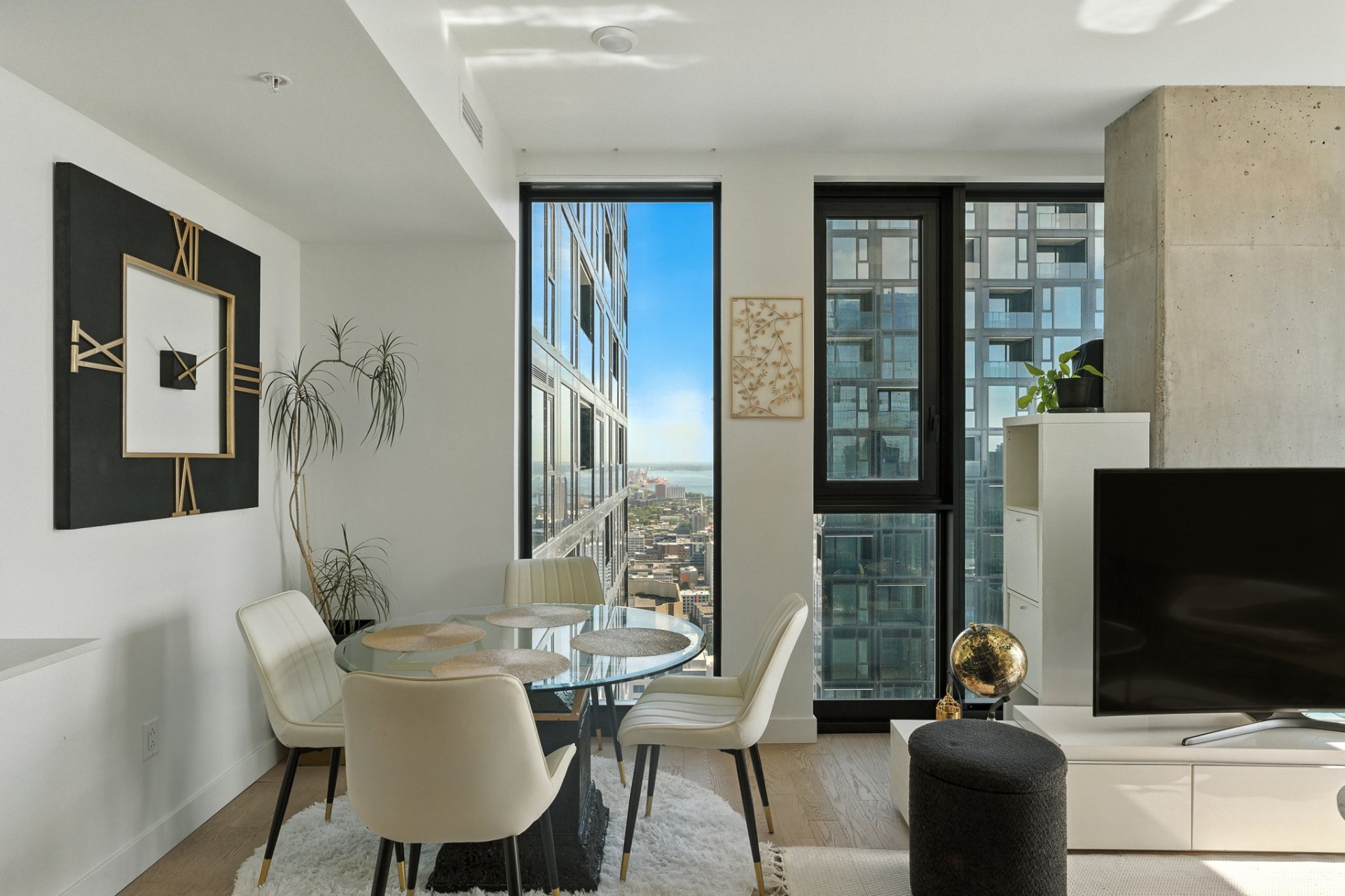 Superb corner unit located on the 46th floor of the prestigious Maestria. One bedroom condo with a breathtaking view on the river. Common areas include an indoor and outdoor swimming pool, a golf simulator, a fully equipped gym and an exclusive Sky-bridge offering breathtaking views of the city.