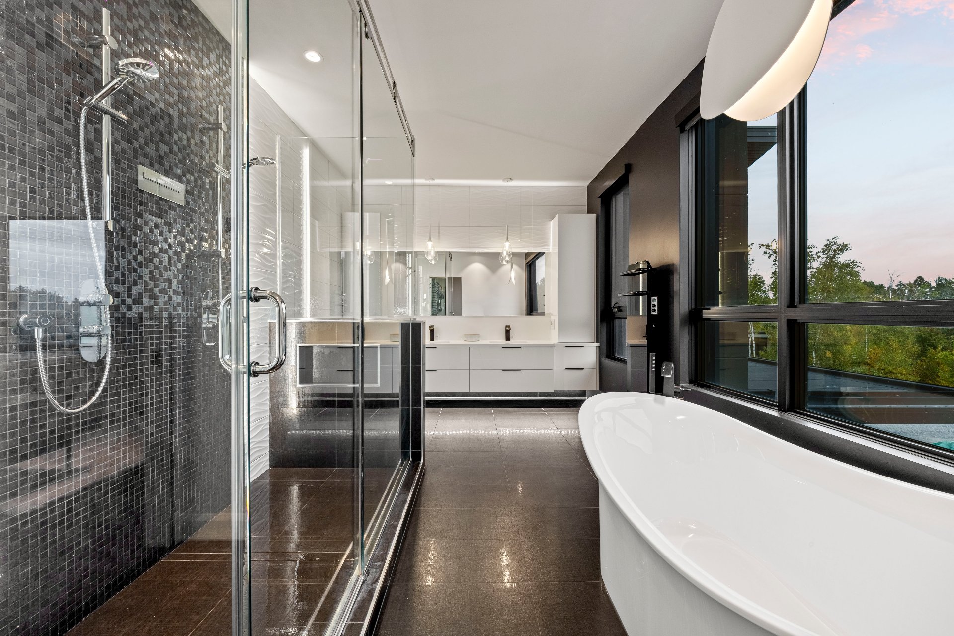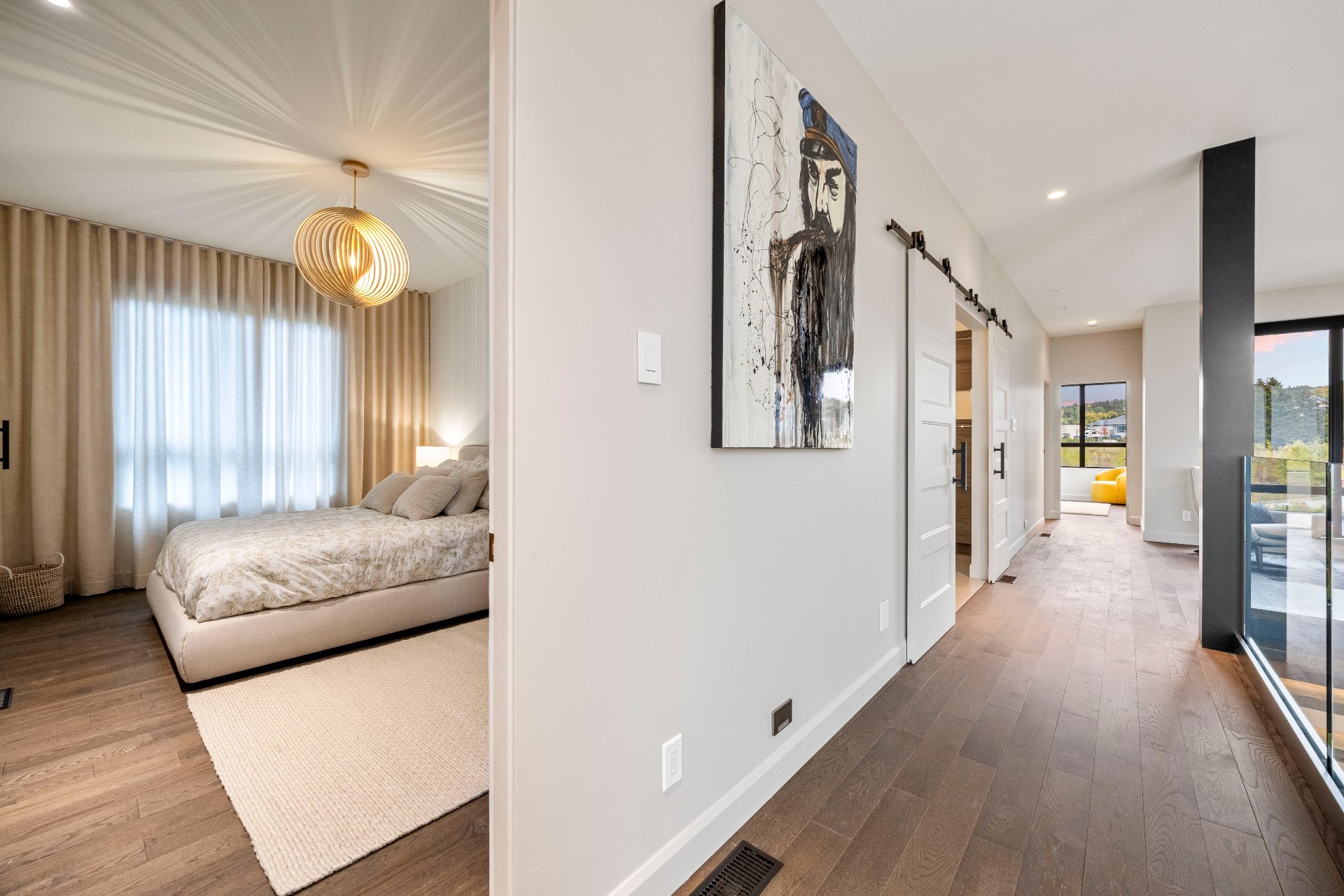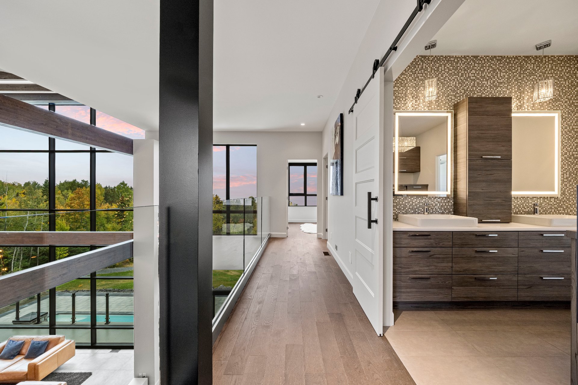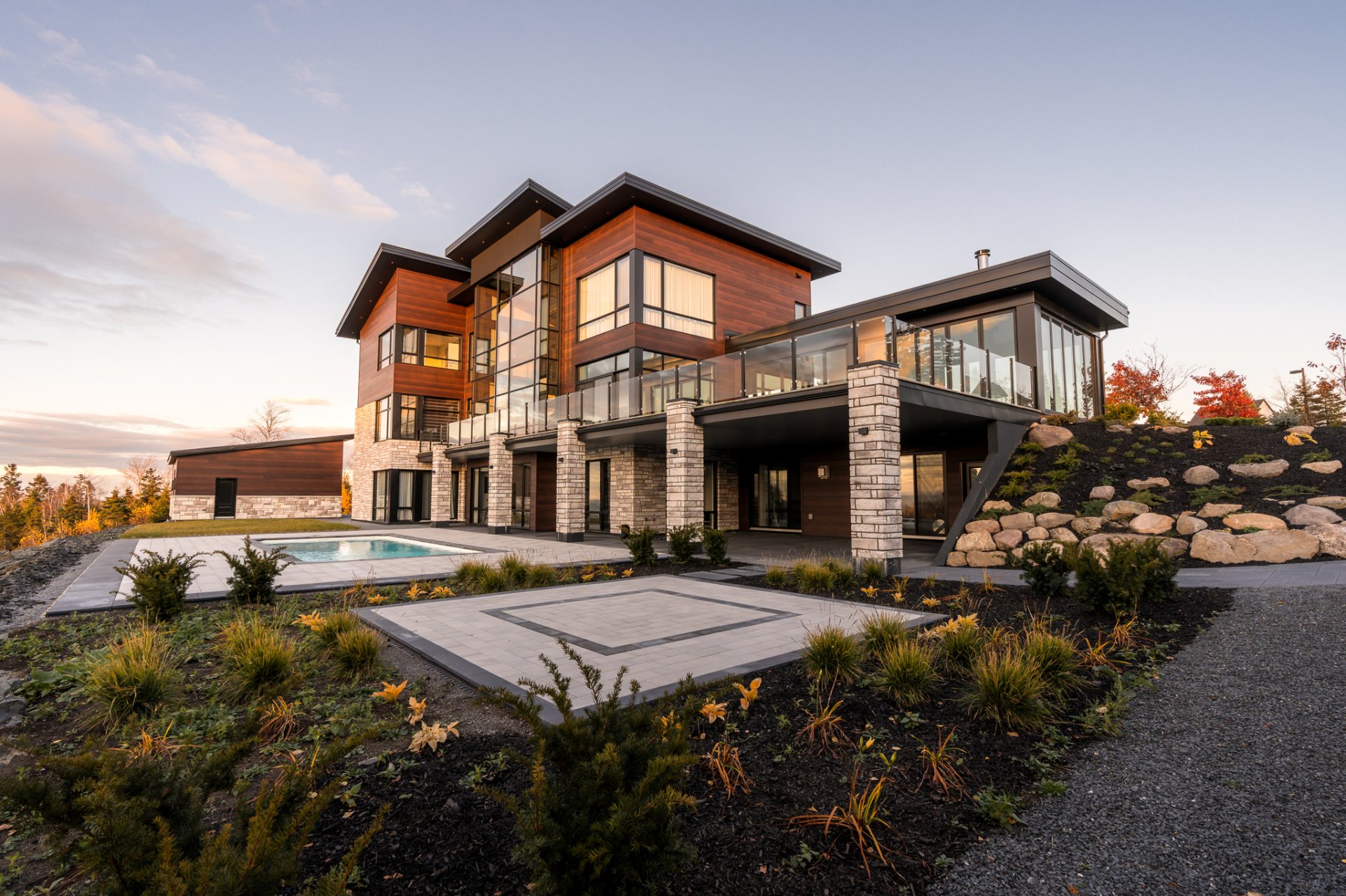 Nestled on an exceptional private site, this uniquely designed estate offers an unparalleled panorama of the St. Lawrence River. Featuring 20-foot ceilings, a central slate fireplace, an ultra-modern Gaggenau kitchen, Sonneman Constellation light fixtures, and a 4-season outdoor kitchen enclosed with removable Nanawall walls opening onto a terrace. The property includes 7 spacious bedrooms, 4 bathrooms, 2 powder rooms, a library, bar, cinema, gym, sauna, and full home automation. The 1,540,000-square-foot grounds are fully landscaped and feature a natural waterfall, 1 km walking trails, a swimming pool, irrigation system and fruit trees.