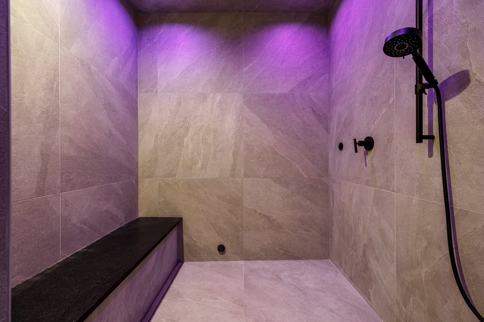 -Behind acoustic smoked-glass doors, the gym will appeal to fitness enthusiasts, with an adjacent sauna featuring chromotherapy and a Kohler cold-rain shower.