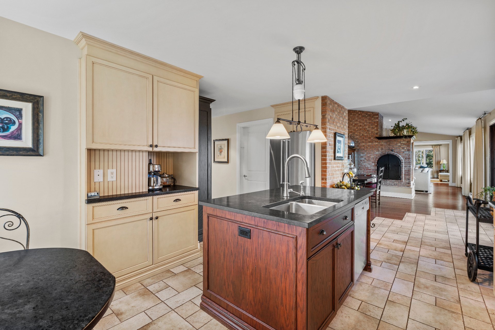 - Wood fireplace