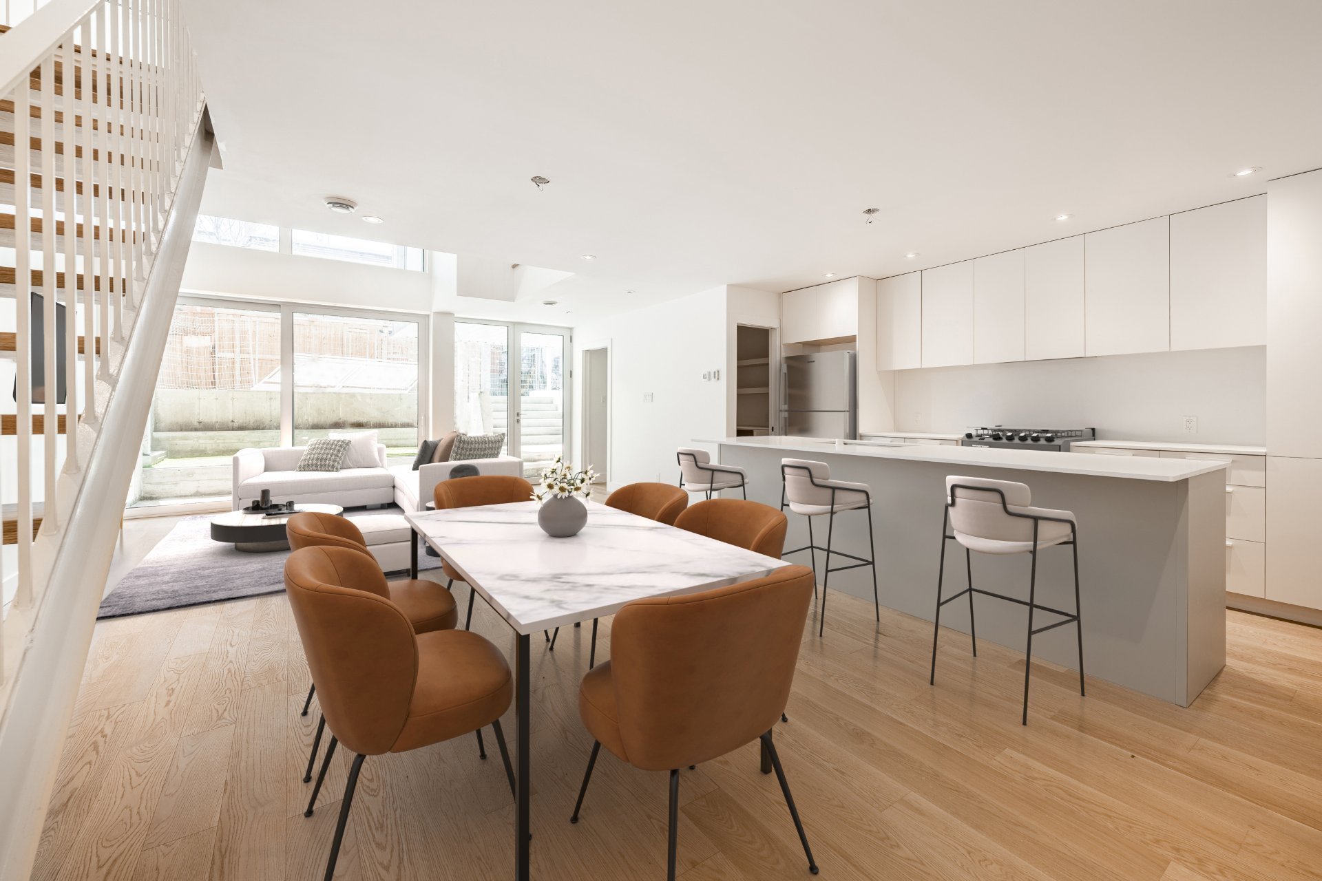 This magnificent modern townhouse-style condo in the eastern tip of the Ville-Marie borough is a real estate nugget! With its large open-plan layout and 4 bedrooms, this luxurious living space features a bright kitchen with huge windows that let in natural light, creating a warm and welcoming atmosphere.