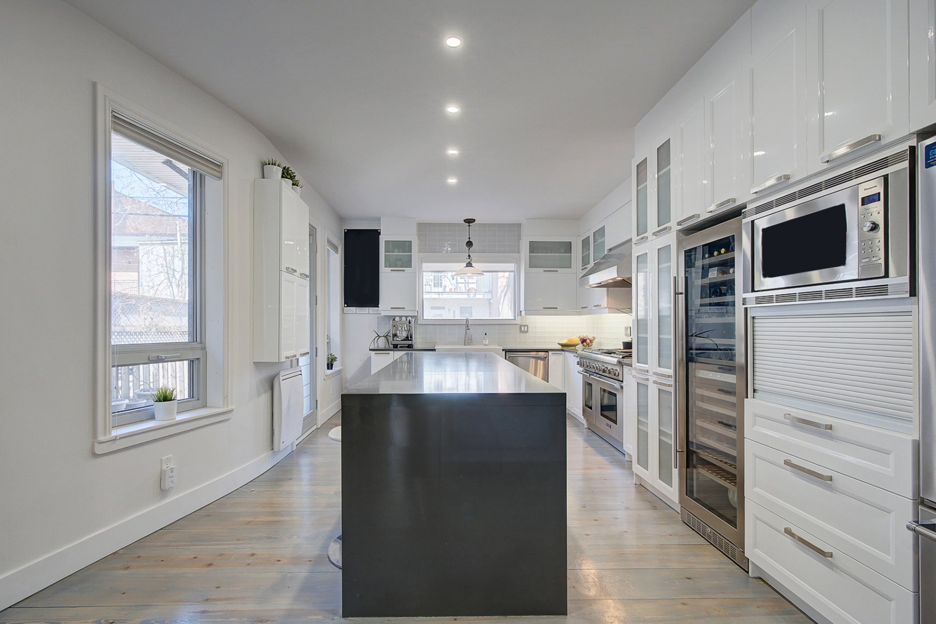 Charming stone family home, fully renovated and turnkey, offering luxury and comfort. High-end kitchen with oversized island, 6-burner gas cooktop + griddle, double oven, professional hood, wine cellar +++. Delightful garden, perfect for al fresco dining, opens onto one of Montreal's most beautiful green alleys. Excavated basement with polished concrete floors--ideal for teens or guests. Powder room on main floor, A/C. Walk to parks, schools, shops. Walk Score 97. The very essence of Montreal living.