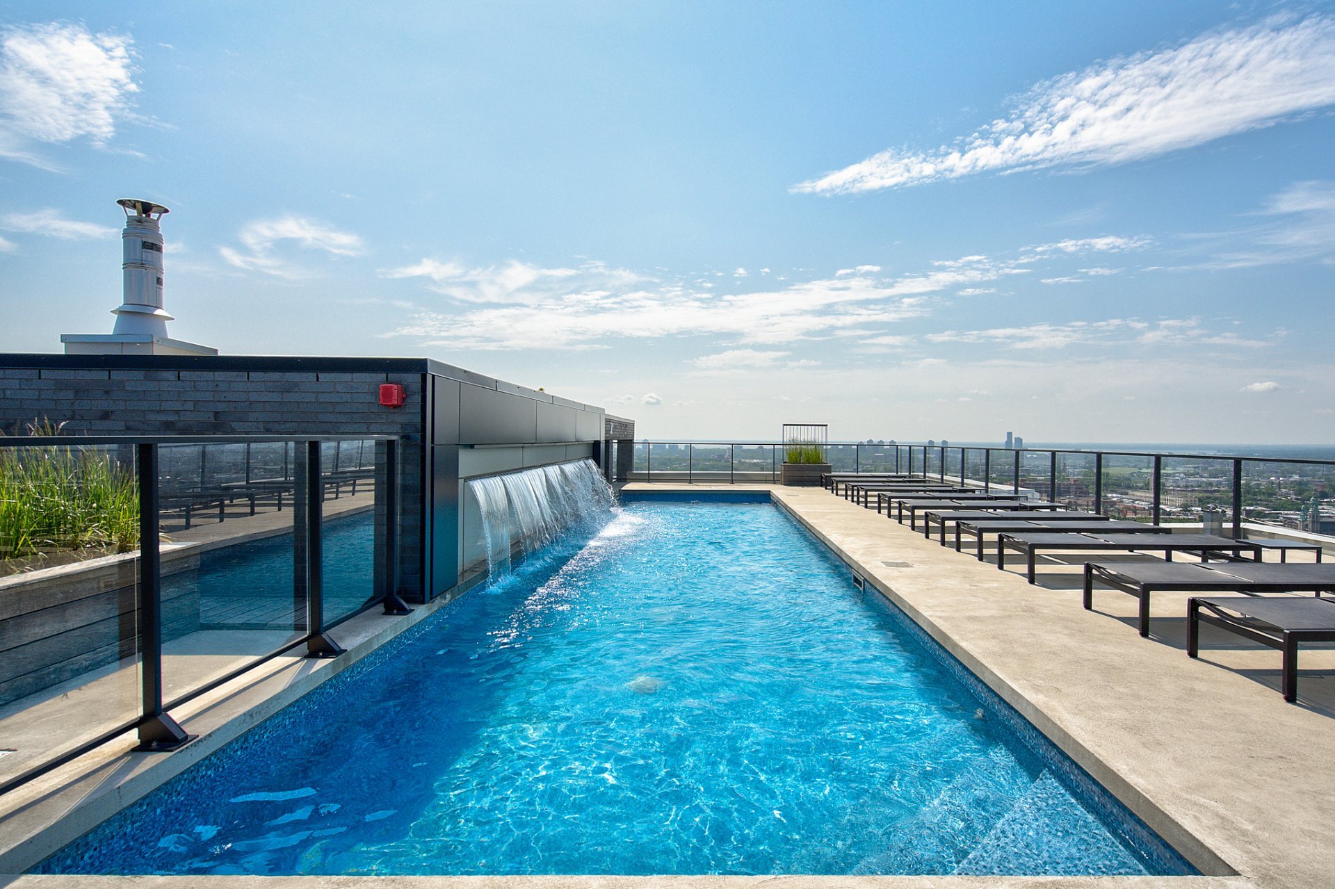 - Two rooftop terraces with outdoor in-ground pools, relaxation areas, and barbecues.