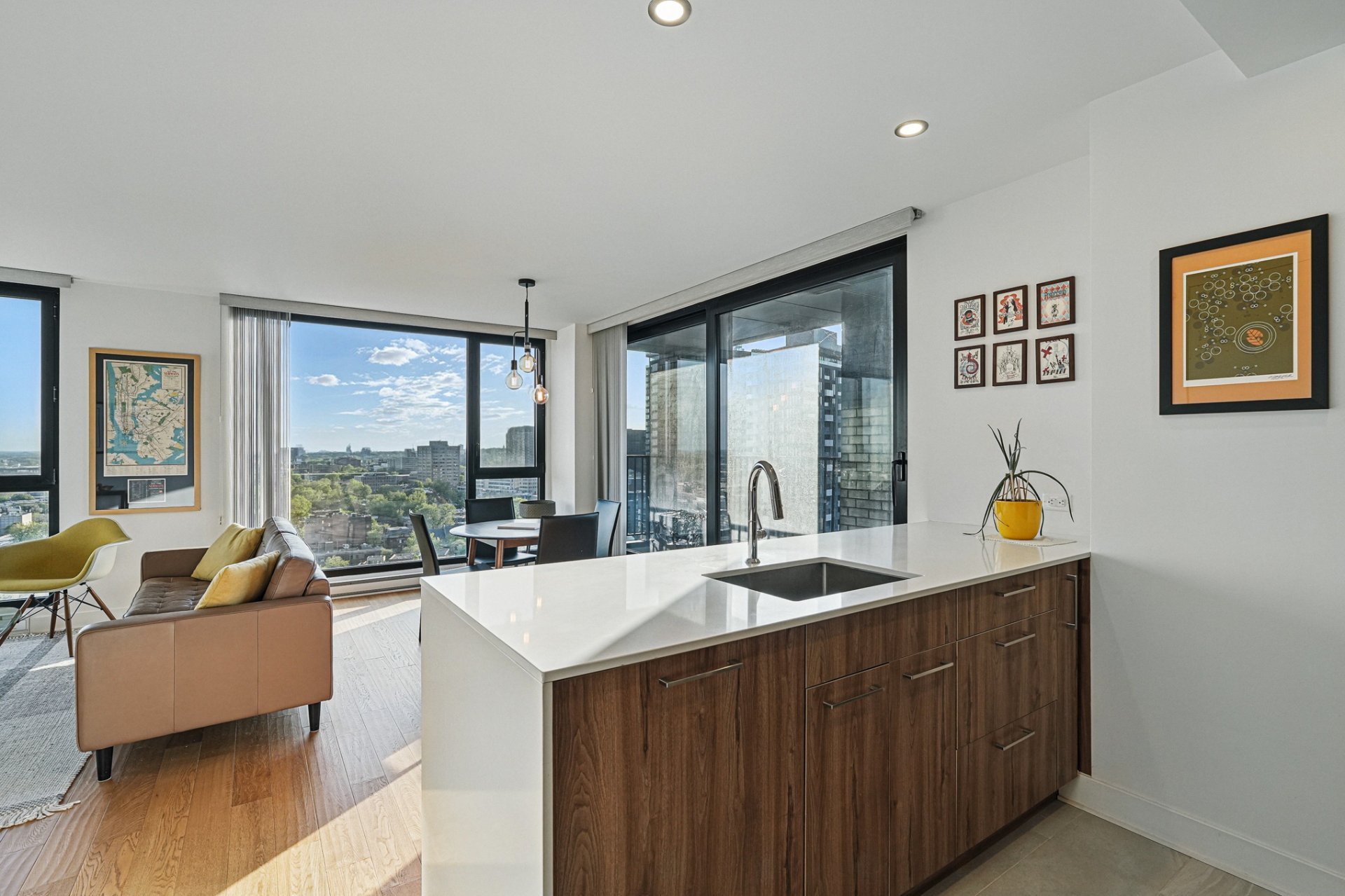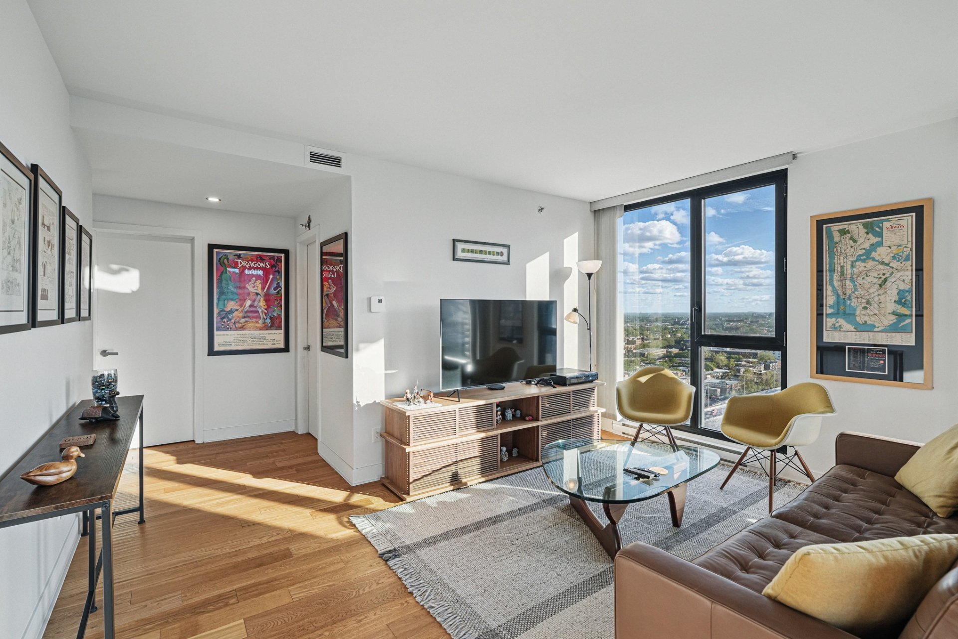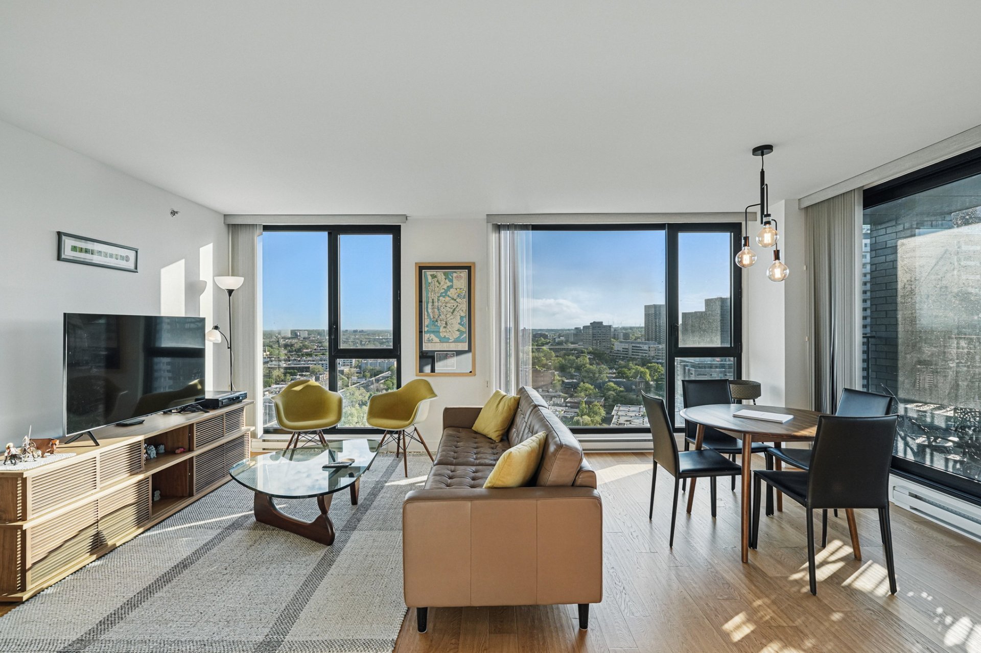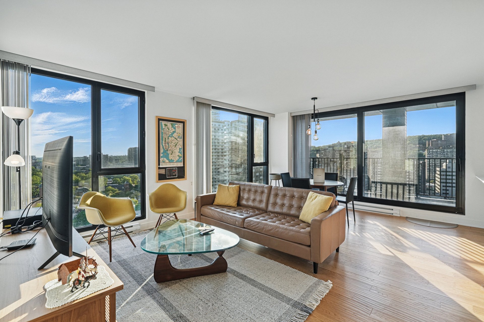 An exceptional unit with panoramic views not to be missed! Located in one of the building's best locations, this superb corner condo offers 2 bedrooms and 2 bathrooms, as well as an impressive 31-foot balcony, the largest in the building. Enjoy spectacular views of the city, the river, and the mountain--a breathtaking panorama, day and night. The unit captivates with its abundant light, well-designed spaces, and modern comforts. Whether you're looking for an urban pied-à-terre or a quality investment, this property meets all expectations.