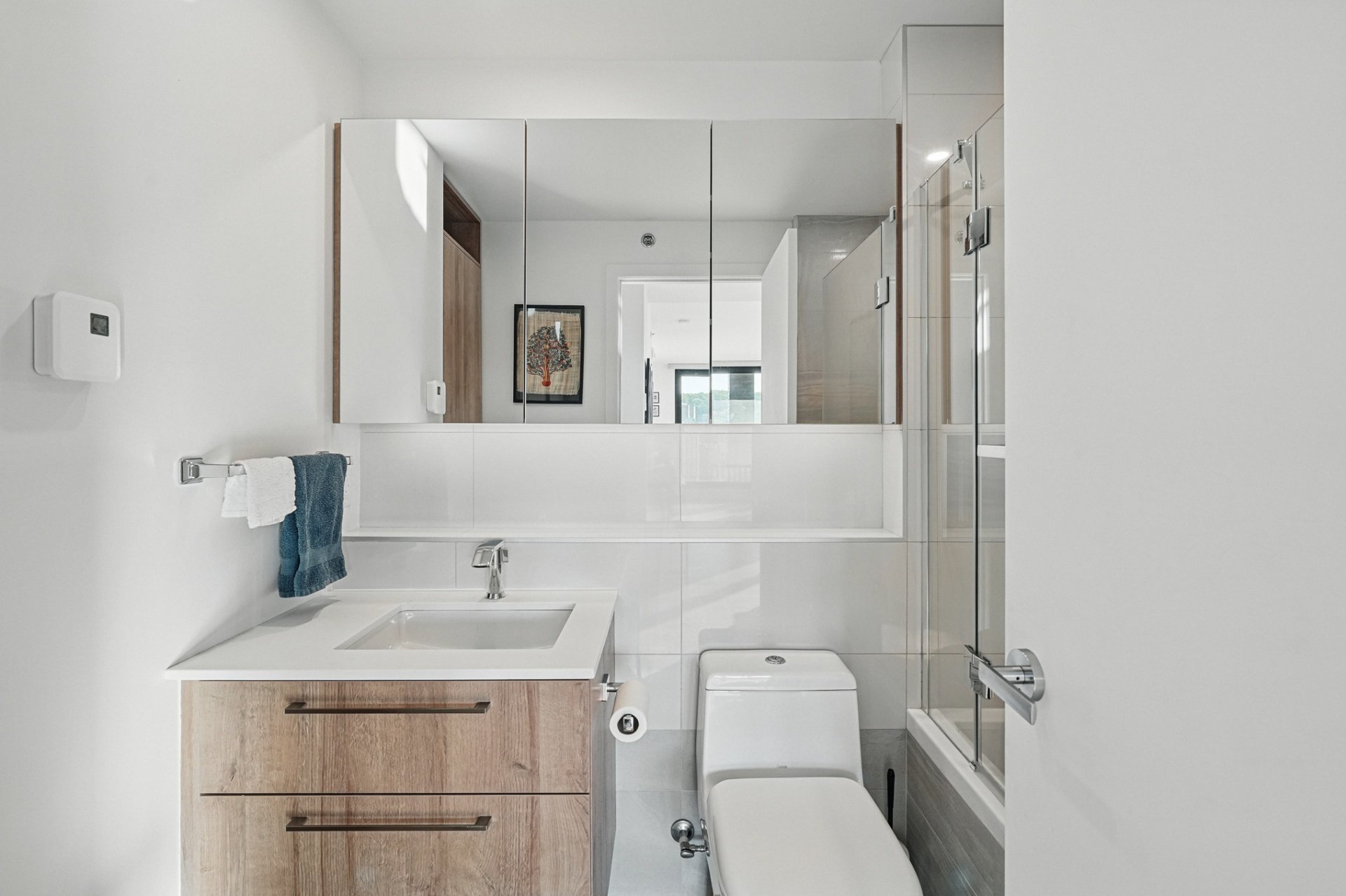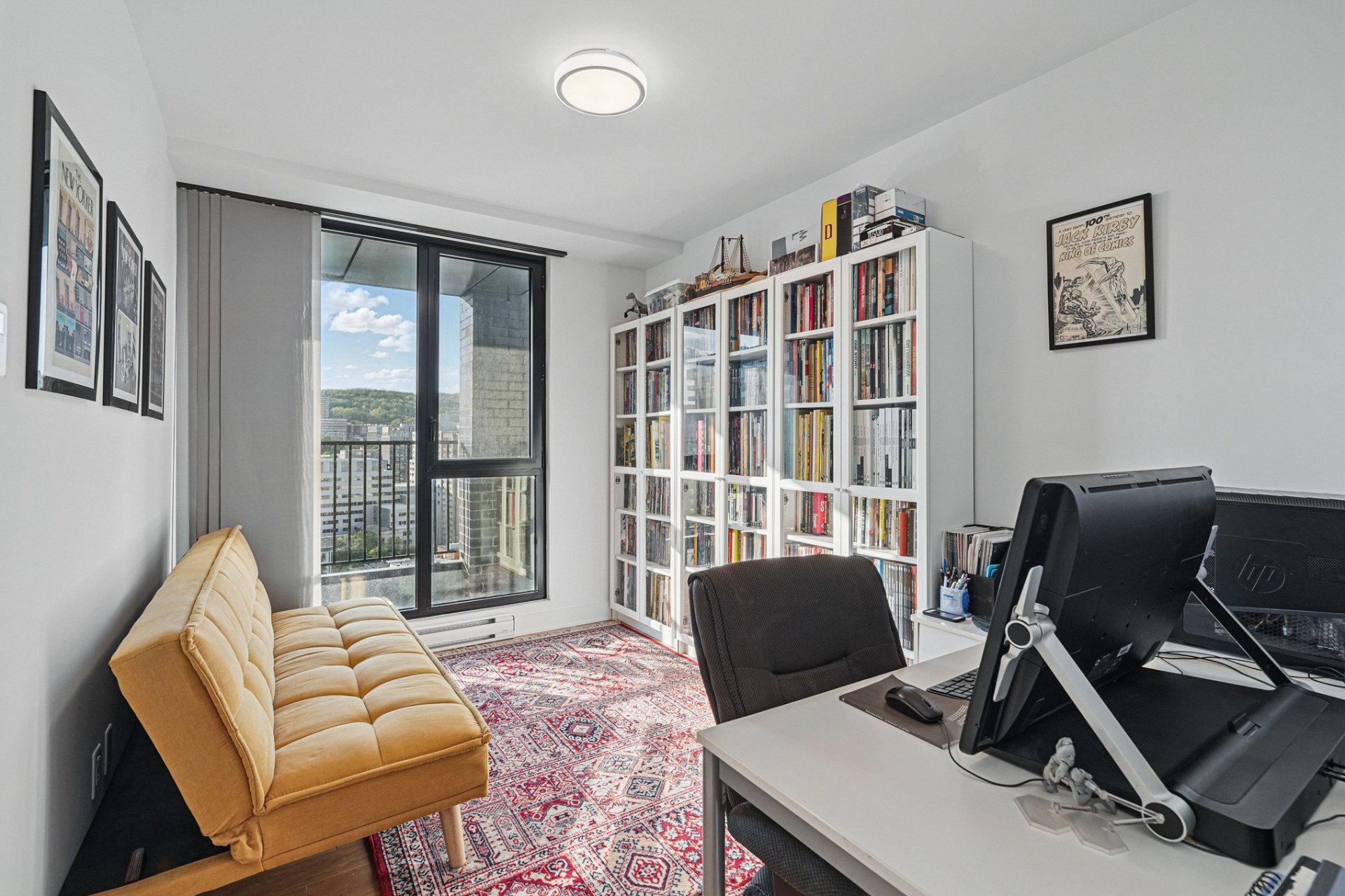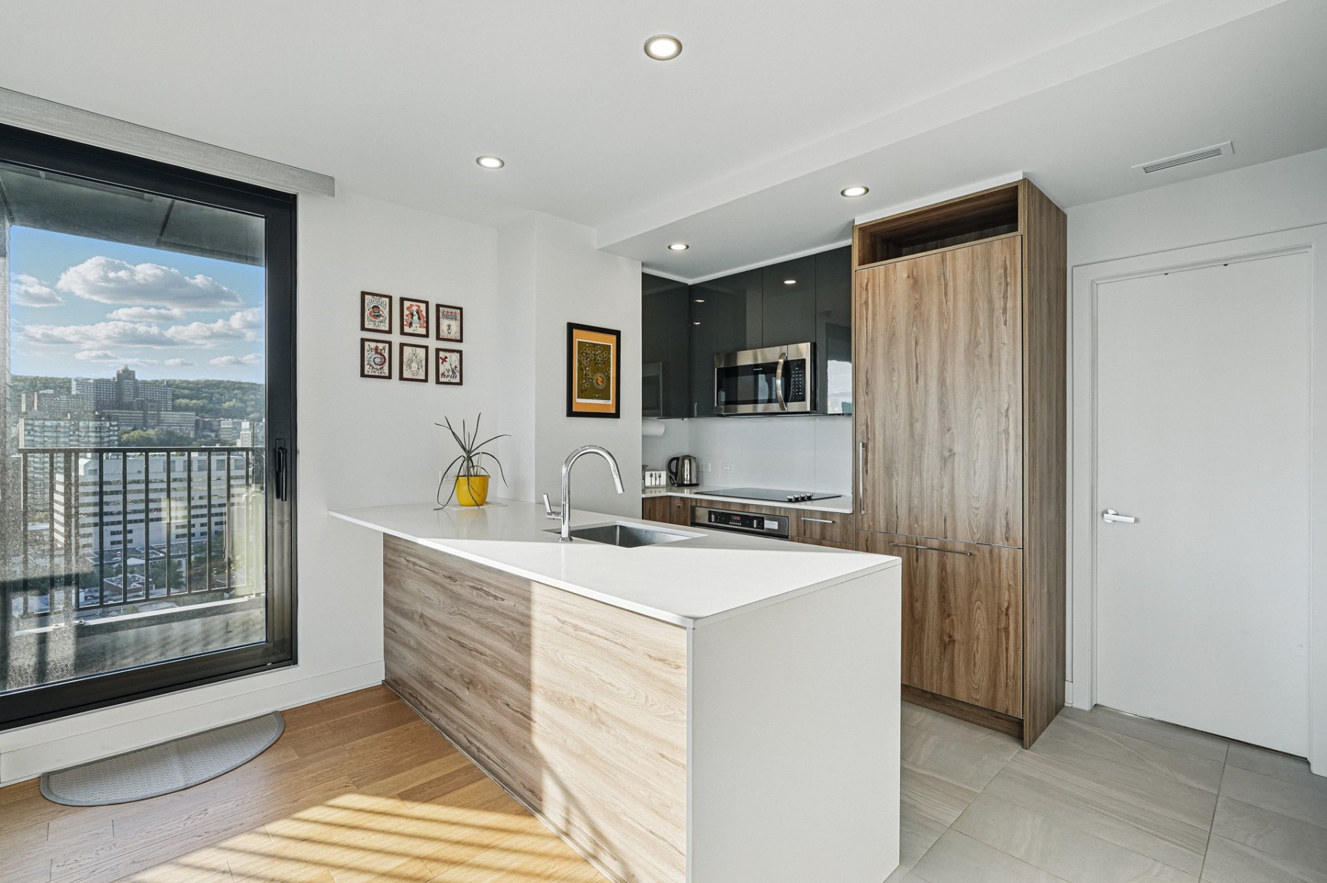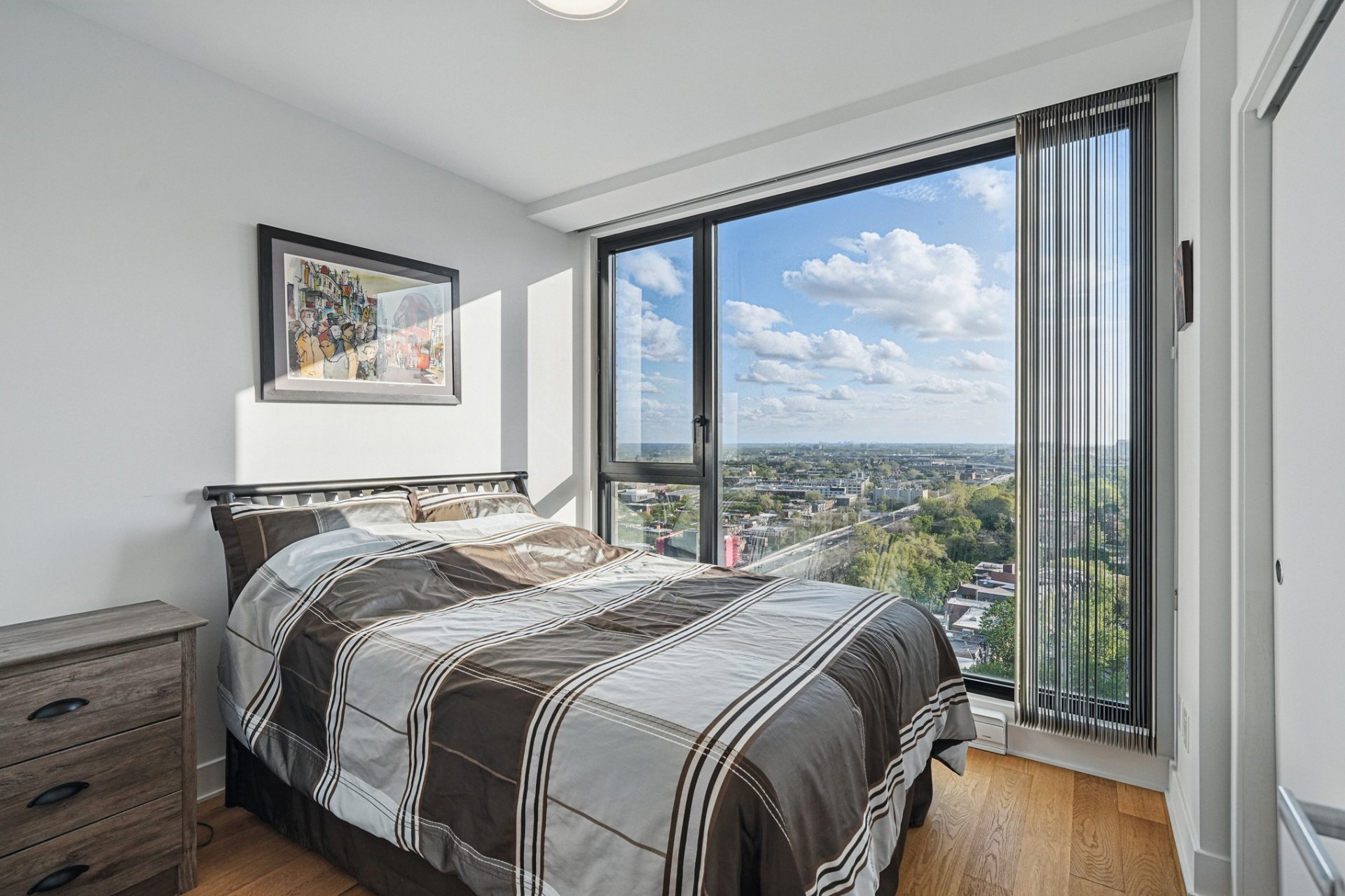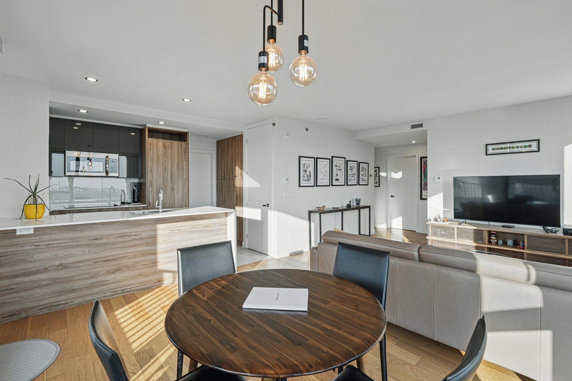 An exceptional unit with panoramic views not to be missed! Located in one of the building's best locations, this superb corner condo offers 2 bedrooms and 2 bathrooms, as well as an impressive 31-foot balcony, the largest in the building. Enjoy spectacular views of the city, the river, and the mountain--a breathtaking panorama, day and night. The unit captivates with its abundant light, well-designed spaces, and modern comforts. Whether you're looking for an urban pied-à-terre or a quality investment, this property meets all expectations.