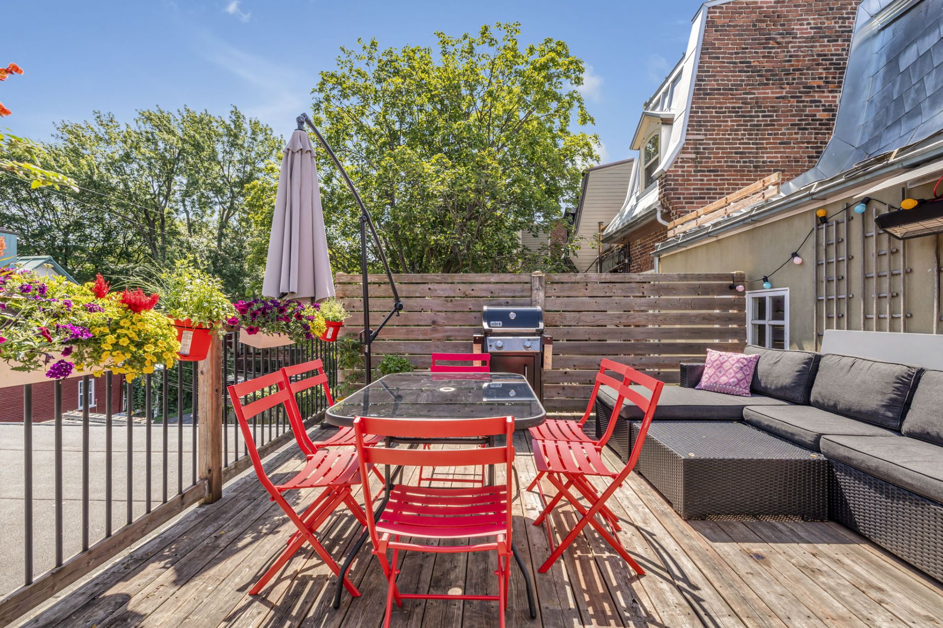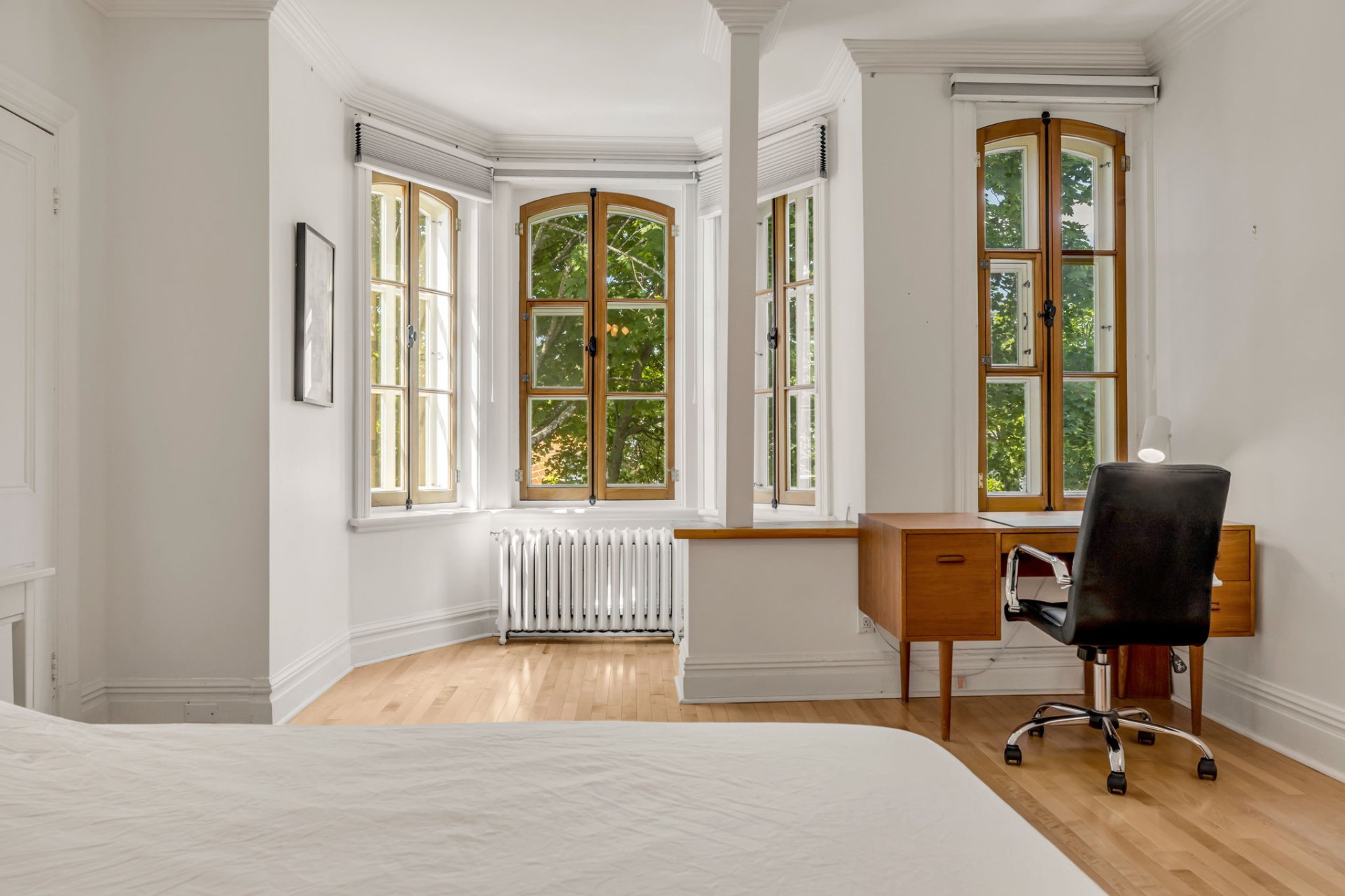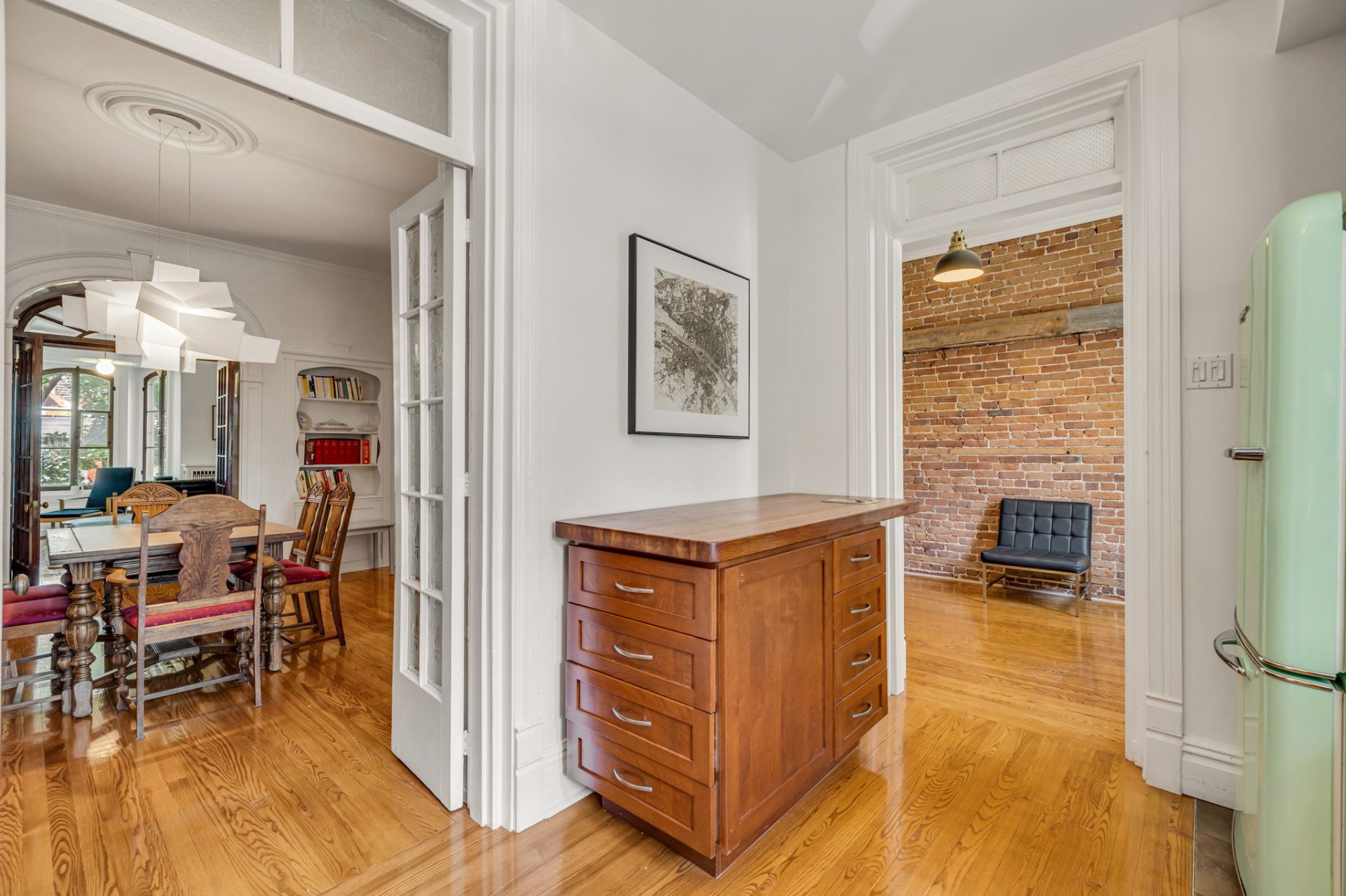 This avenue is quite simply one of the best preserved in the Montcalm district, and offers condo gems like this one. An historic 1878 building held in undivided co-ownership, of imposing nobility and jealously maintained. This 2200 sq. ft. two-storey unit, with a roof terrace on the kitchen floor, offers 4 bedrooms, an office and exceptional living space. This building was transformed into an undivided co-ownership and extensively renovated while retaining its soul and cachet. 1 parking space by the alley, wood fireplace, original woodwork and built-in furniture, brick walls, superb, truly delectable!