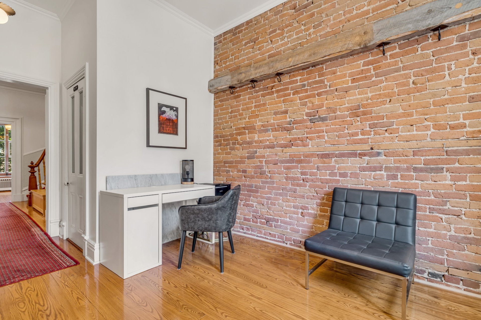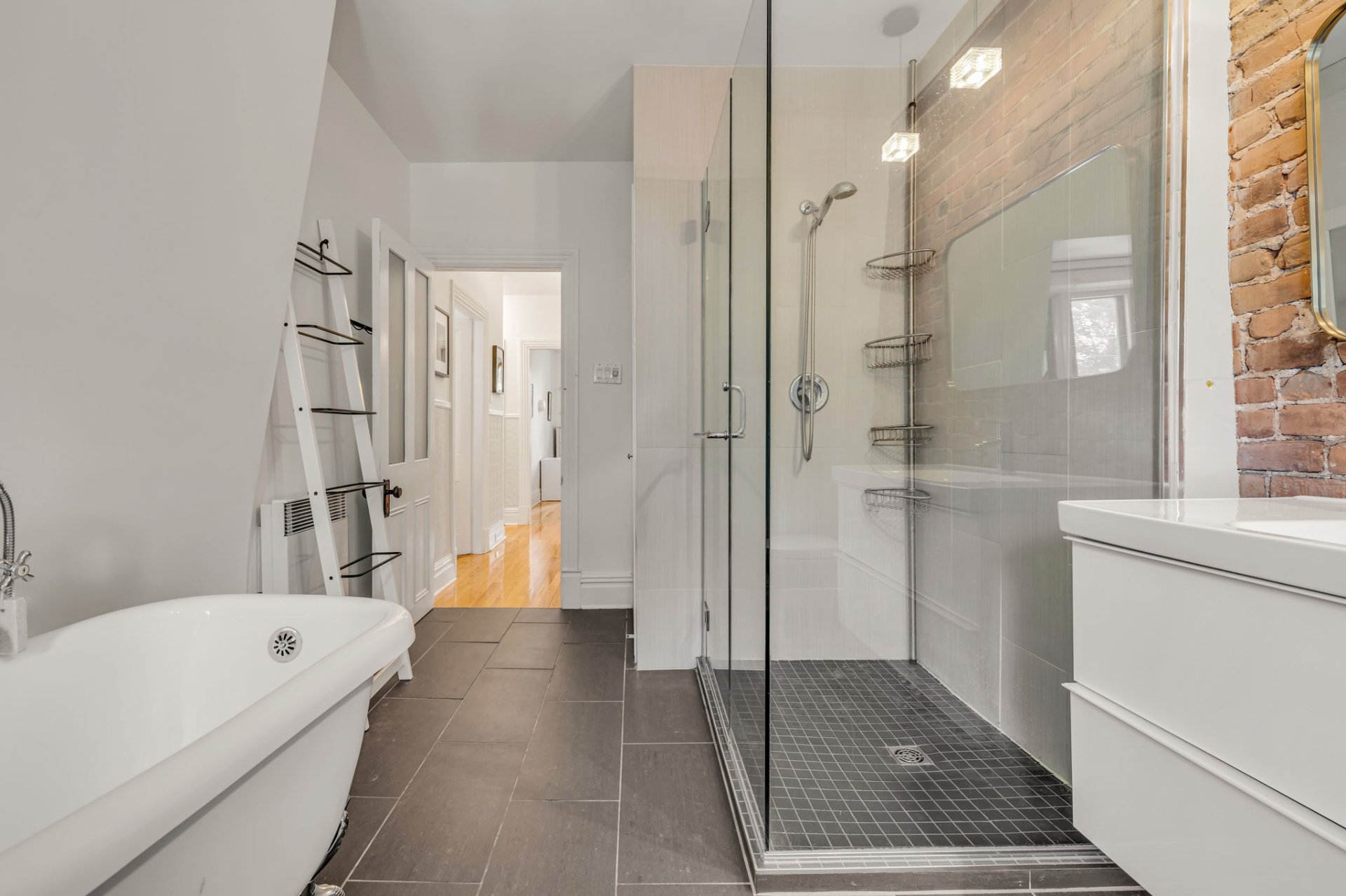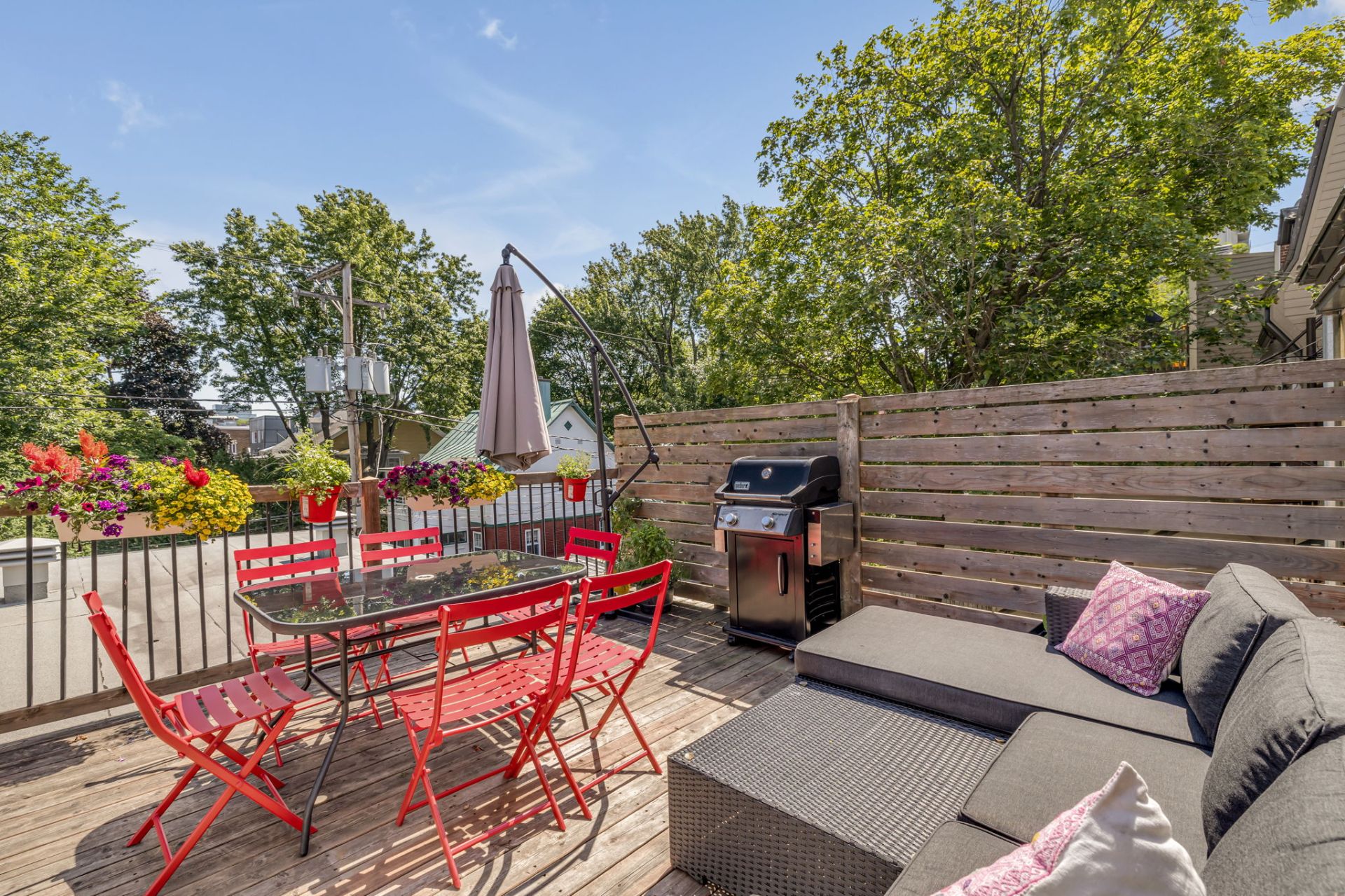 This avenue is quite simply one of the best preserved in the Montcalm district, and offers condo gems like this one. An historic 1878 building held in undivided co-ownership, of imposing nobility and jealously maintained. This 2200 sq. ft. two-storey unit, with a roof terrace on the kitchen floor, offers 4 bedrooms, an office and exceptional living space. This building was transformed into an undivided co-ownership and extensively renovated while retaining its soul and cachet. 1 parking space by the alley, wood fireplace, original woodwork and built-in furniture, brick walls, superb, truly delectable!