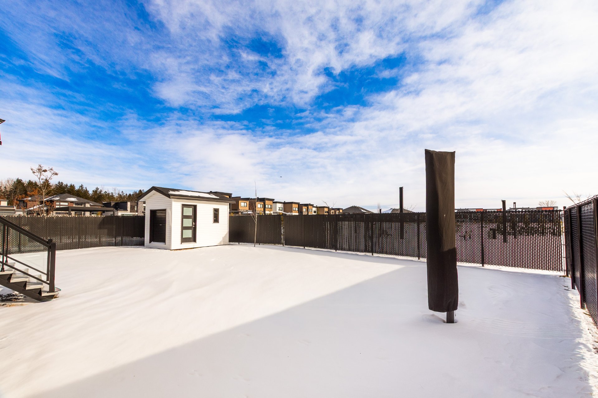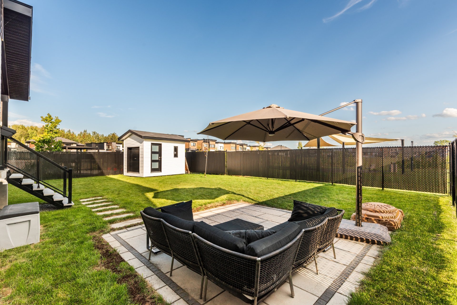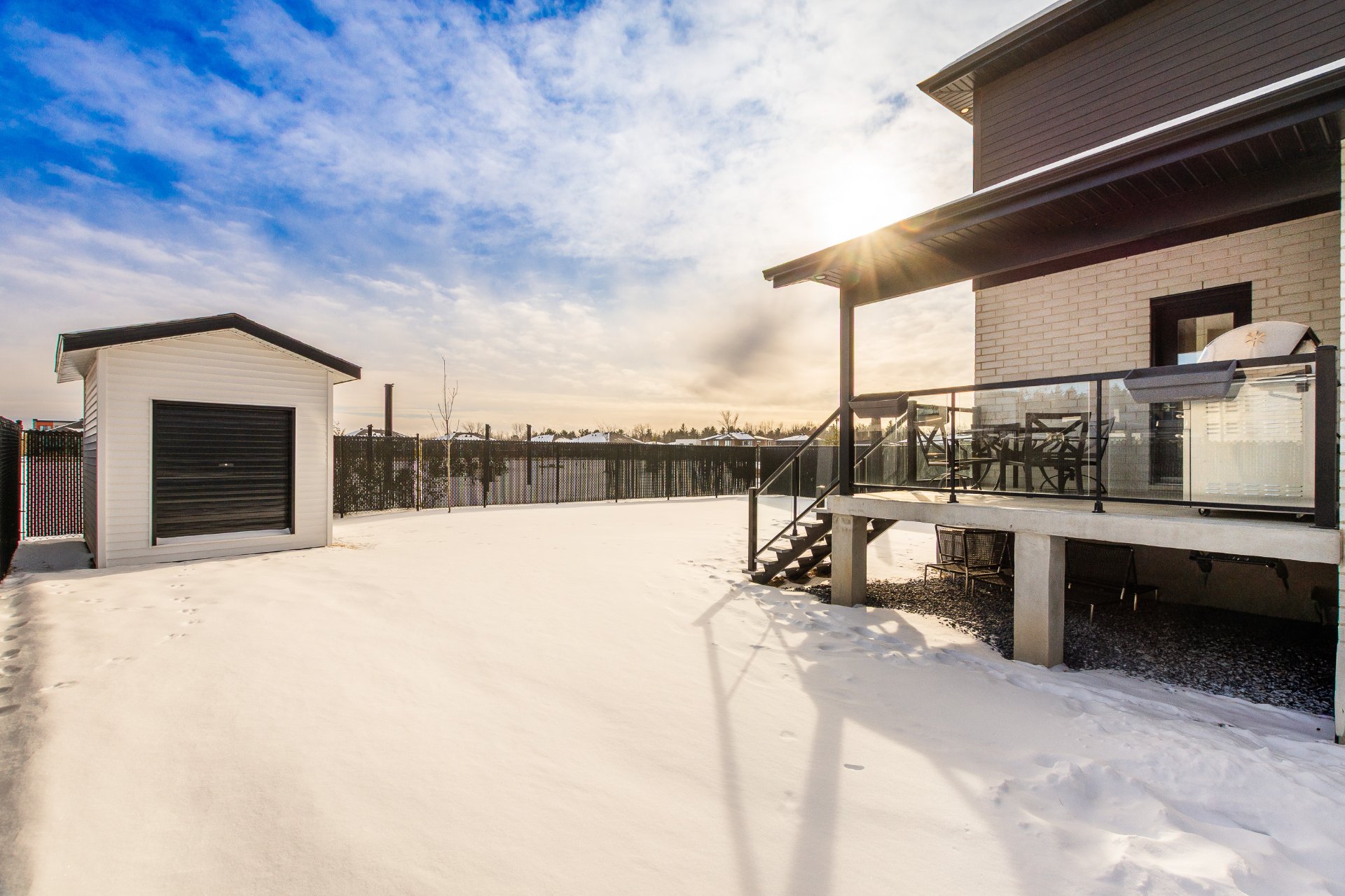 Enjoy a large backyard with no rear neighbors, offering privacy and views of a vast park. Two separate terraces and a garden shed complete the layout.