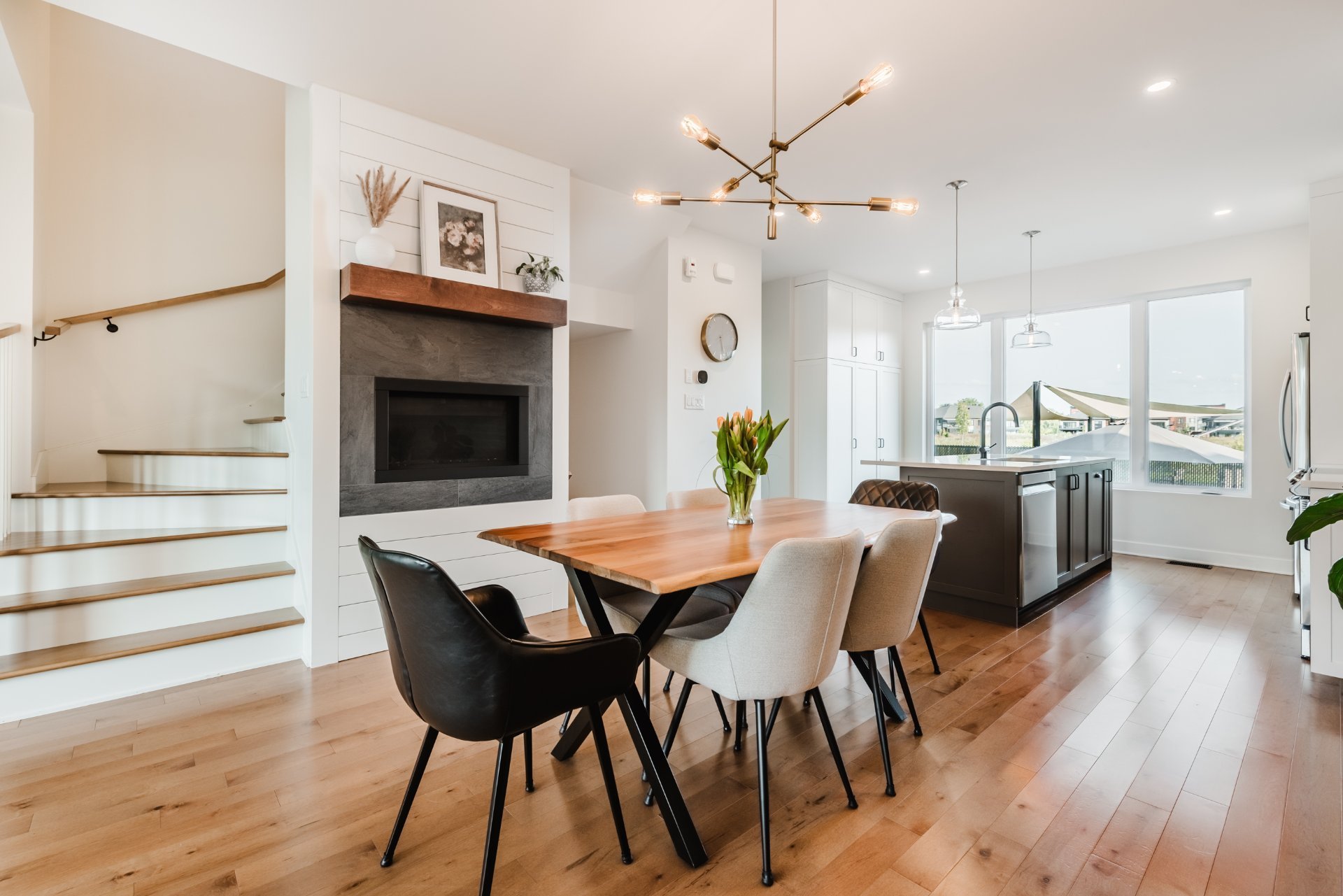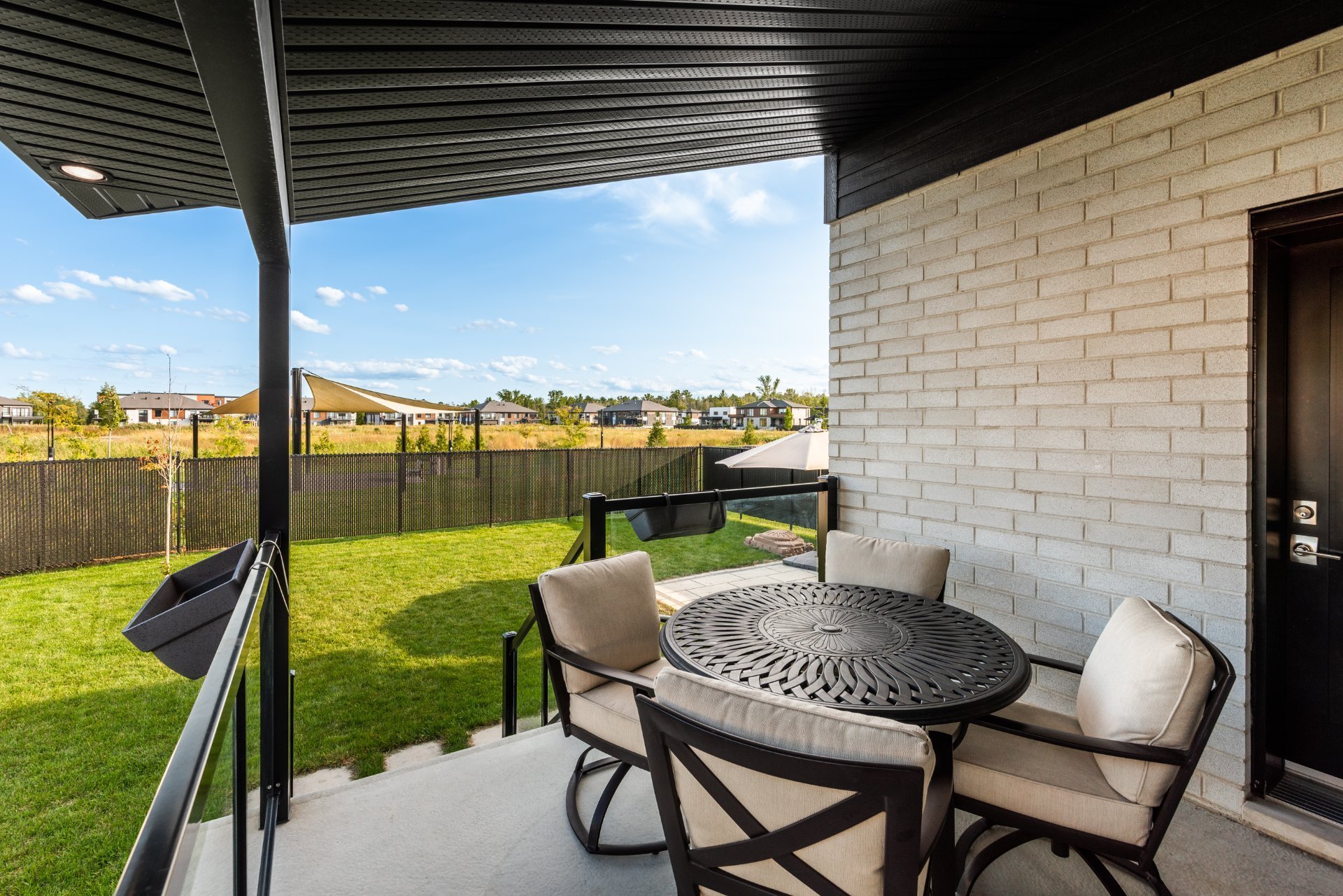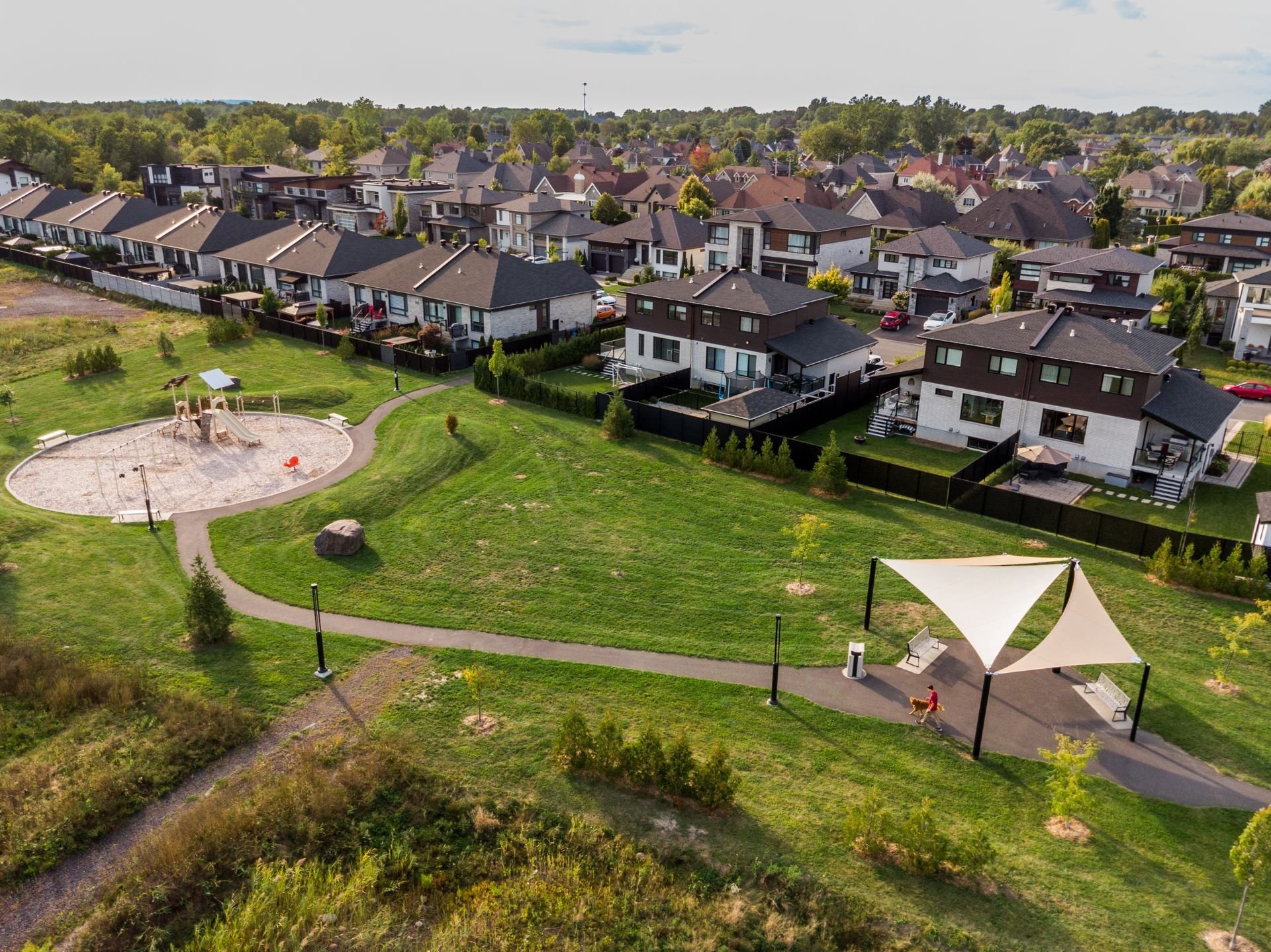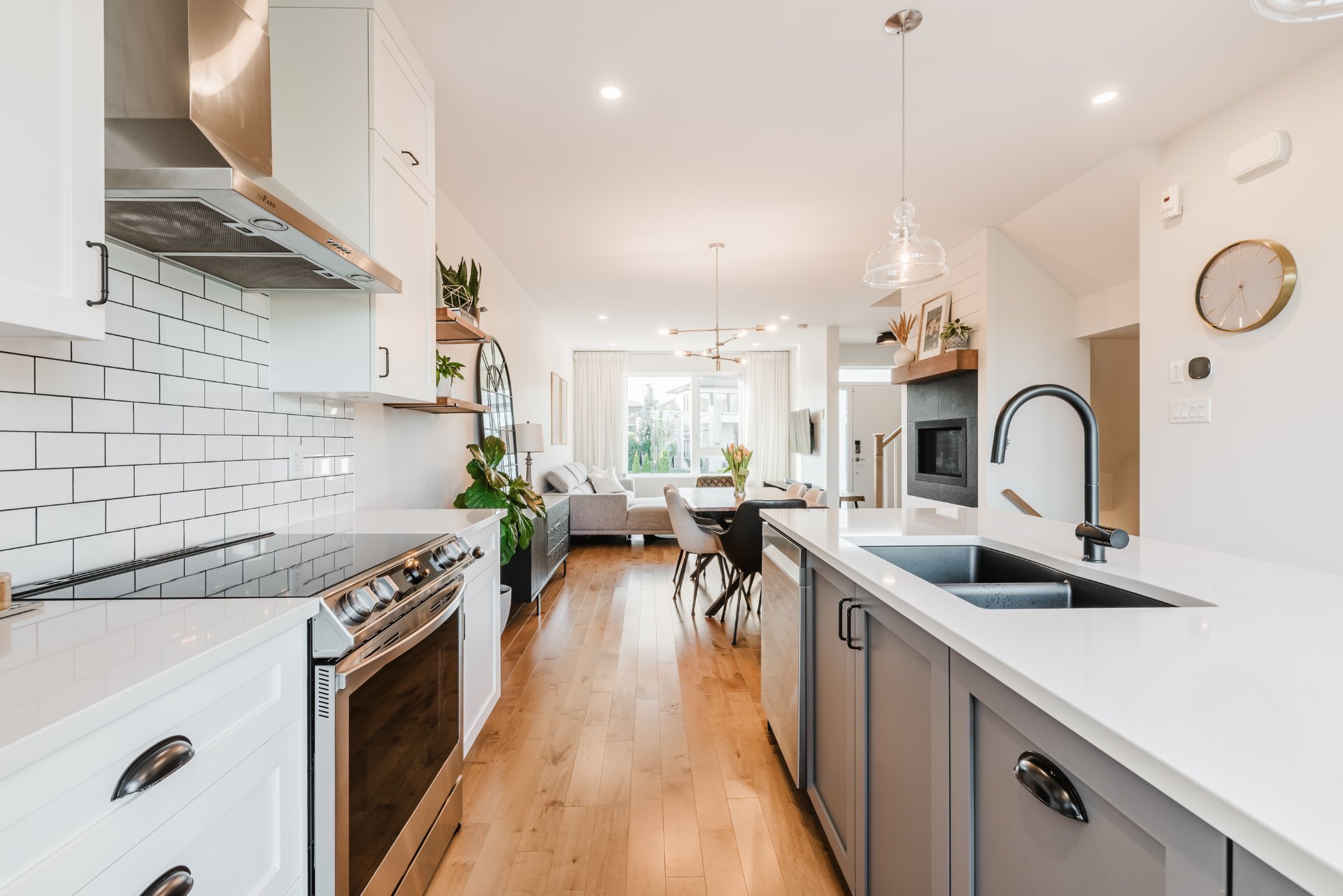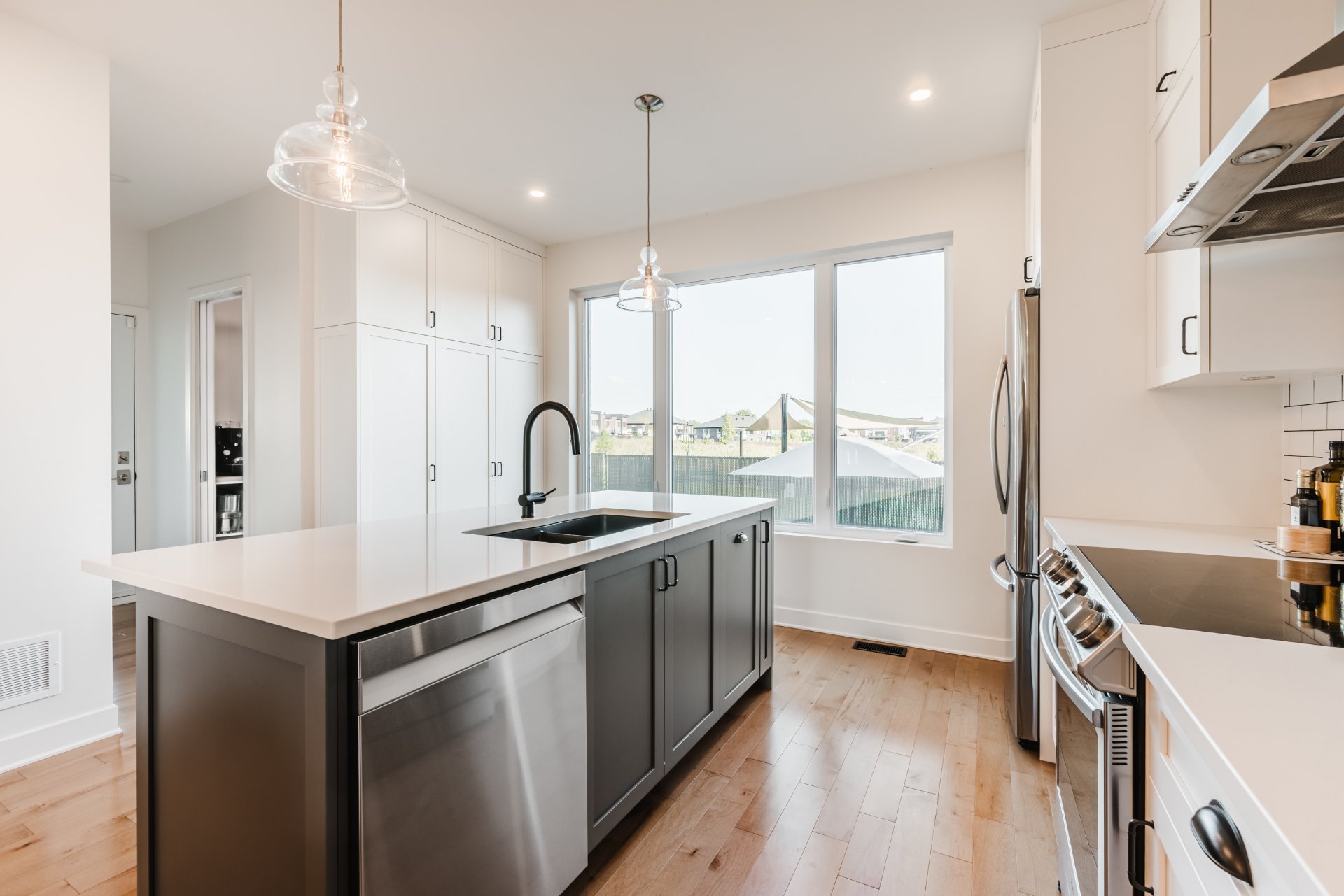 Projet Riviera : Superb contemporary-style property offering space, elegance and brightness. Open-plan first floor with 9' ceilings, large windows, warm living room with gas fireplace and high-end kitchen with quartz countertops, appliances and back kitchen. Three spacious bedrooms upstairs, including a master suite with walk-in closet. Finished basement with full bathroom and bright office. Large backyard with no rear neighbors and park views.