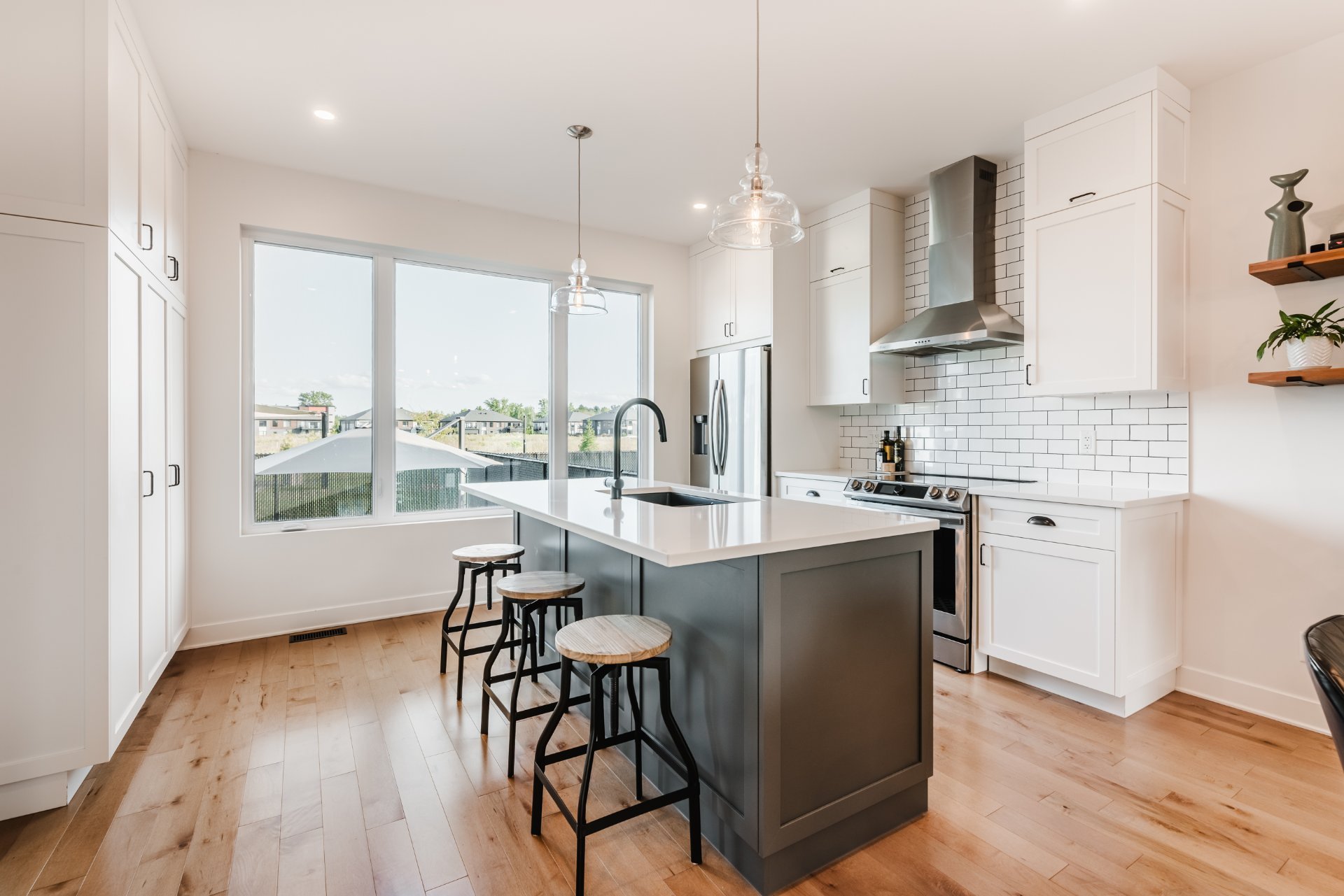 This home combines elegance and performance with a geothermal system, centralized heating and air conditioning, natural gas connection (fireplace, water heater, BBQ, with possibility of connecting the stove).