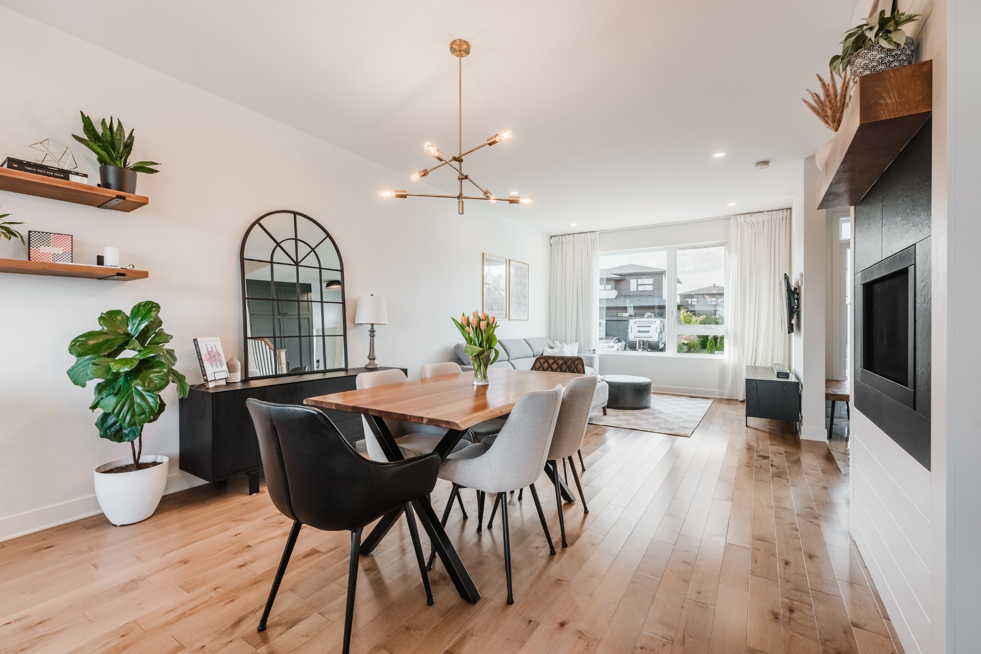 From the moment you enter, you'll be charmed by the 9-foot ceilings and abundant light provided by generous windows. The open-plan layout features an elegant living room with gas fireplace, a convivial dining room and a top-of-the-range kitchen with quartz countertops, built-in appliances and a practical back kitchen. A covered concrete terrace extends the outdoor living space, ideal for entertaining.