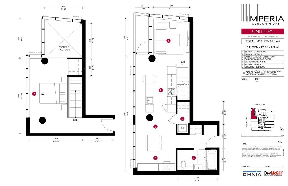 Welcome to 2101, located on the 21th floor offering you breathtaking views of Montreal, an abundance of natural light and a custom designed floor plan on 2 floors to maximize the functionality of the space.
