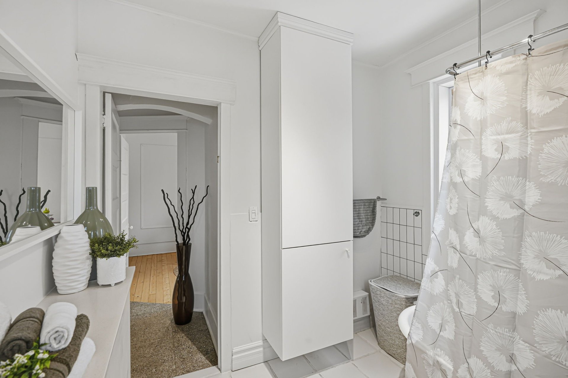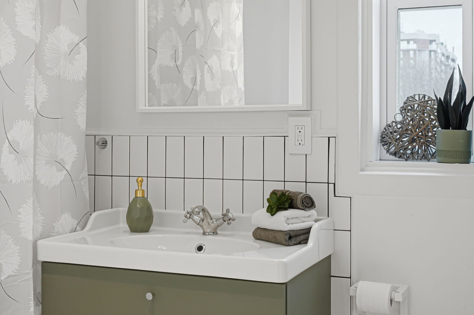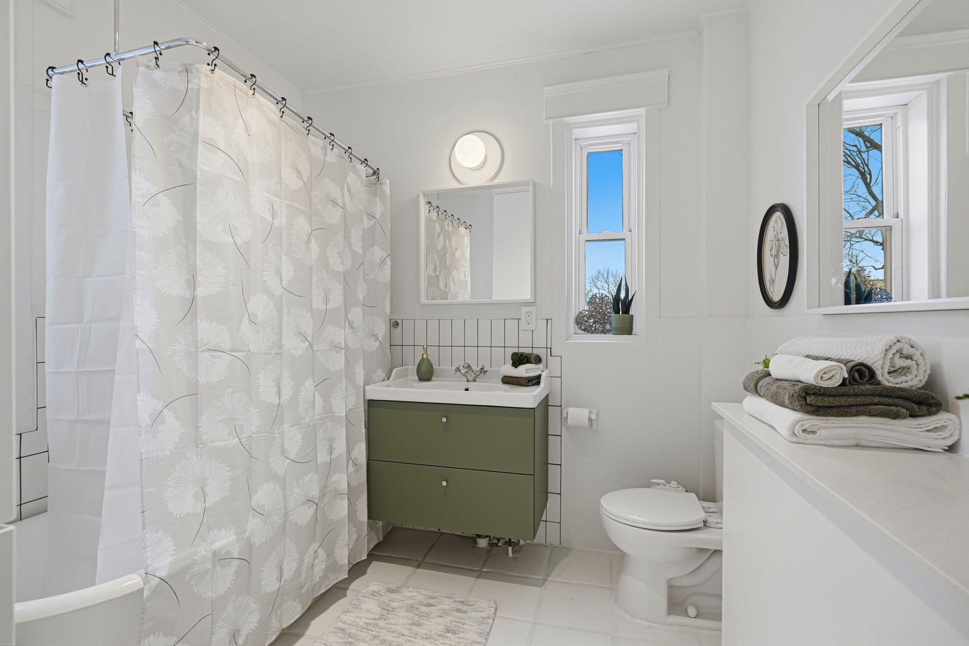 - Charming, bright bathroom with an elegant clawfoot tub.