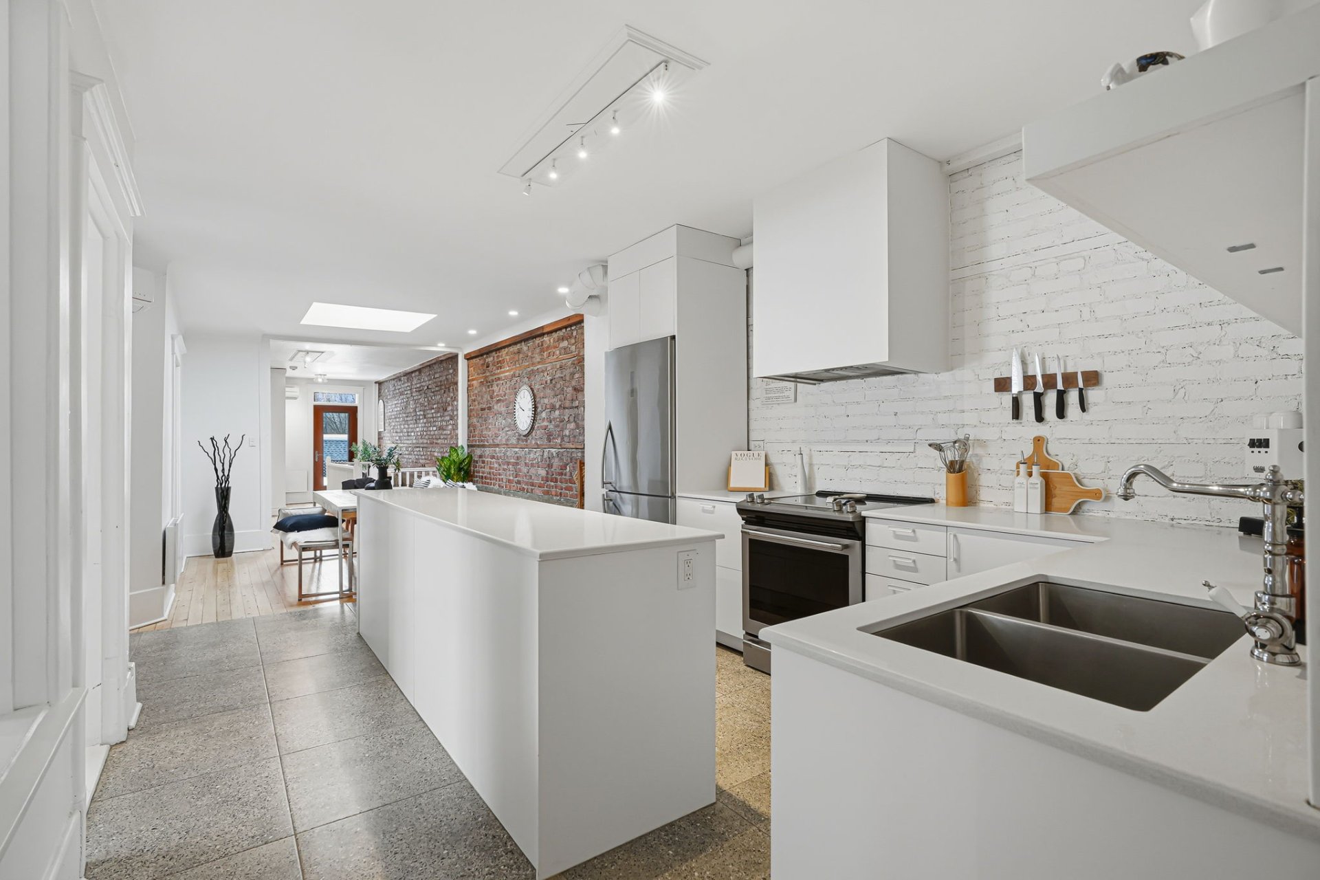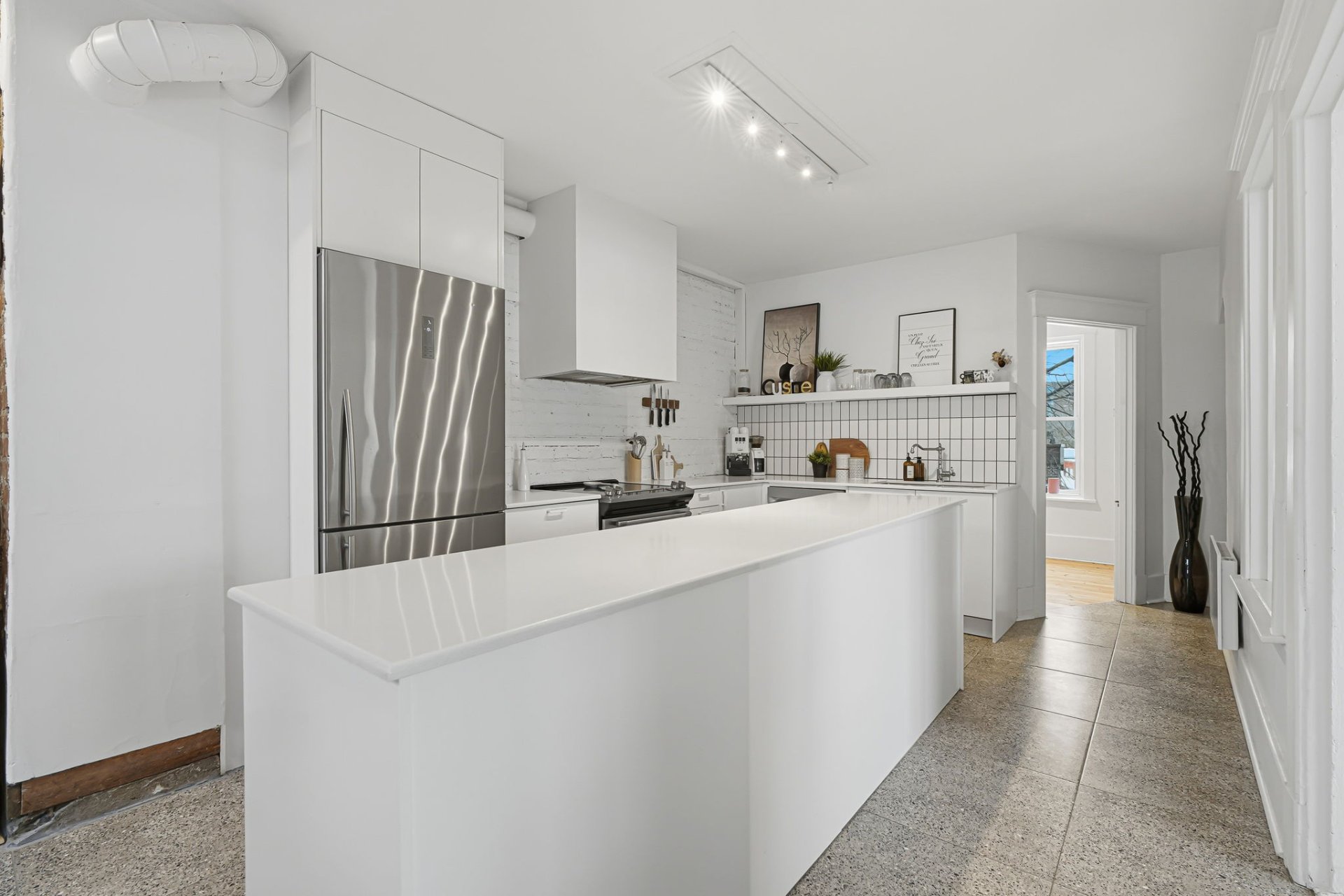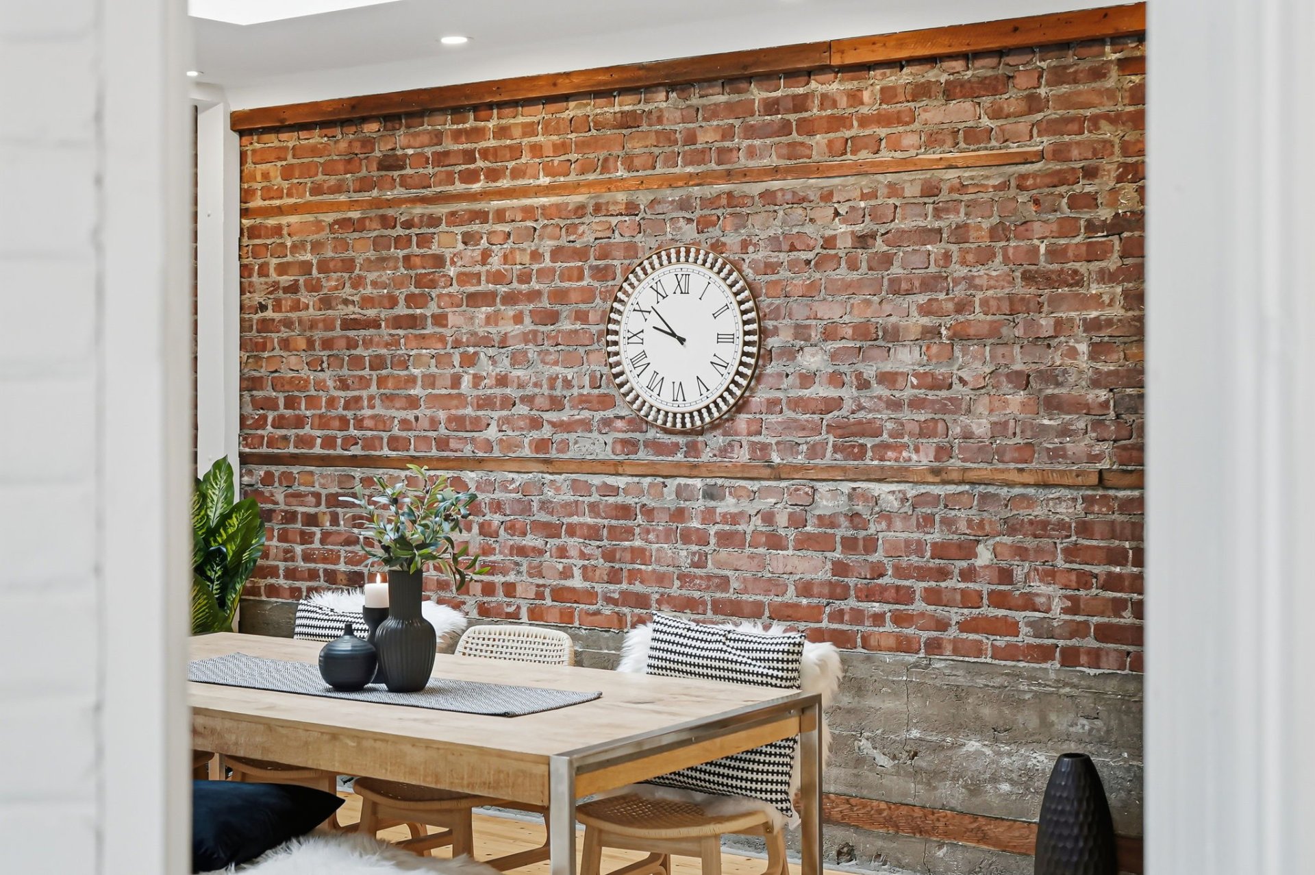 - ± 9-foot ceilings, brick walls, exposed concrete, original moldings and doors, wood floors: a harmonious blend of authenticity and contemporary warmth.