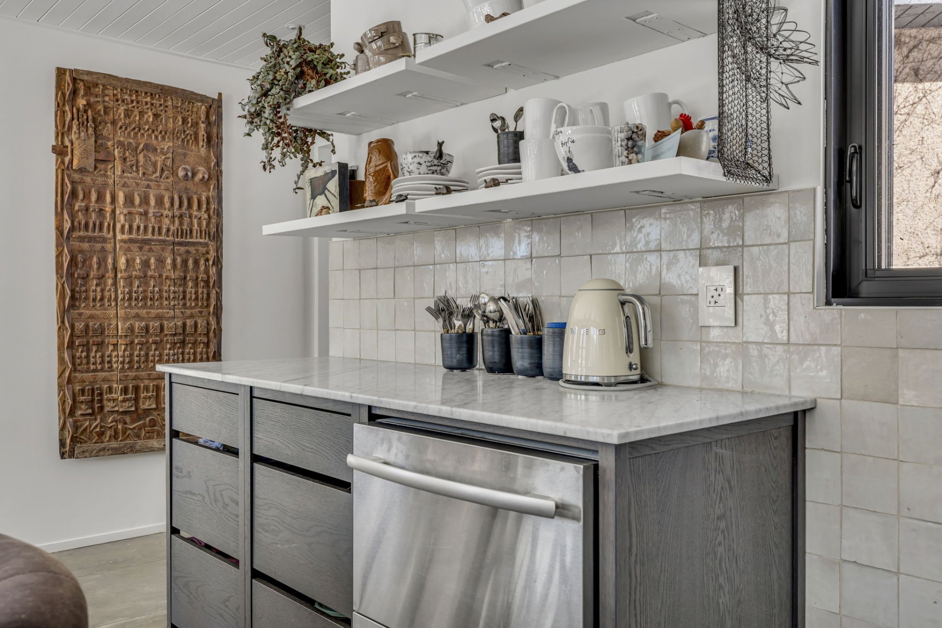 The residence showcases the craftsmanship of local designers and artisans, both inside and out. Every element has been carefully selected: custom millwork, noble materials, refined finishes, and a harmonious integration of textures. The kitchen, both functional and aesthetically refined, reflects this commitment to blending design and conviviality, while the living spaces offer seamless flow between areas.