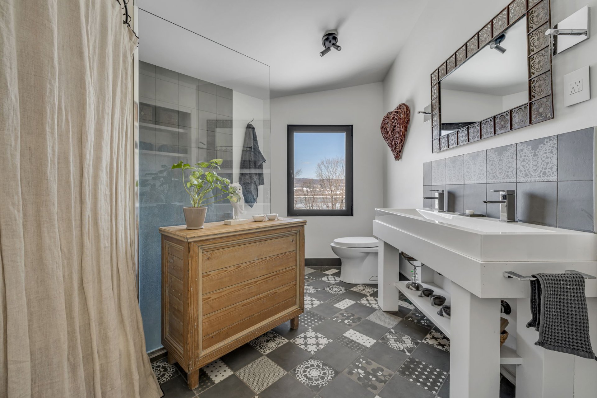 Architect-designed residence with Mediterranean inspiration and distinctive charm, where every line and opening has been carefully conceived to enhance the flow of natural light. Inspired by Feng Shui architectural principles, it offers a rare harmony between volume, orientation, and well-being. High ceilings bathe the living areas in a soft, enveloping brightness. A warm, inviting kitchen, clean-lined spaces, and soothing sightlines create a refined setting, elevated by a spectacular 180° view of the river. Here, everything invites serenity... a home that soothes at first glance and reveals itself with emotion.