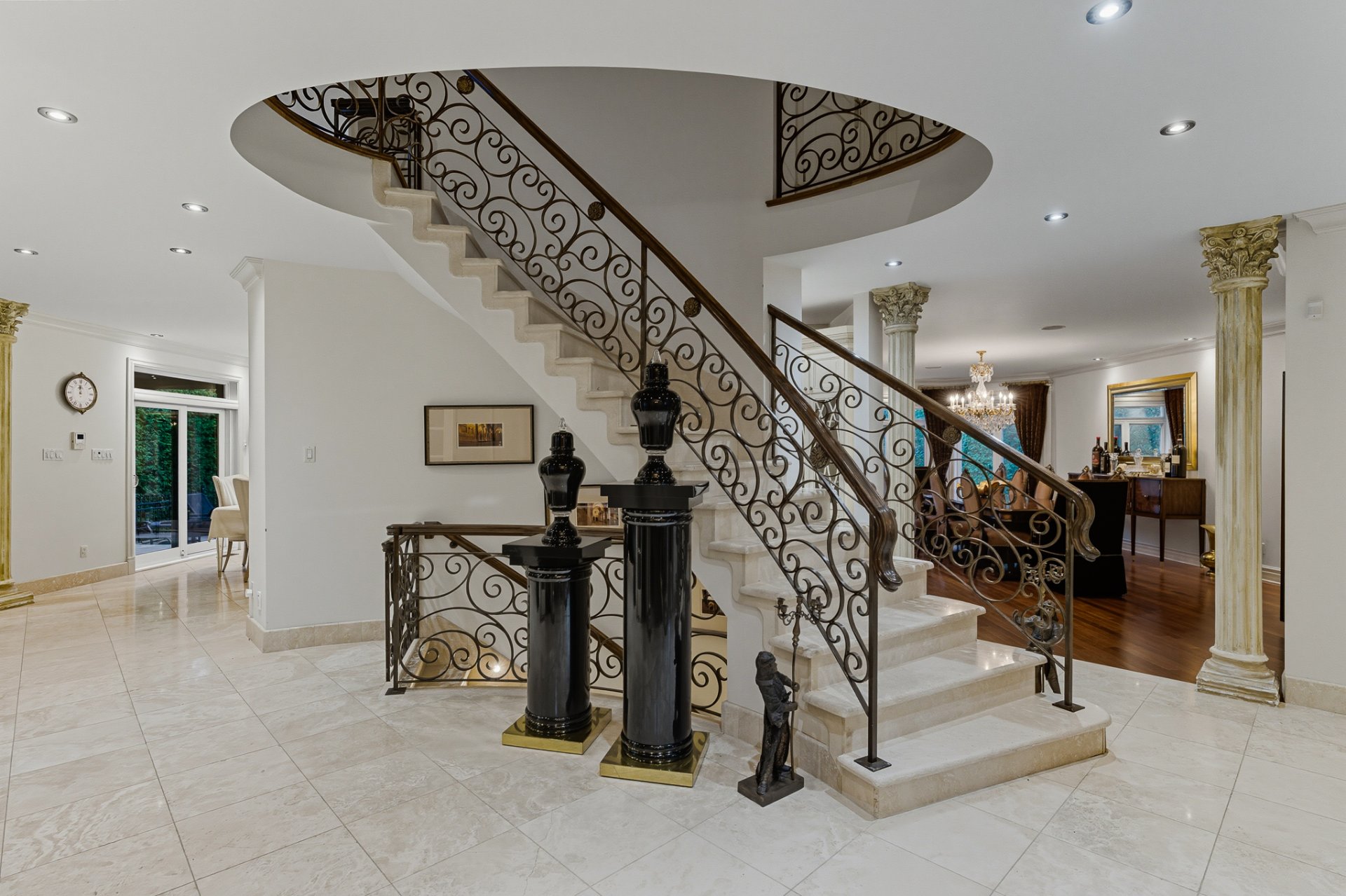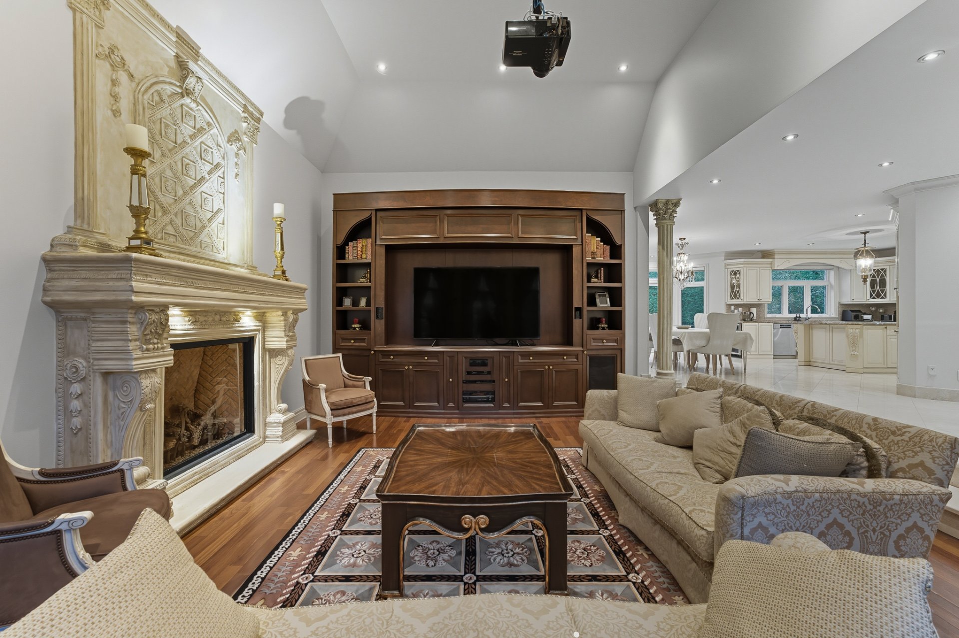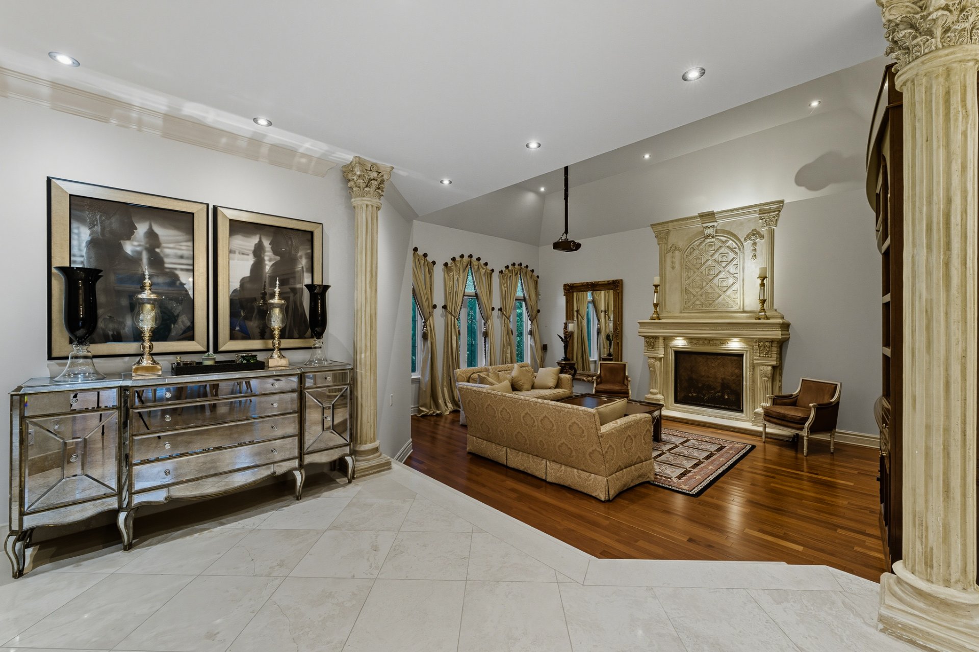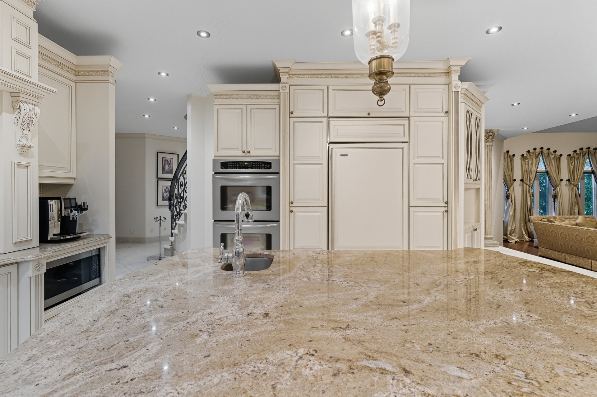 From the moment you enter, a grand cathedral-ceiling living room bathed in natural light sets the tone, showcasing noble materials and timeless sophistication.