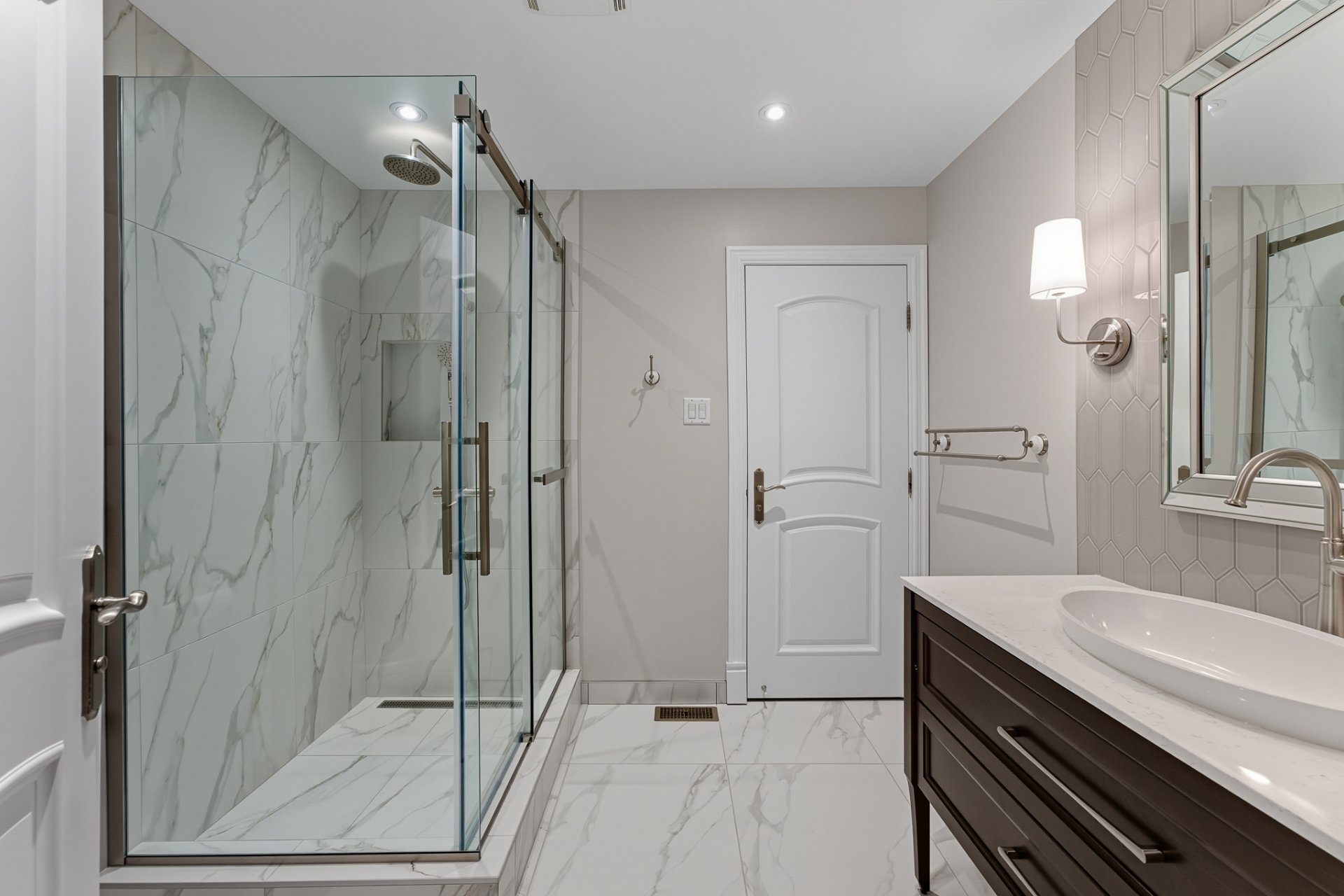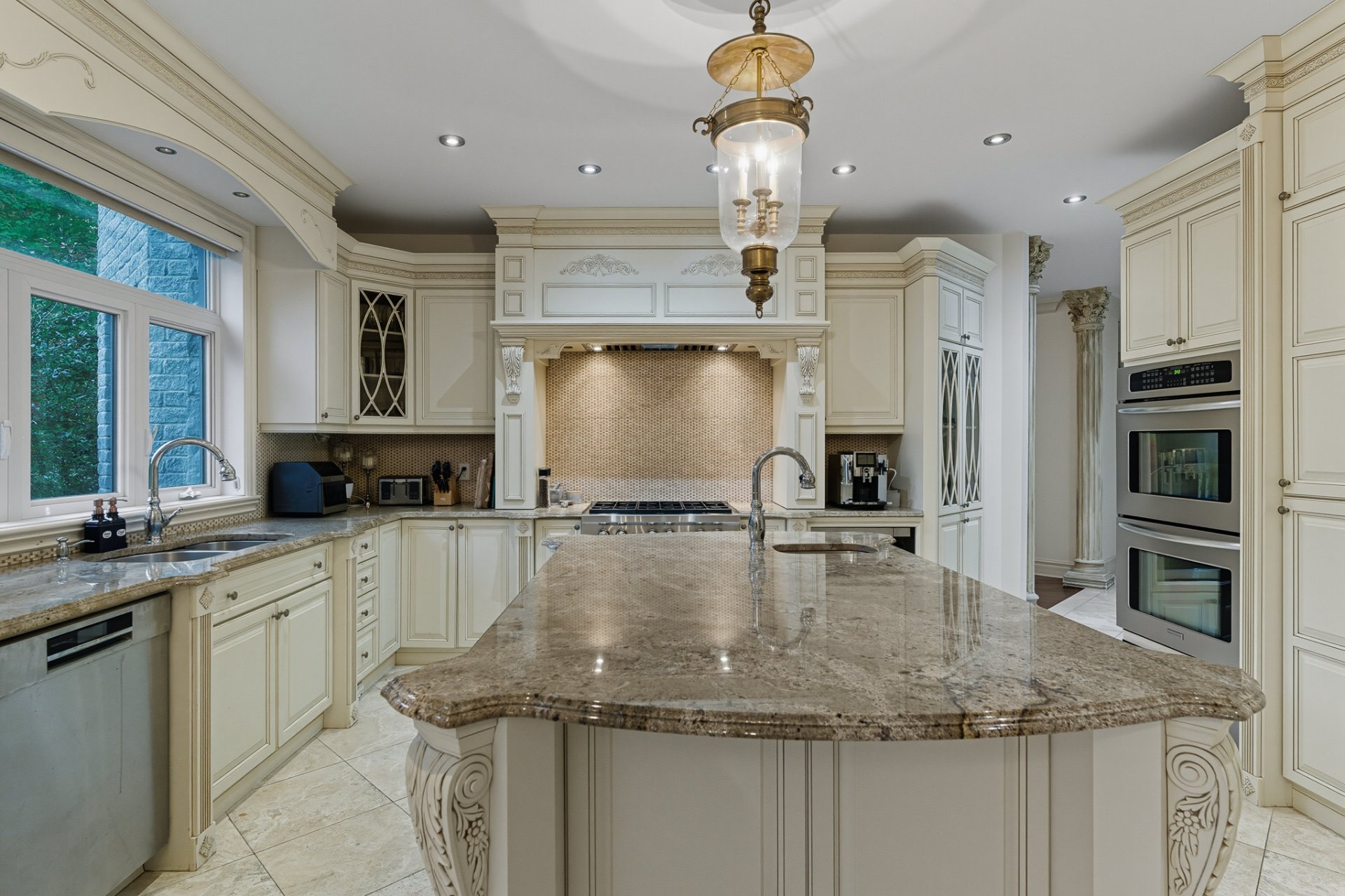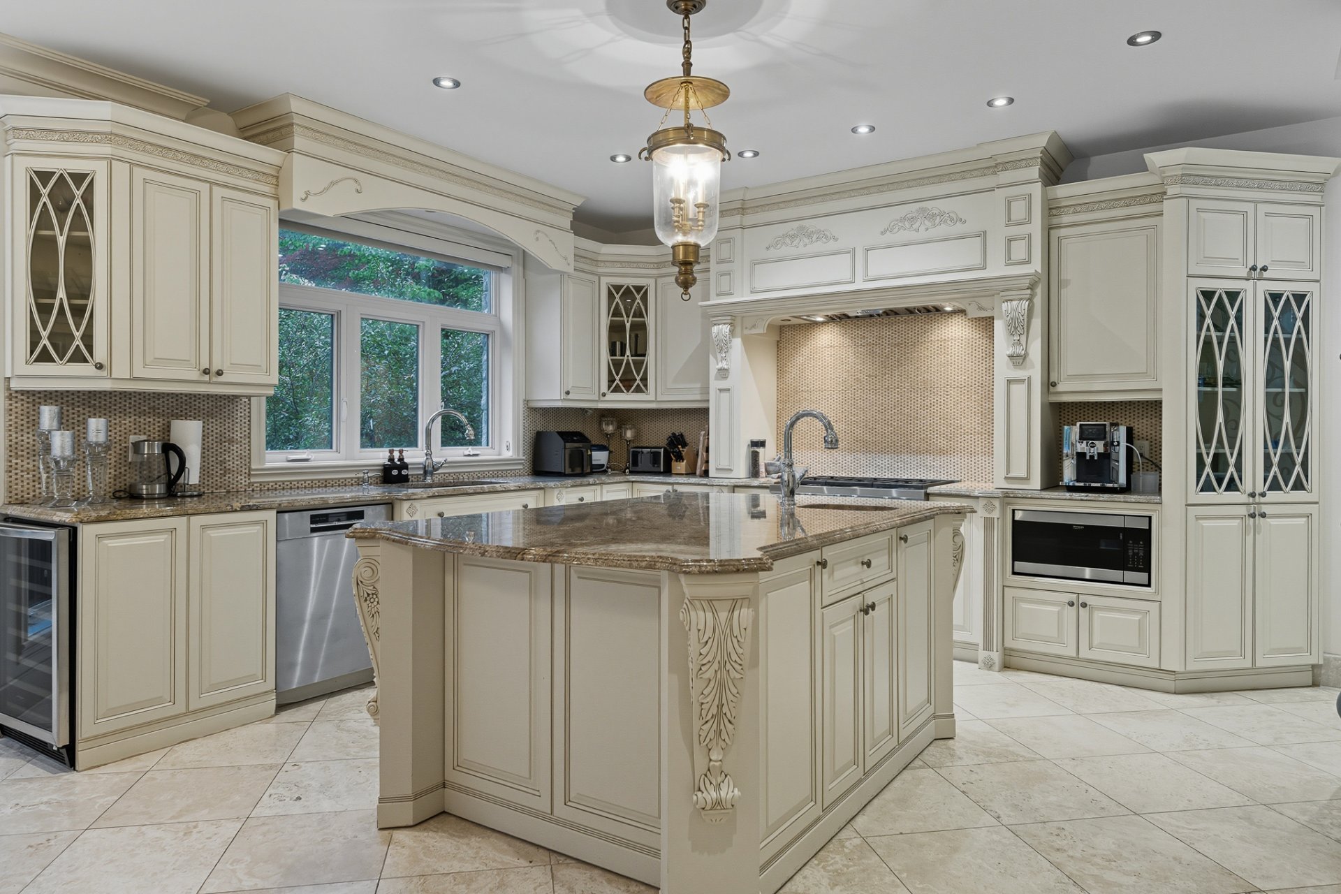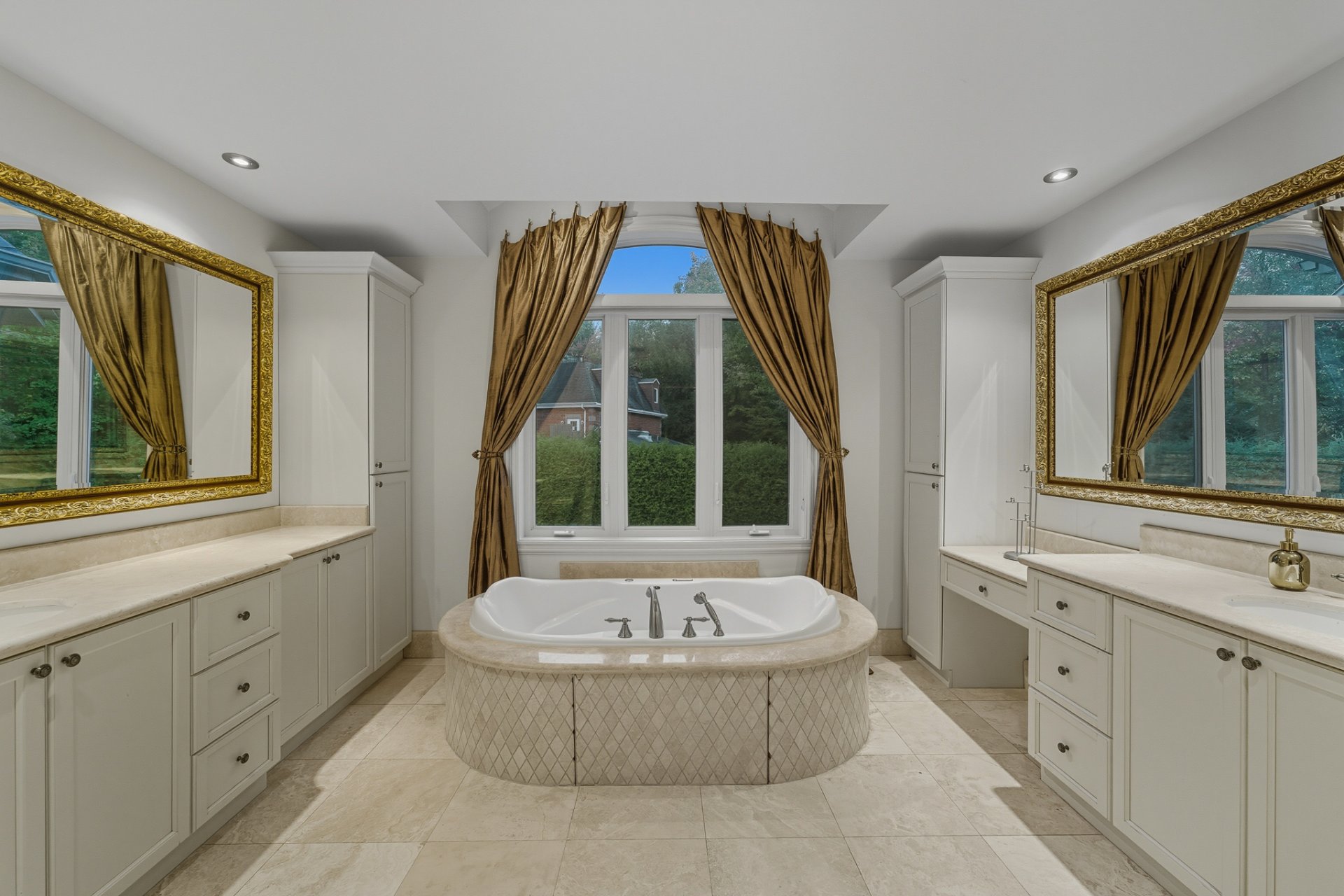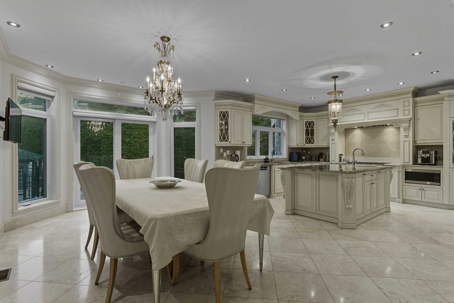 From the moment you enter, a grand cathedral-ceiling living room bathed in natural light sets the tone, showcasing noble materials and timeless sophistication.