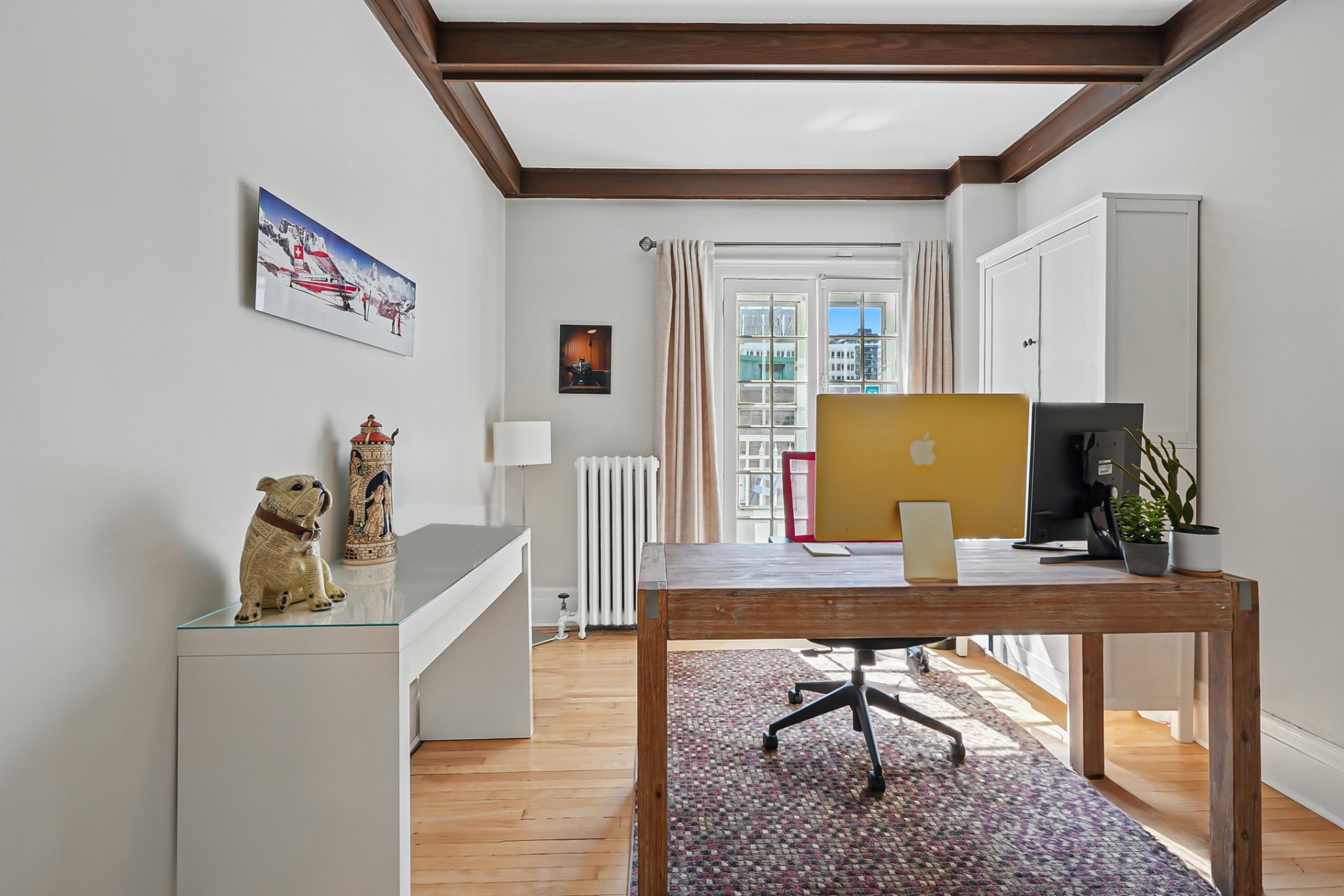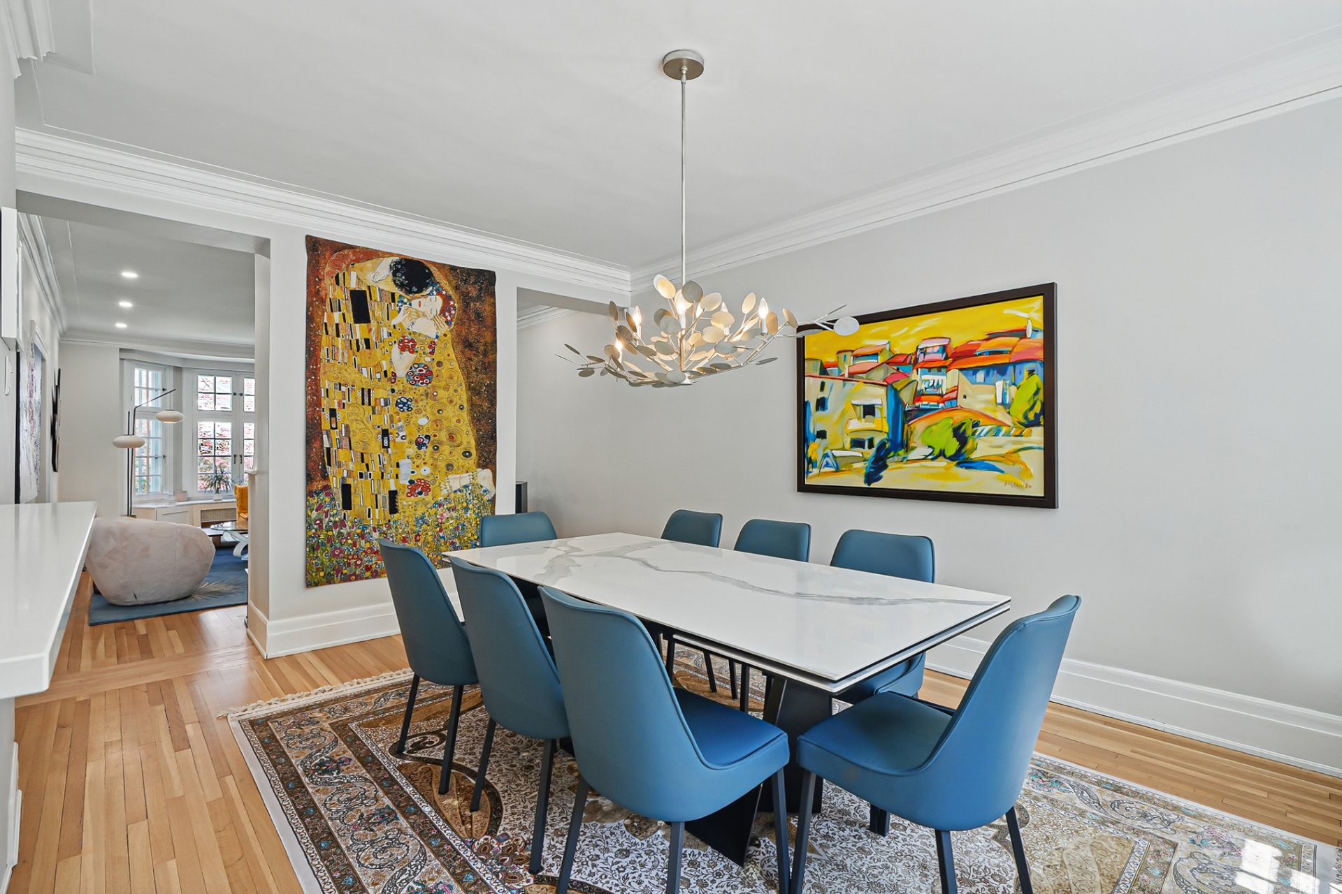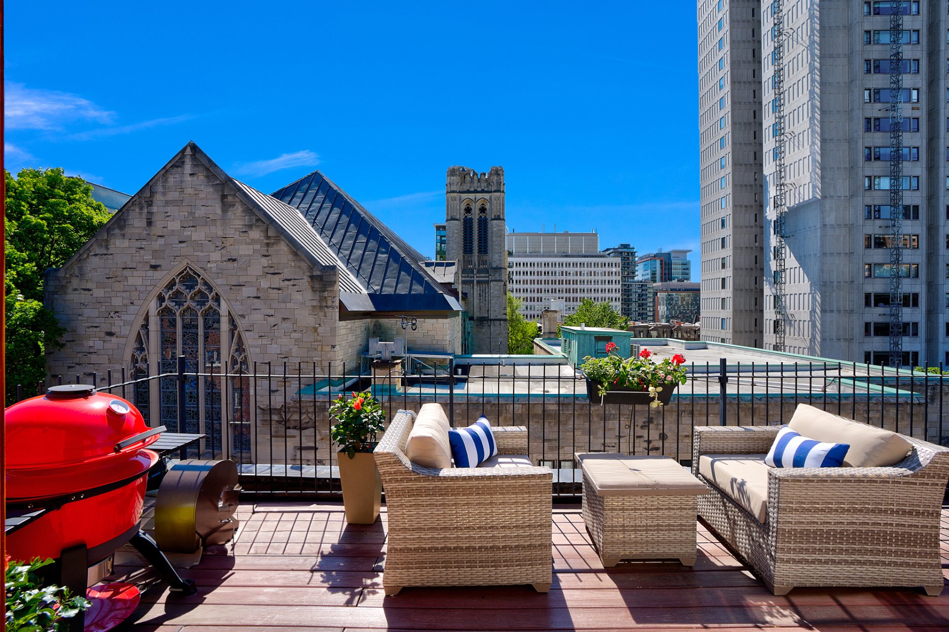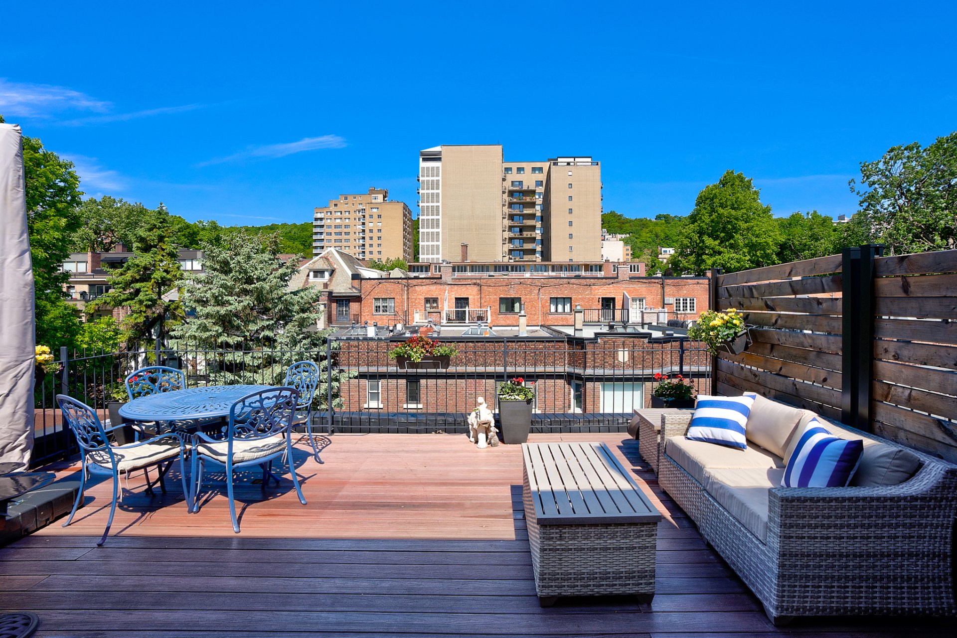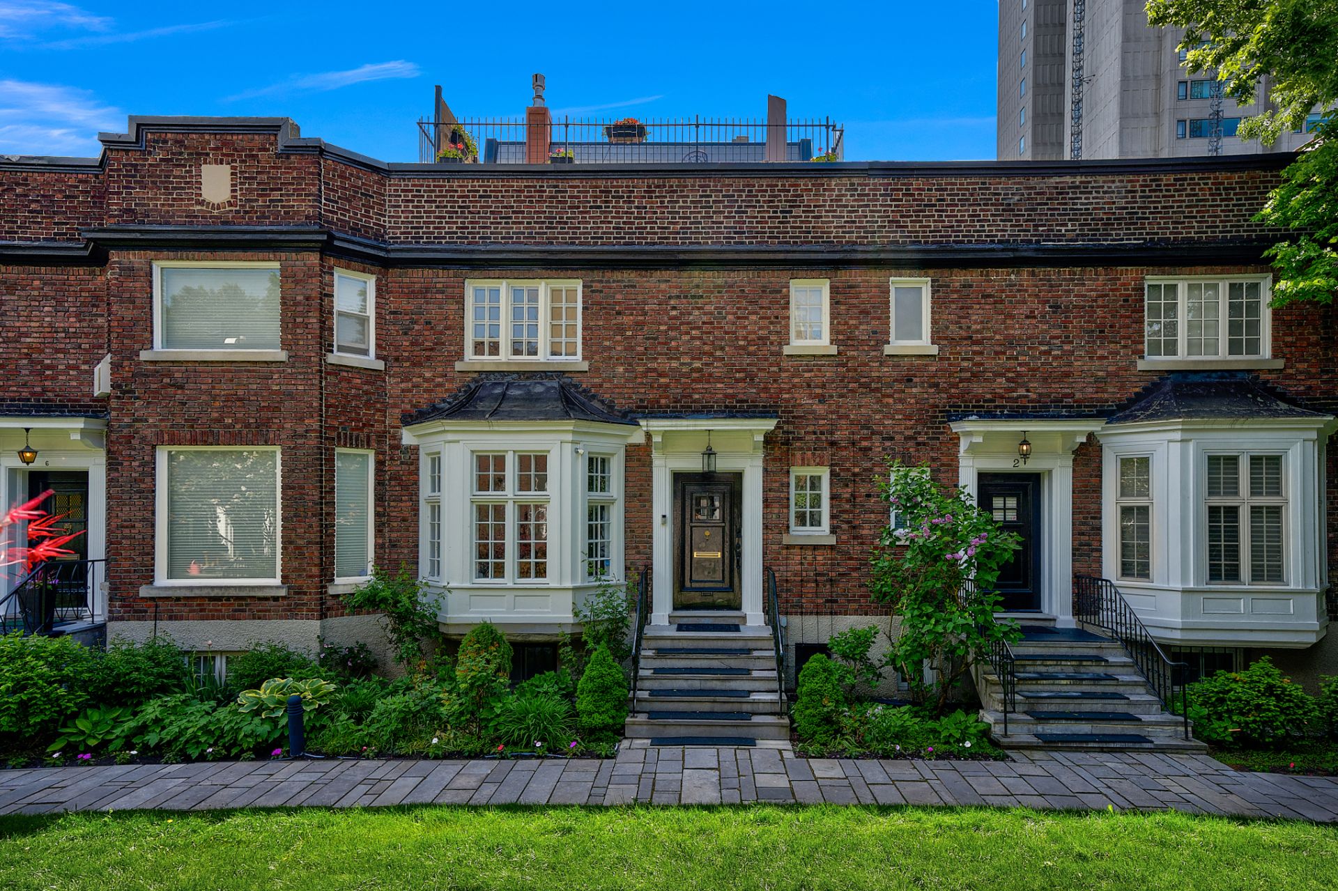 Integrated double garage and refined rooftop structure with wide doors opening onto two private terraces, one to enjoy the sunrise, the other the sunset. Winner of the 2010 Montreal Heritage Award, this classic 1923 residence gracefully combines period charm, reflected in its rich architectural details, with high-quality contemporary renovations: a sleek kitchen, three bathrooms and one powder room tastefully renovated, and 5 bedrooms, ideal for family living or a multi-generational layout. An exceptional property in the heart of the Golden Square Mile, one of Montreal's most coveted neighbourhoods.
