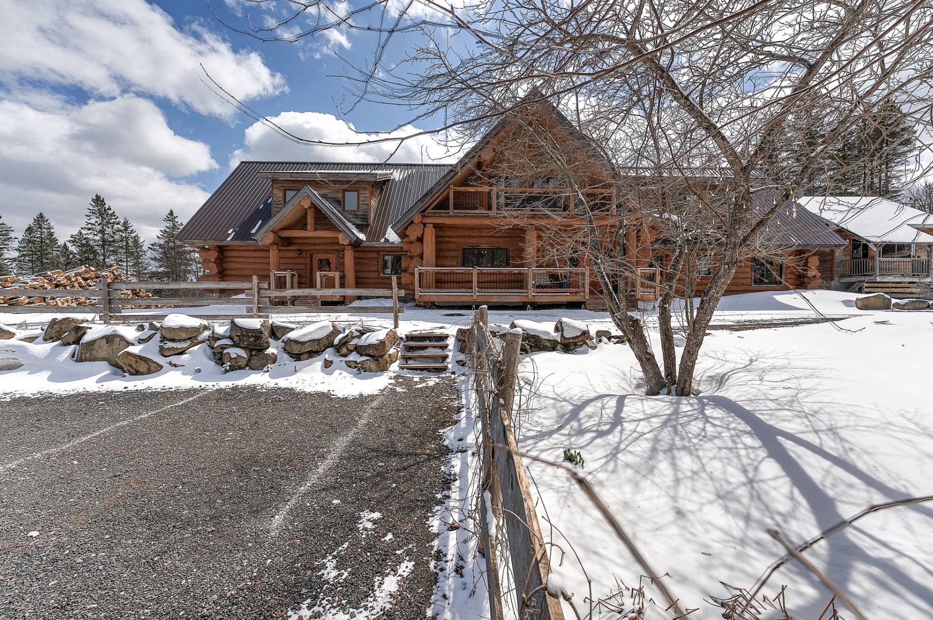 Exceptional estate at the foot of Mont Mégantic, near Mont Gosford. This magnificent log property features six bedrooms with en suite bathrooms, two garages and a high-performance wood-propane heating system. Set on 104 acres of land ideal for hunting or logging, it offers a harmonious blend of comfort, tranquility and nature. Situated in the world's first International Dark Sky Reserve, the region's grandiose landscapes and the purity of its nights are awe-inspiring. Currently used as a gîte, it could become your dream private domain.