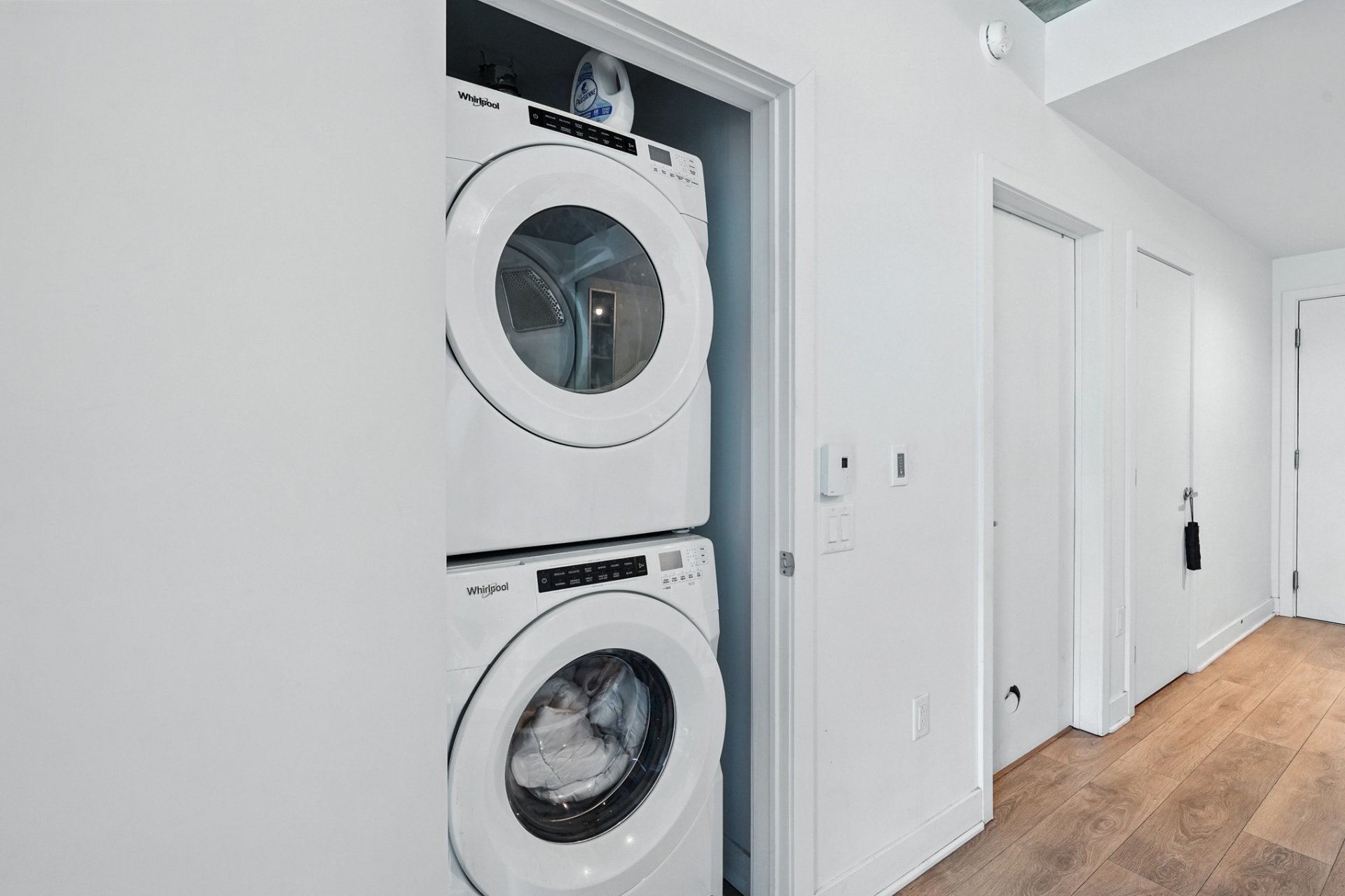 DEAL!!! Garage included!!! Discover this wonderful 1 bedroom luxury condo located in the most sought after project in Mercier near the park and the water. This new property offers refinement and elegance. The common areas which include a terrace are worthy of a five star hotel and invite you to relax. Stunning Nord West exposure for the perfect sunset all year long. Tenant will move out June 30th 2026