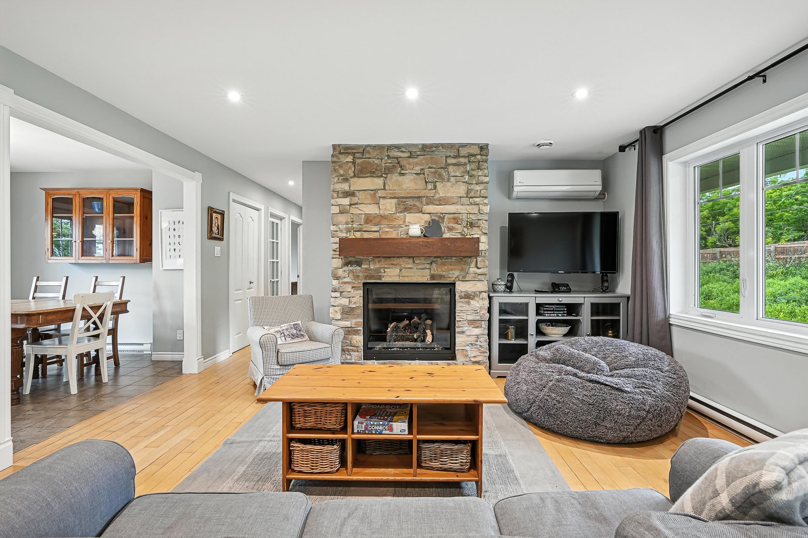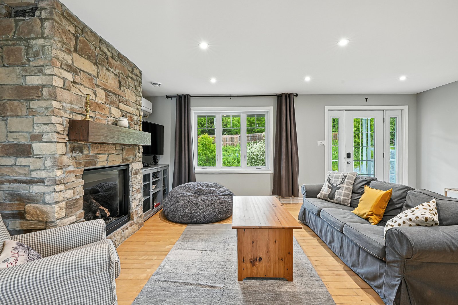 Just steps from the village of North Hatley and Lake Massawippi, this 2008-built bungalow sits on a quiet 2.24-acre lot. Perfectly located above the bike path and near the river, it offers easy walking access to the heart of the village. Featuring three bedrooms on the main floor, two bathrooms, a fully finished basement, and a double garage added in 2017, this home is ready to welcome your family.