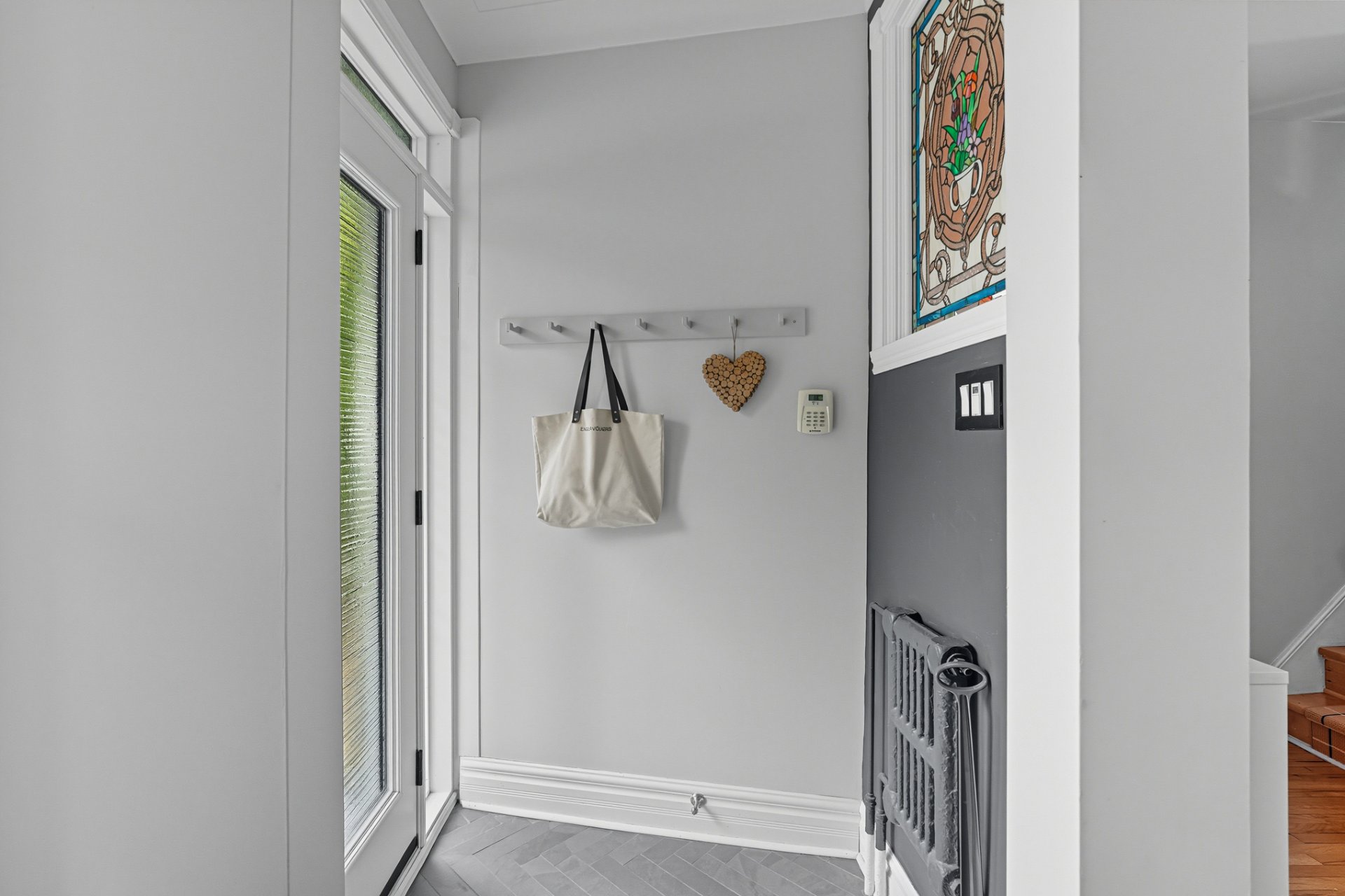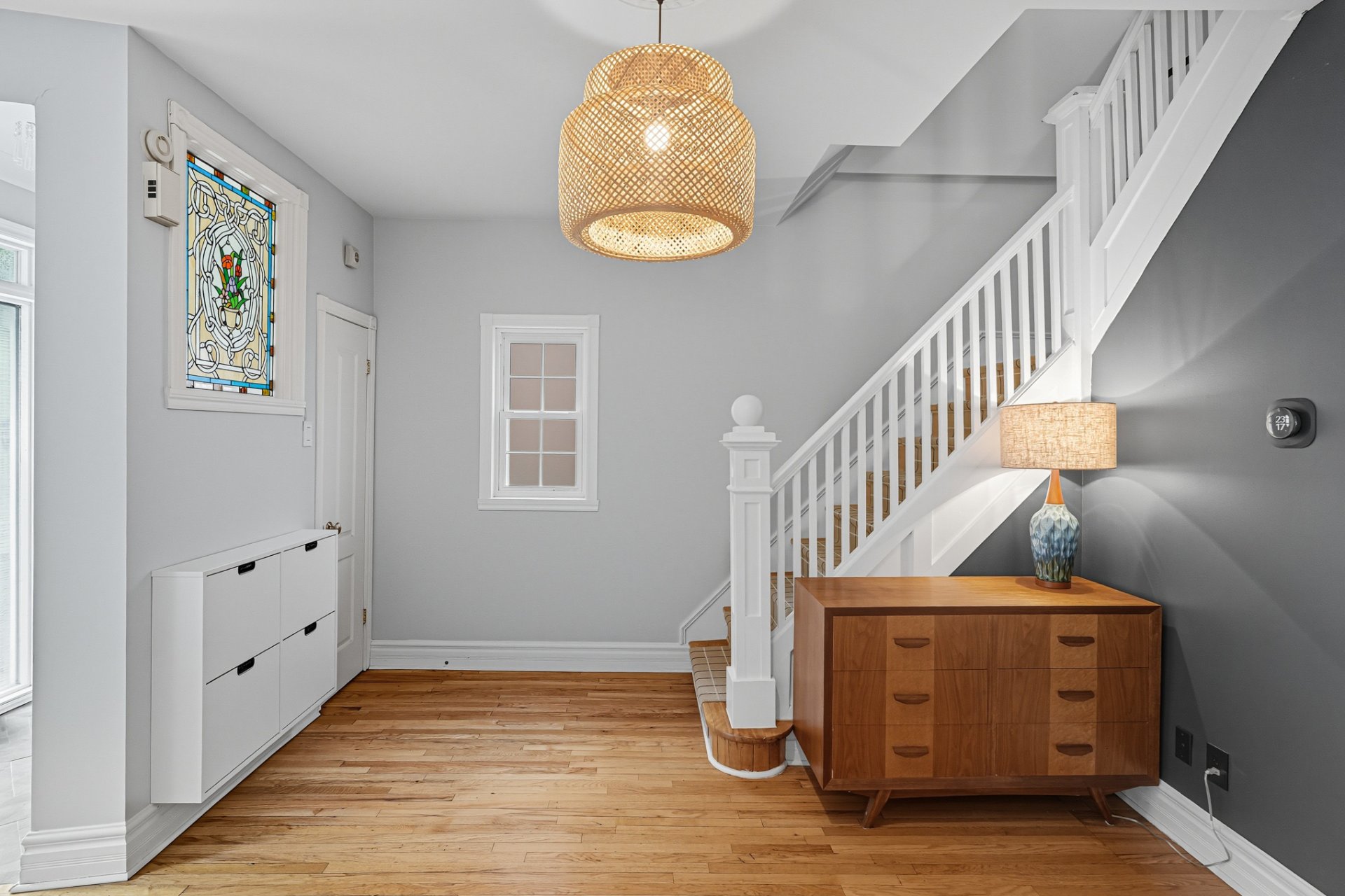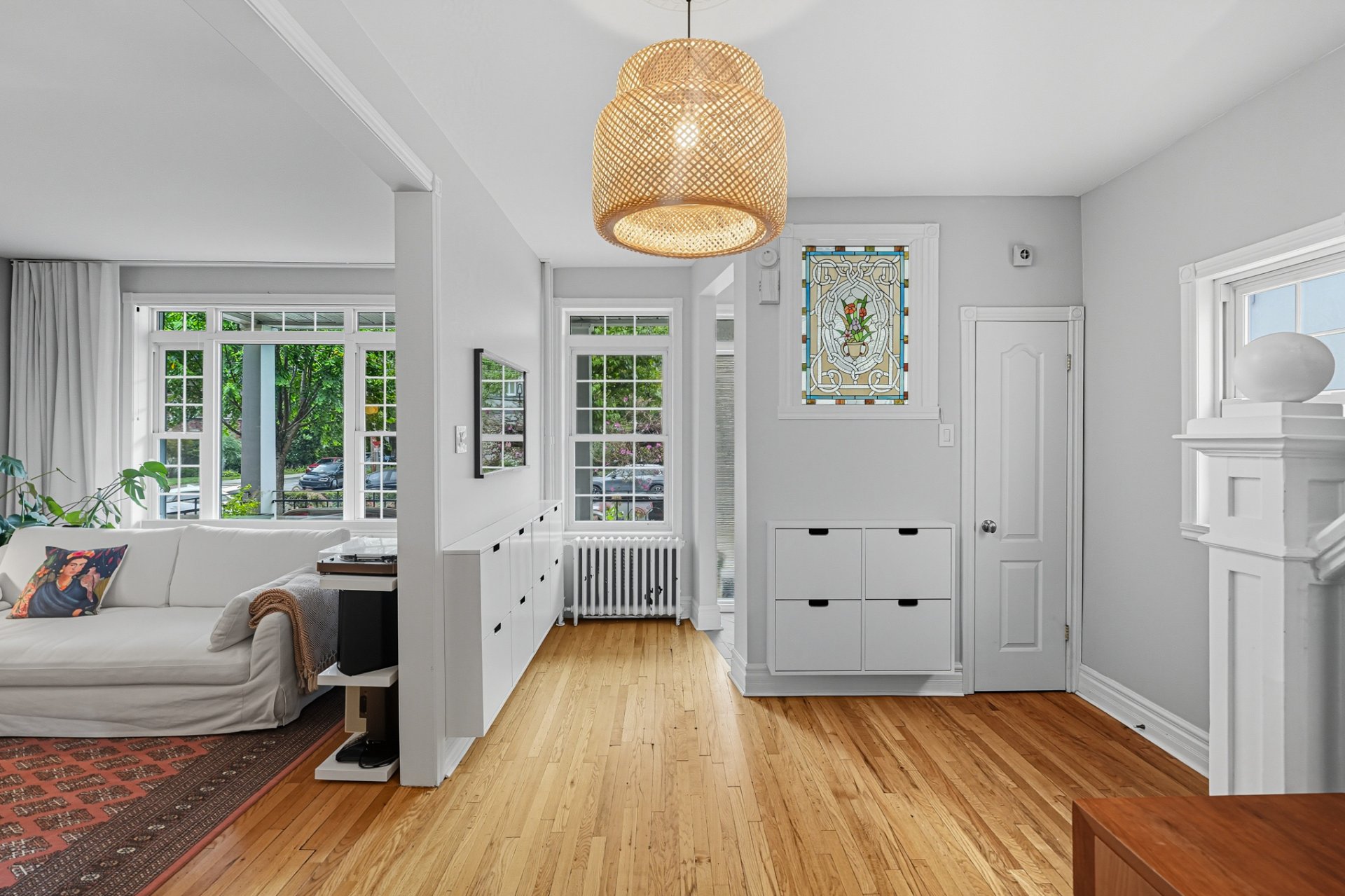 + Enclosed vestibule and spacious central hall with storage