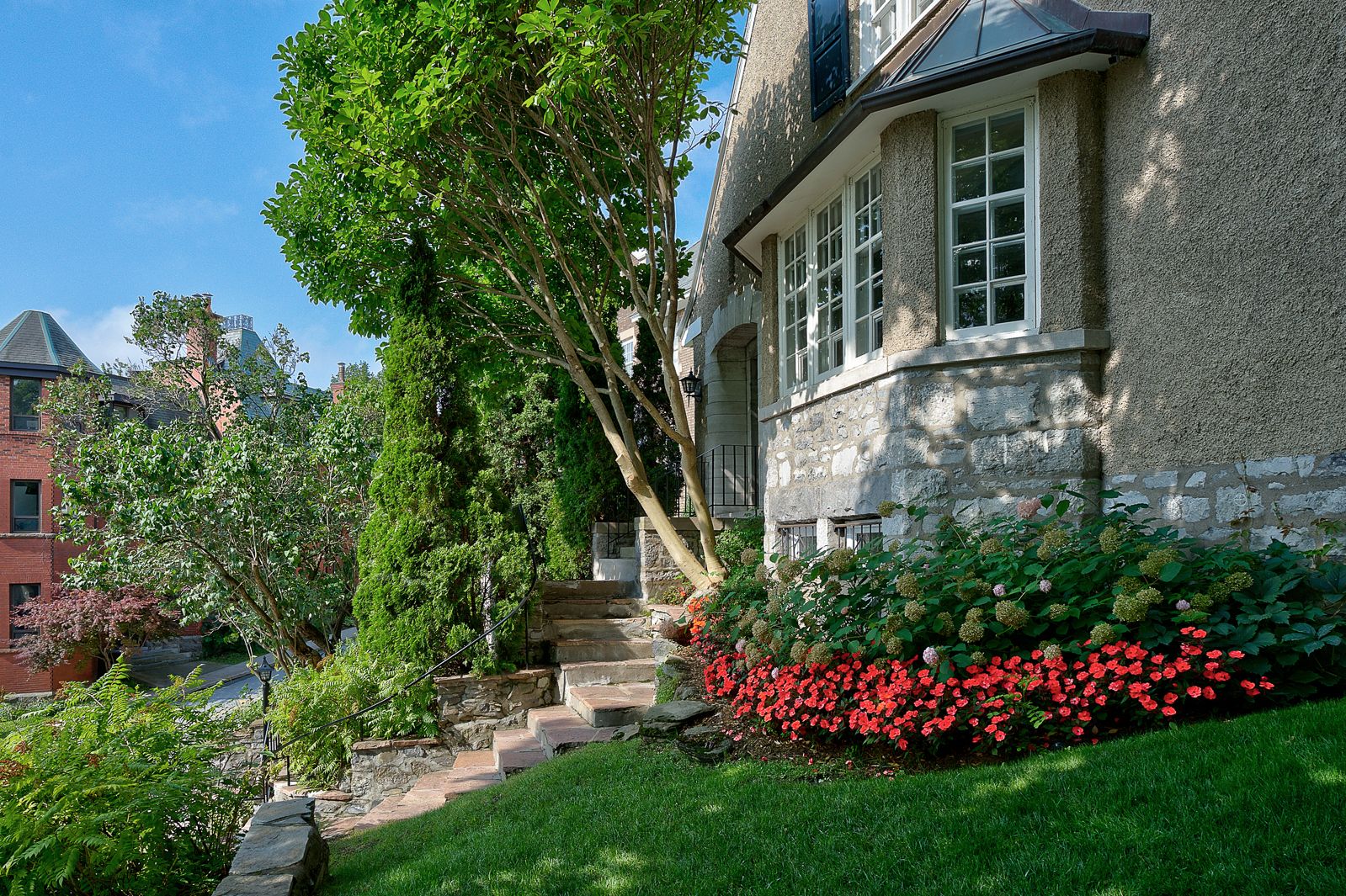 Rare on Rosemount Crescent, this elegant 1925 family home is immediately defined by its integrated 3-car garage--an exceptionally rare luxury in Westmount--followed by its English charm, remarkable presence and generous volumes across three storeys, plus a recently renovated basement. Constructed by the father of Edwin Holgate, member of the Group of Seven, it carries a distinctive historical dimension. A superb flat garden of over 7,124 sq. ft., a terrace opening onto lush greenery, and an ideal location near Greene Avenue and the finest schools complete the offering.