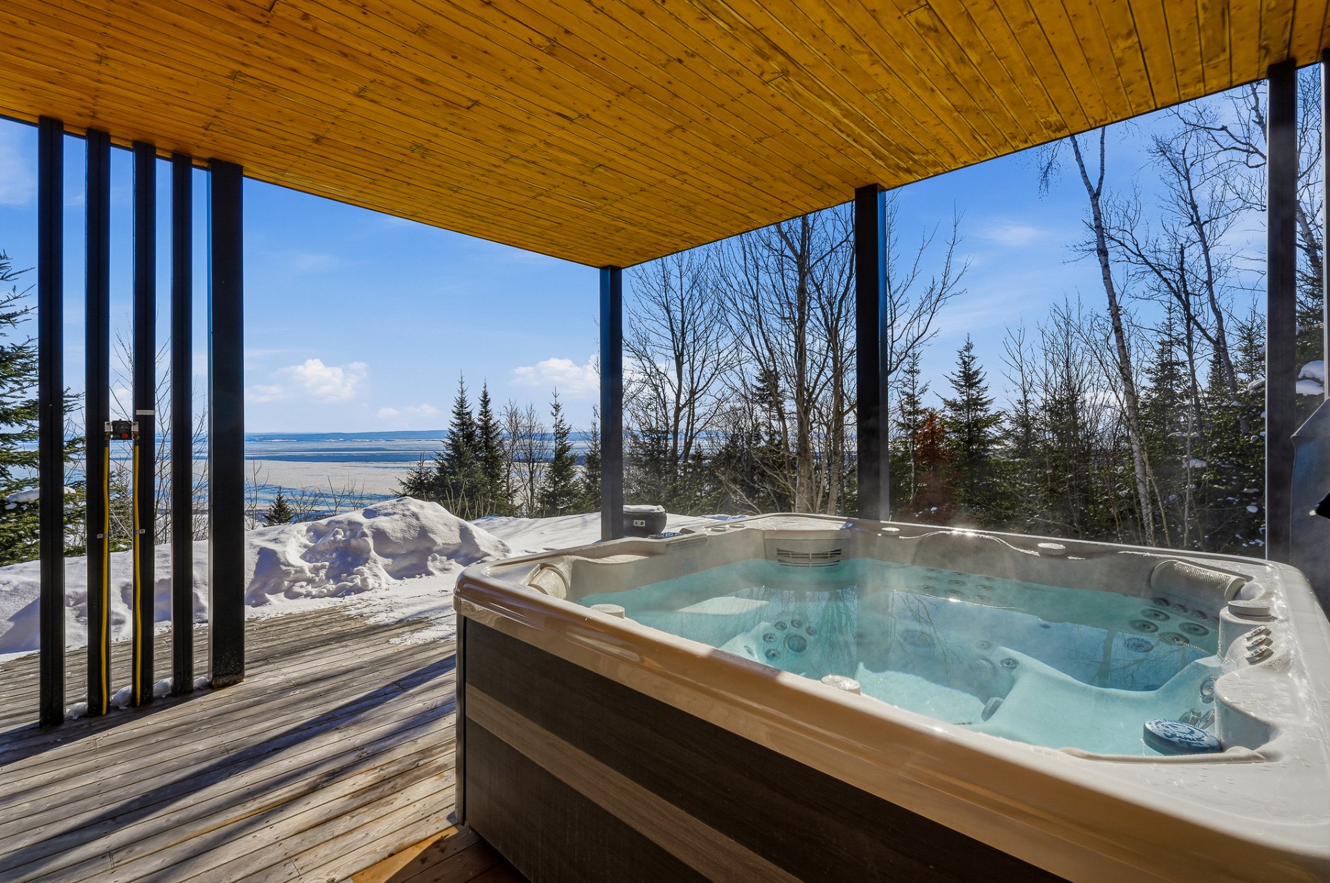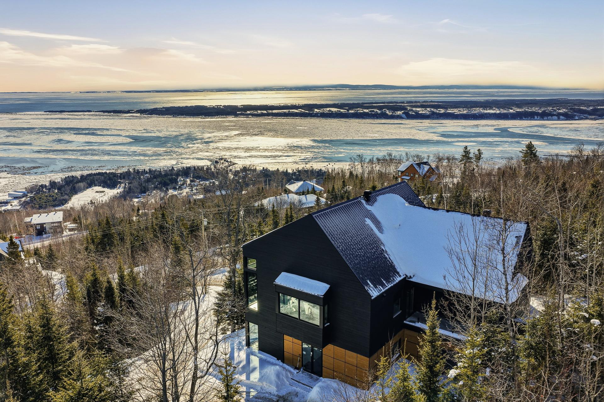 This exceptional architectural residence embodies the art of living in Charlevoix at its most breathtaking. Overlooking the St. Lawrence River and Île-aux-Coudres, it offers a spectacular panoramic view. Designed as a place of retreat and prestige, the property holds a tourist accommodation permit, allowing for personal and/or professional use while strategically offsetting ownership costs through a high-end clientele seeking unique experiences. A rare opportunity for those who wish to own an architectural masterpiece, invest with vision, and indulge in the luxury of time, views, and emotion.