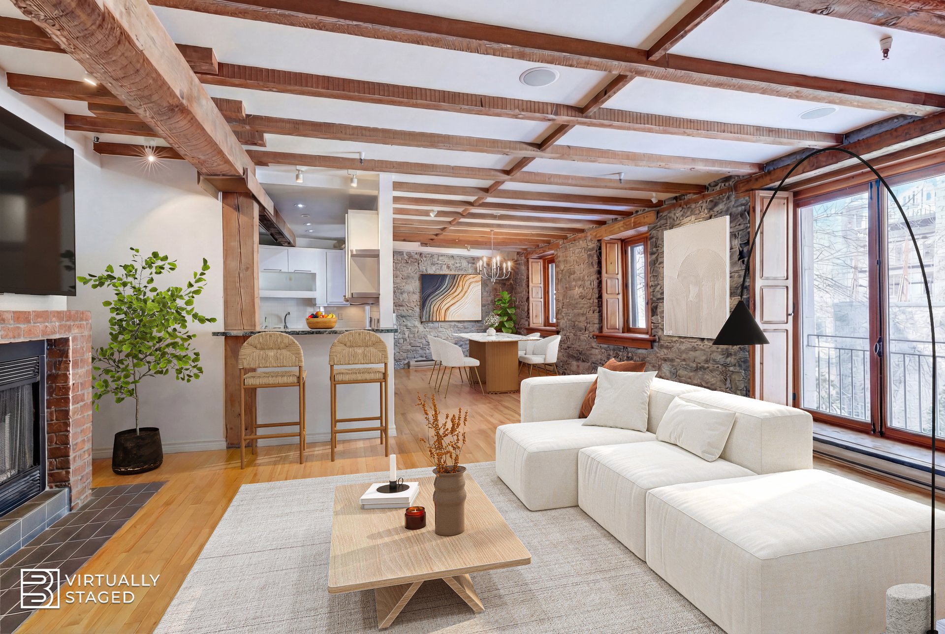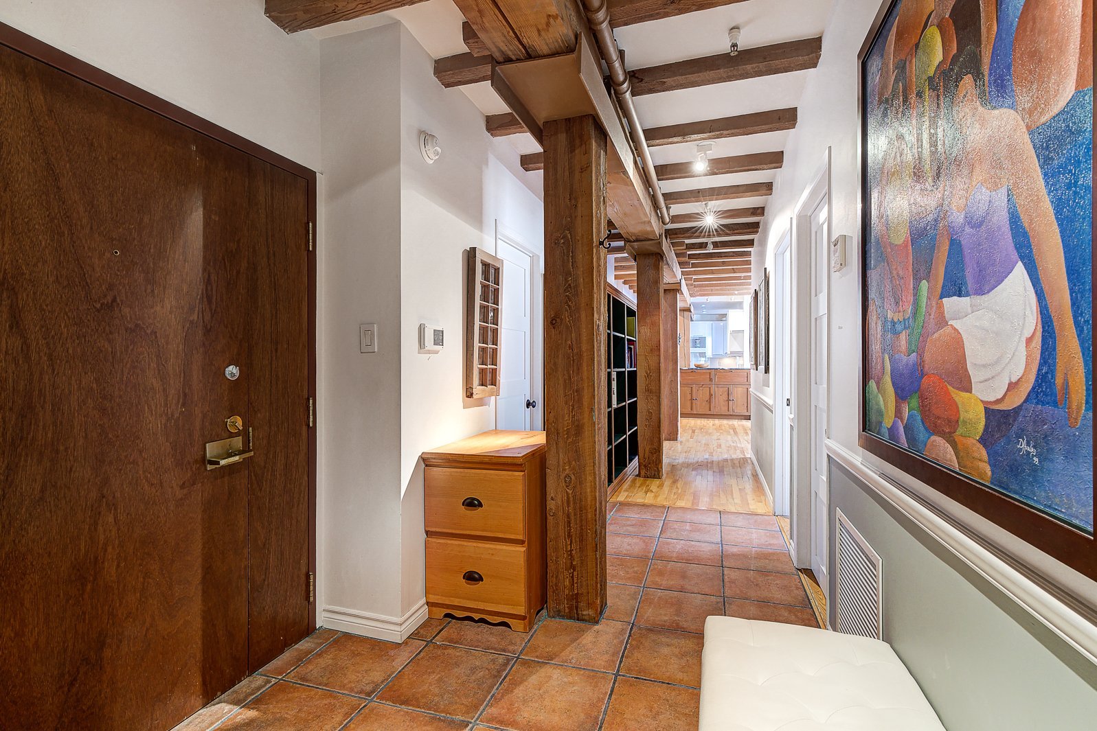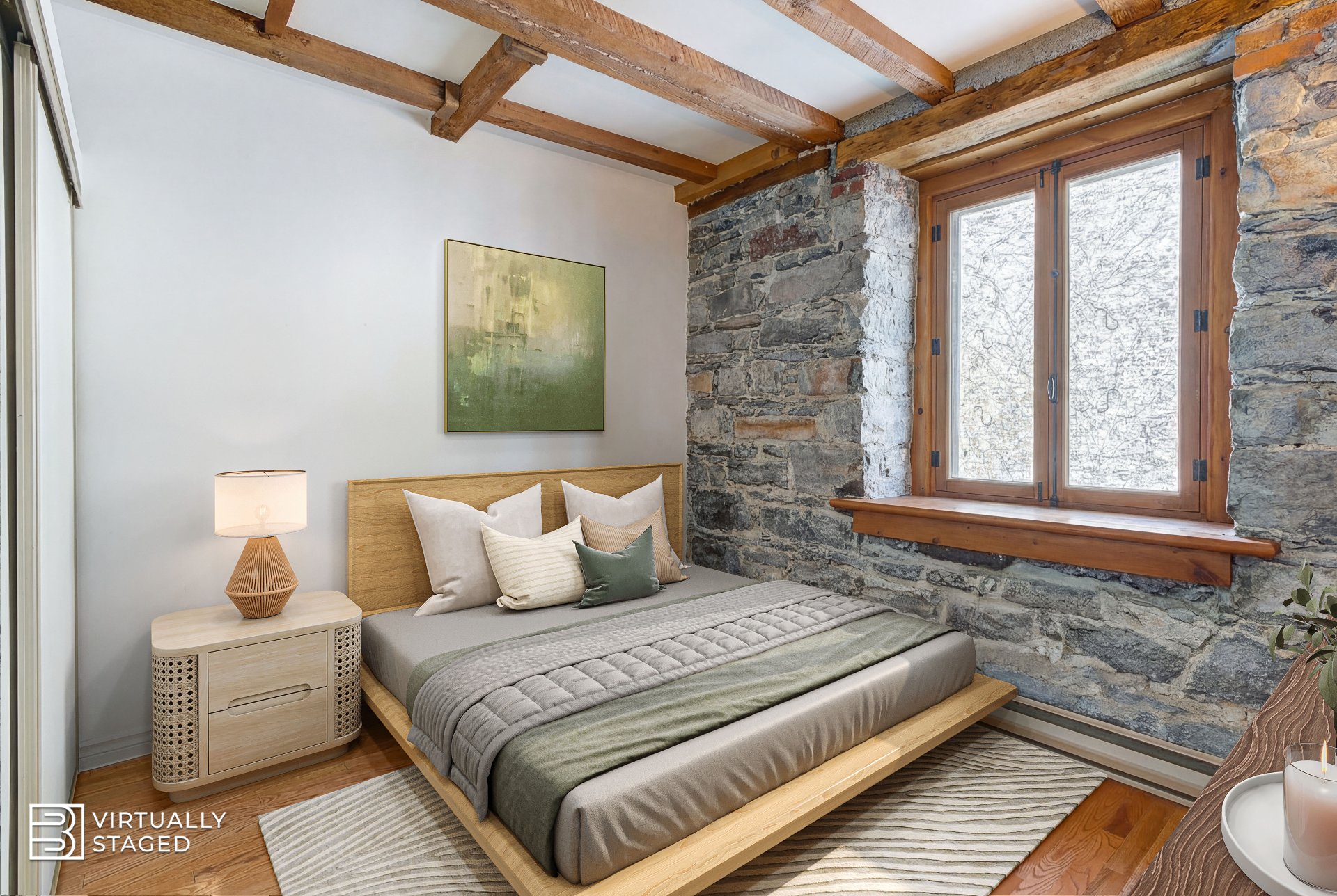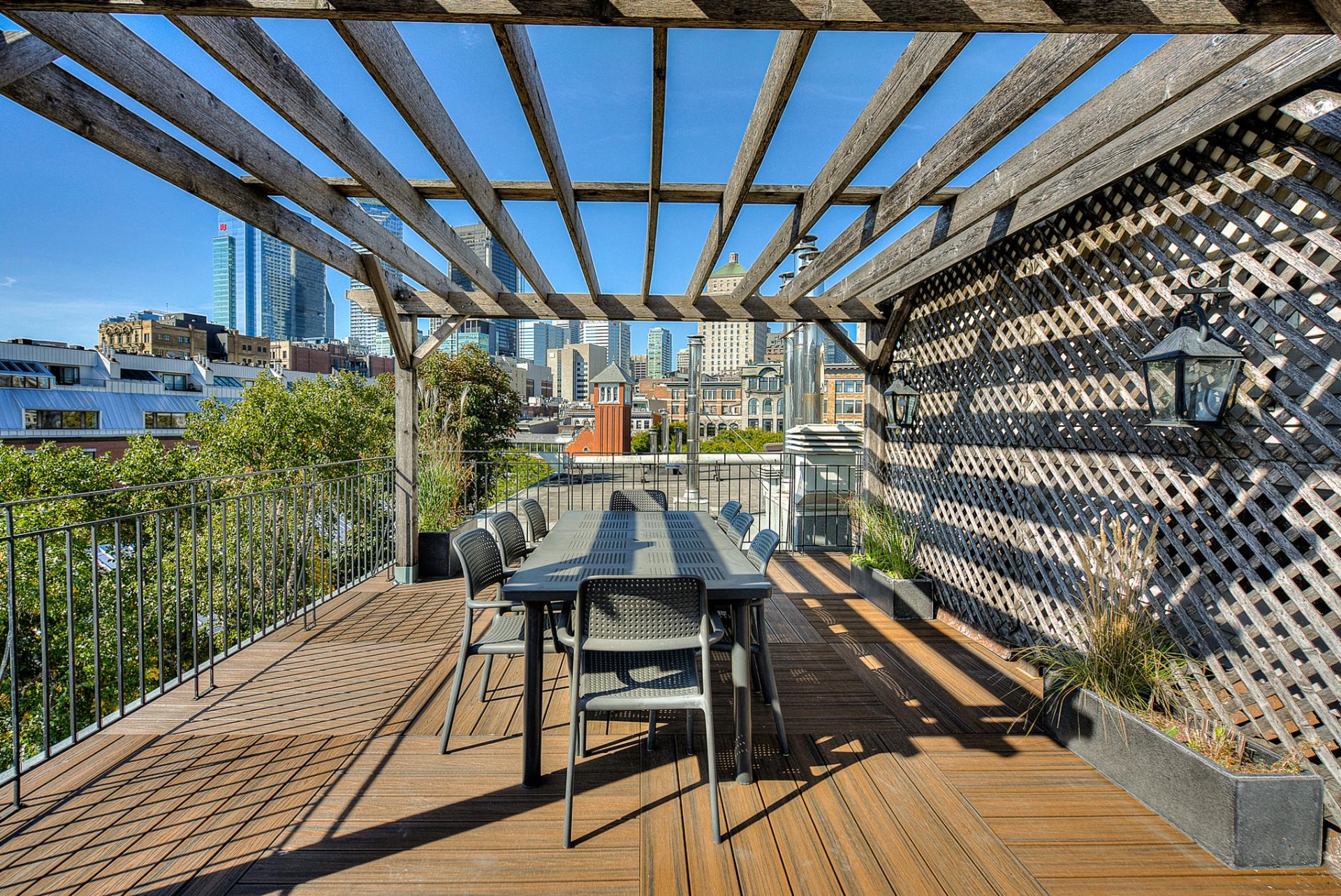 'The Youville' Gardens' Prestigious address, prime location facing the St-Lawrence River and The Old Port of Montreal. Wonderful 3 bedroom condominium bodes original cachet, beamed ceiling, stone walls, French windows and hardwood floors throughout. Open concept LVR/DNR, equipped kitchen, in-unit laundry within bathroom, ensuite bathroom and walk-in closet, 2 additional and spacious bedrooms. Common rooftop terrace, steps to bike path, museum, CentrePhi, restos, cafés, boutiques, hotels, transport & services...Garage & locker. Must see! A unique opportunity !