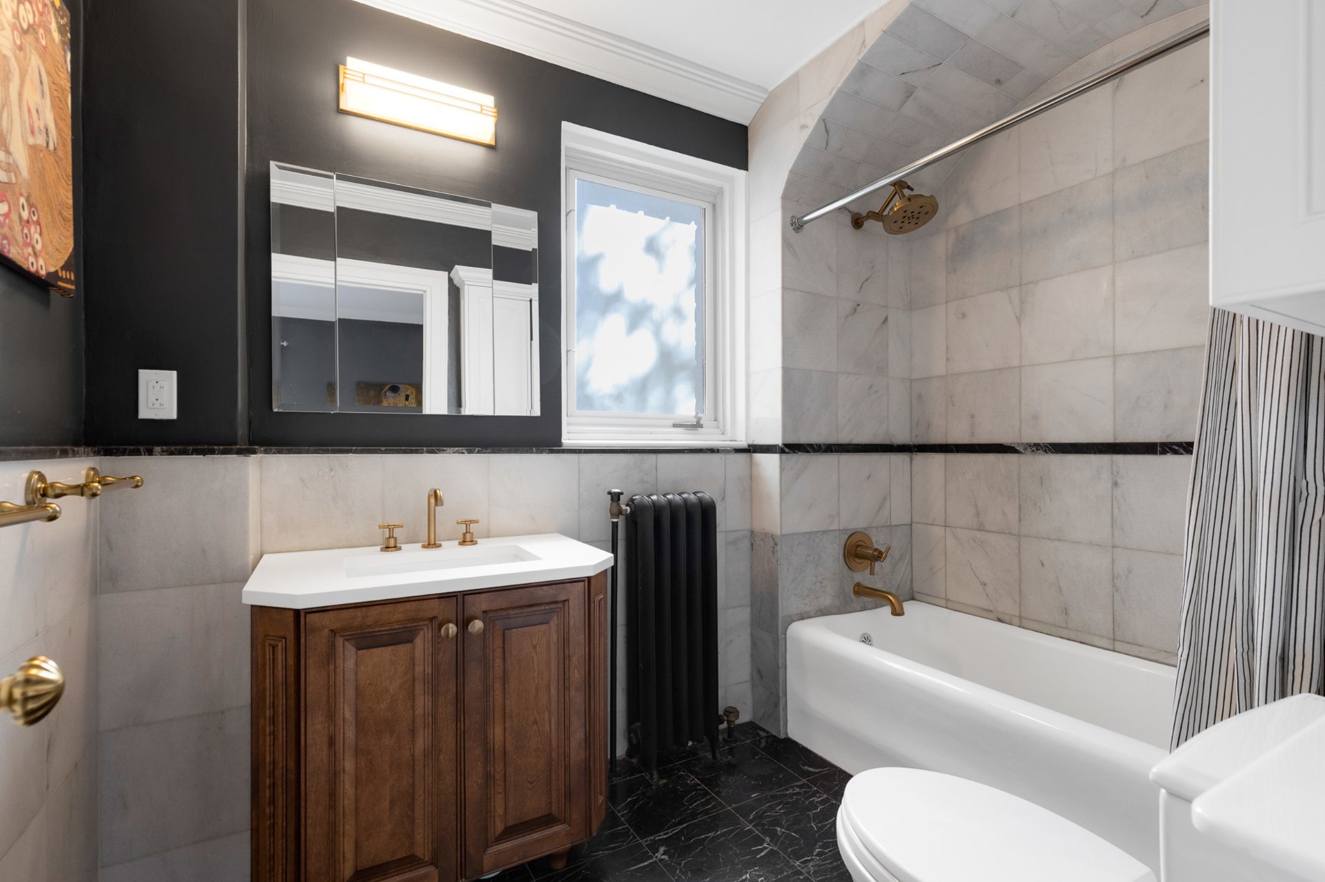 Welcome to The McGregor, a fully renovated 3-bedroom, 2-bathroom condo in an iconic historic building. Combining timeless elegance with modern upgrades, this home features arched windows, white oak floors, and an open kitchen-dining area perfect for entertaining. The gourmet kitchen boasts quartz countertops, custom cabinetry, modern appliances, and stylish lighting. The primary bedroom includes an updated ensuite bathroom and a private office nook, ideal for remote work. Building amenities include a grand lobby with stunning architectural details, a doorman, a well-equipped gym, and serene outdoor space. Close to everything.