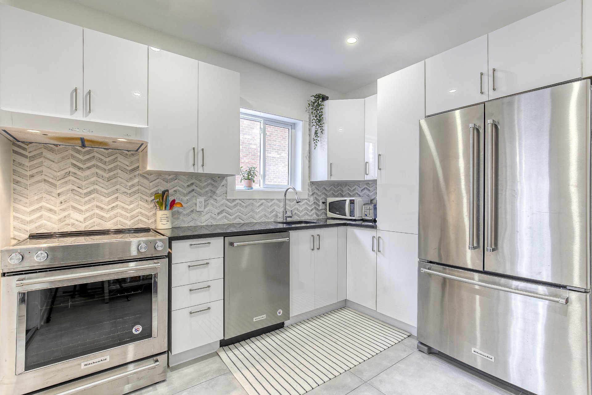 - Fridge, stove, dishwasher, washer, dryer, wall mounted central air.