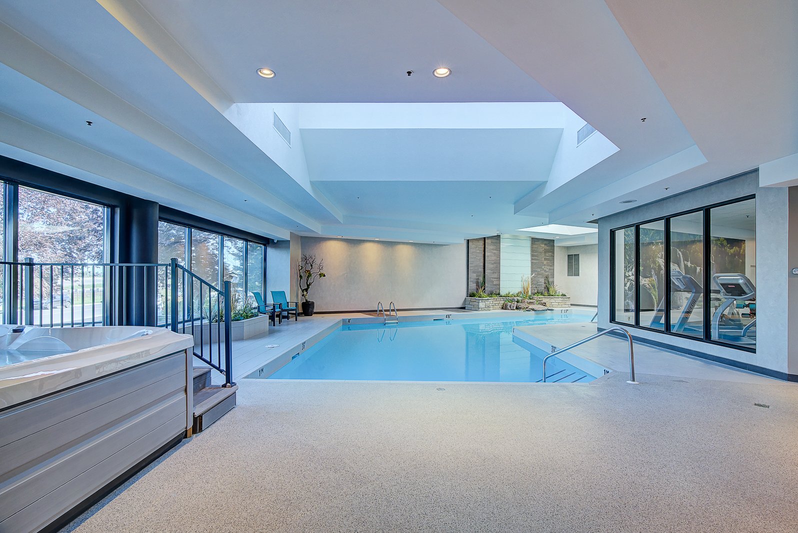- Heated indoor and outdoor salt pool, spa (replaced in 2020), men's and women's locker rooms with showers and saunas, fully equipped exercise room (modernized in 2021)
