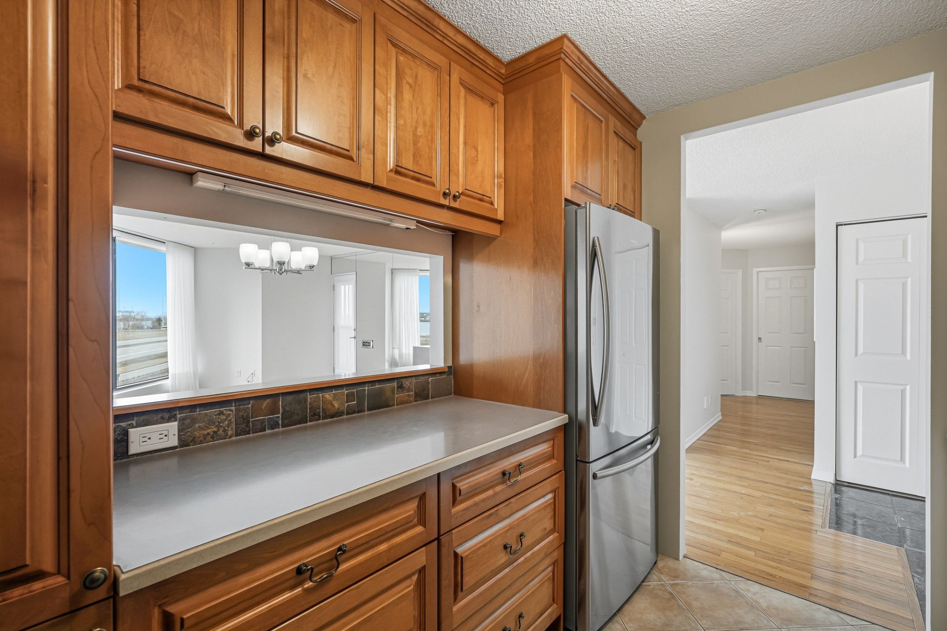 Located on the 5th floor, this turnkey condo offers spectacular views - undoubtedly the most beautiful - of Montreal, St-Laurent River, and the Olympic Stadium. Set in a building renowned for its exceptional location, direct indoor connection to the Longueuil Metro station, and countless high-quality amenities, you'll be charmed by its 1,091 sf of light and comfort. Abundant windows, an open-concept living area, a kitchen with wood cabinets and appliances, 2 spacious bedrooms, an impeccable bathroom, plenty of storage, indoor tandem parking... everything is in place to ensure you enjoy a high quality of life in complete safety.