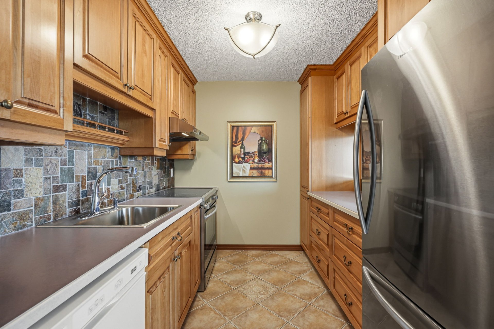 - A tandem parking space in the heated indoor garage (renovated in 2016, door replacement in 2023) and an adjacent indoor storage space