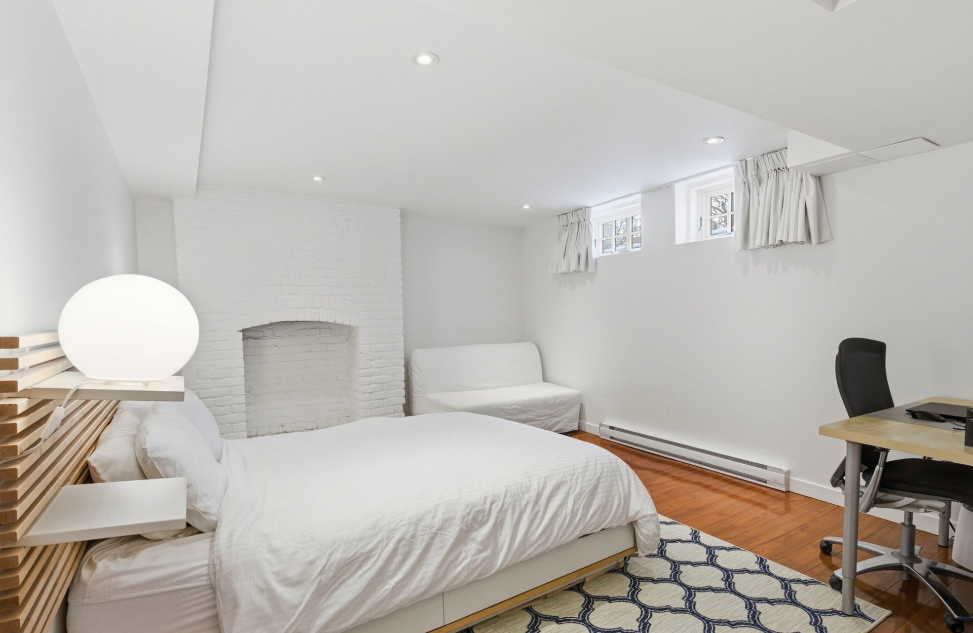 - Large guest bedroom with decorative fireplace