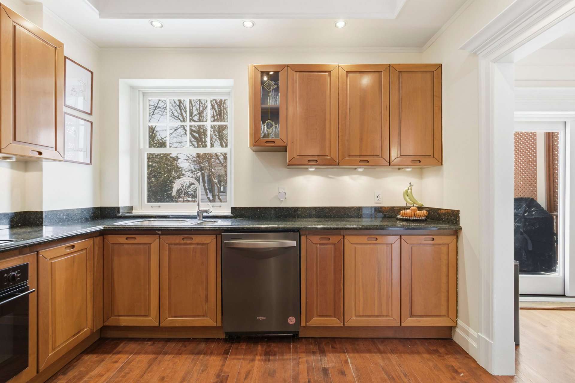 - Kitchen with wood cabinetry and stainless steel appliances