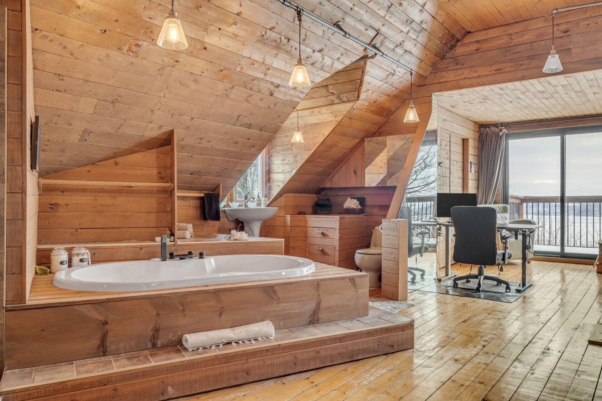 At 292 Côte Sainte-Anne, the cliffside becomes a natural balcony overlooking the St. Lawrence River and Île d'Orléans. This distinguished residence offers more than 4,450 sq. ft. and 27 luminous rooms where wood, fireplaces and generous volumes create a true lodge-like atmosphere. Set on an intimate 51,593 sq. ft. lot, it features mature gardens, an in-ground pool, a spa and a rare heritage stone oven. Currently configured as an intergenerational home and formerly operated as a B&B, it offers notable versatility for hosting purposes, subject to municipal approvals.
