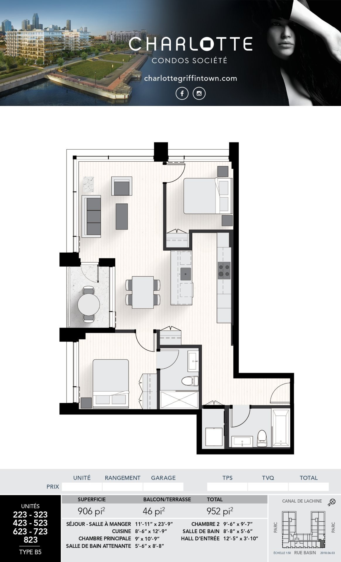 Charlotte Condos Société | The only project on the Lachine Canal surrounded by parks, greenery and water. Contemporary architecture curated and inspired by translucent elements.