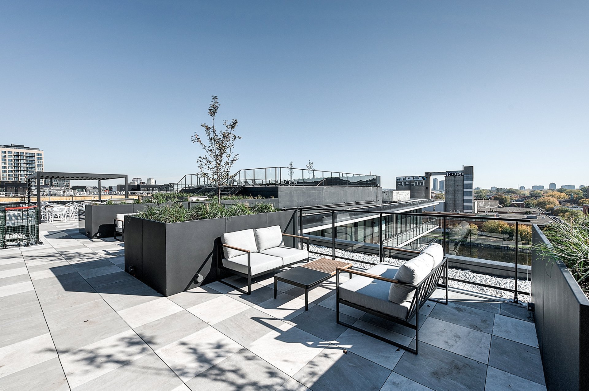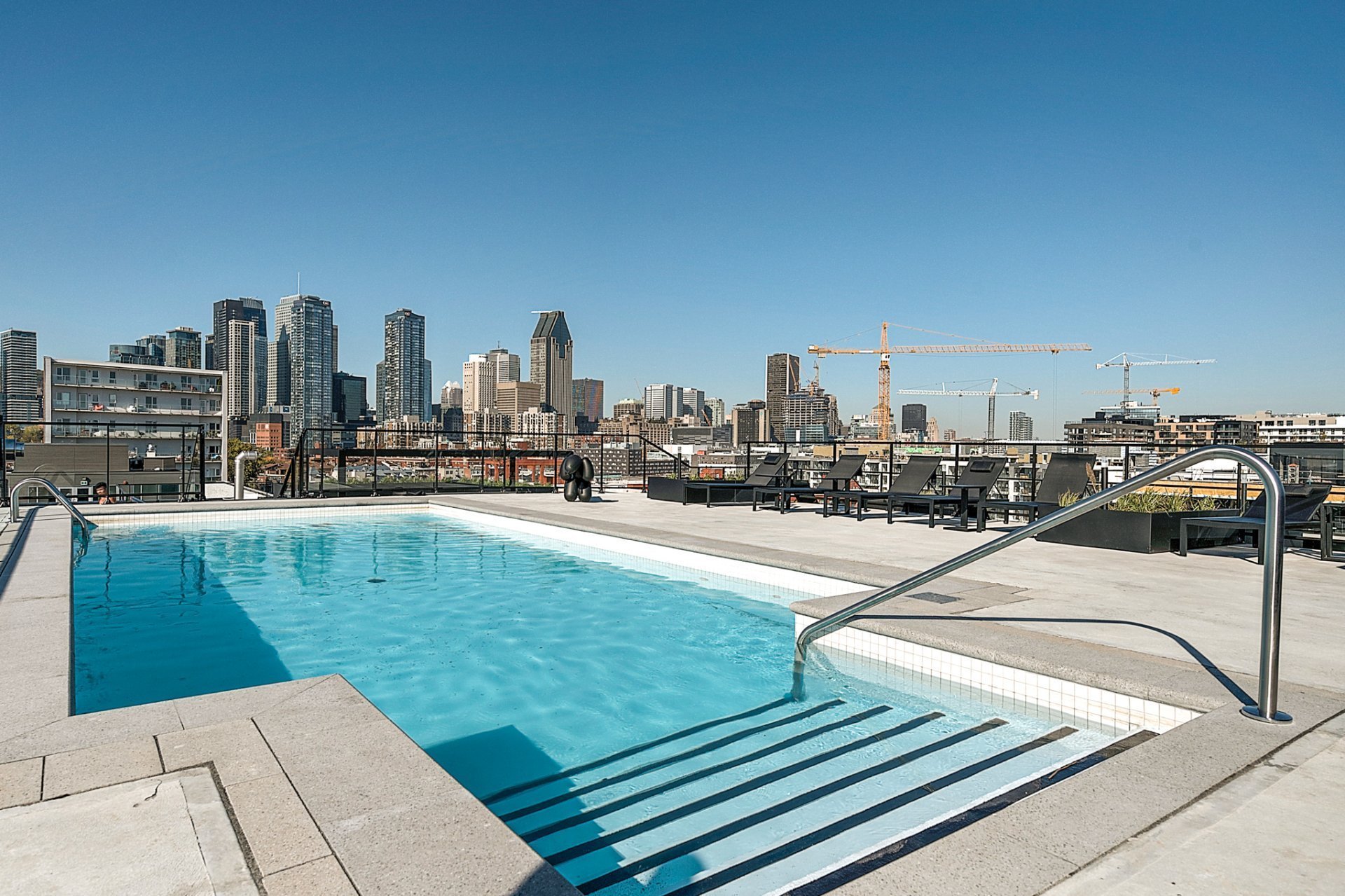 Rooftop terrace with a swimming pool and panoramic view on the mountain, downtown and the Lachine Canal.